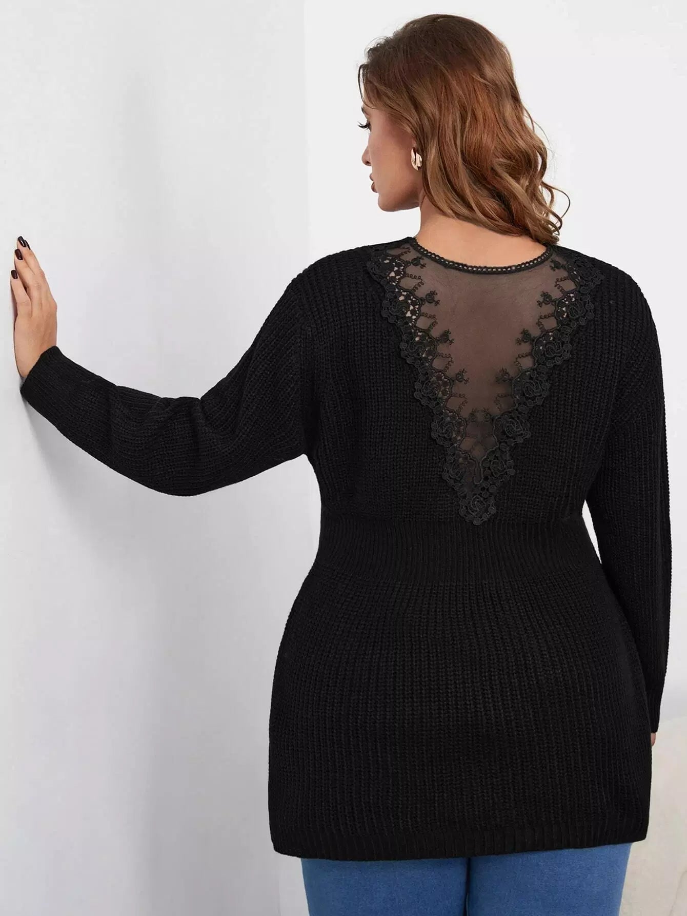 بلس بلس سترة من الدانتيل المخرم بدون حزام