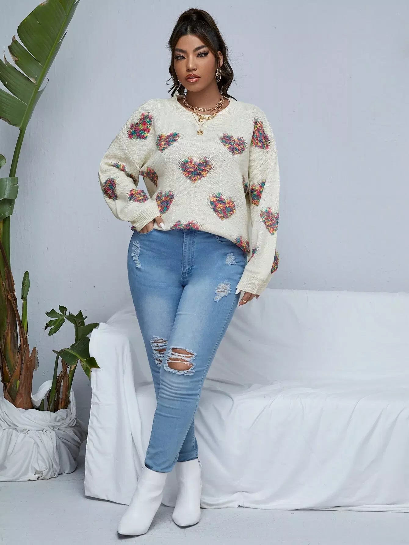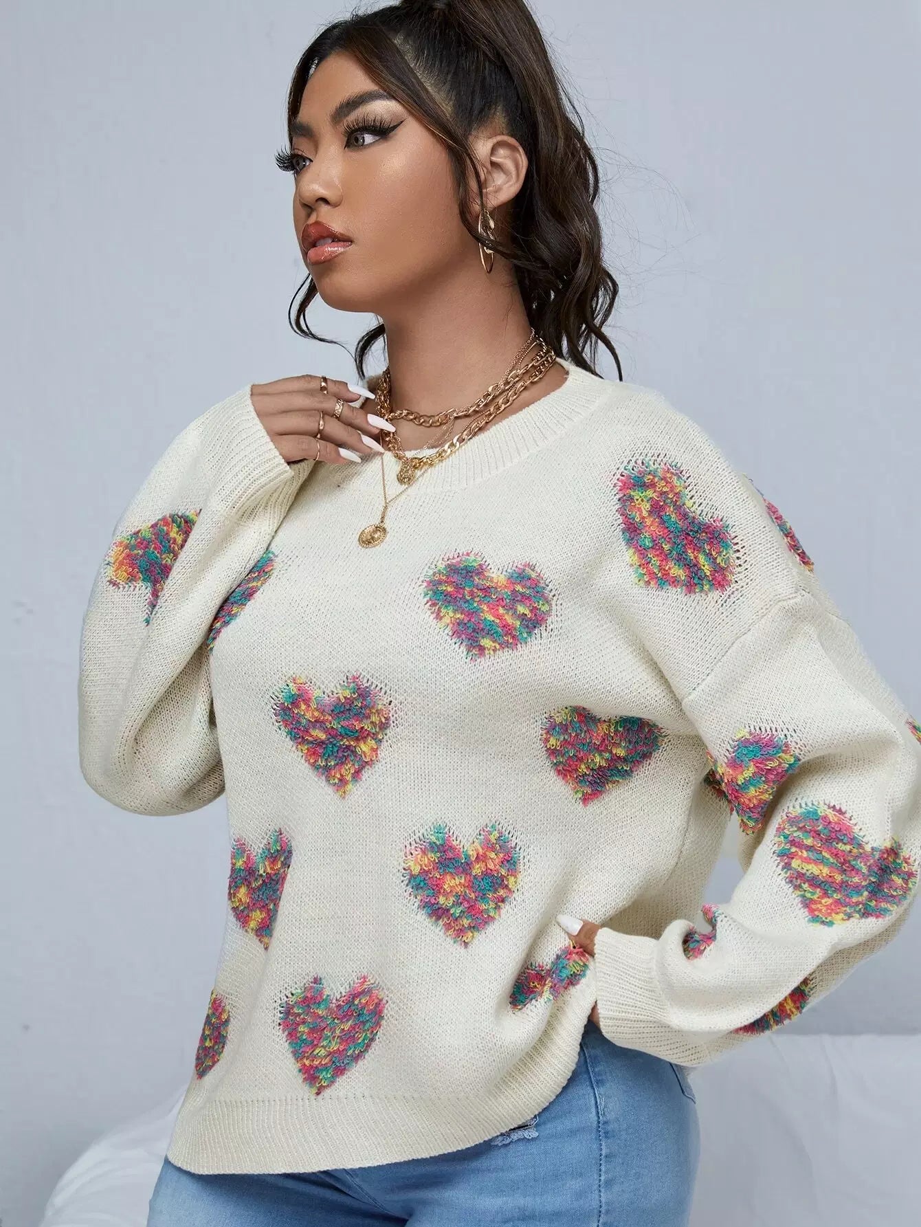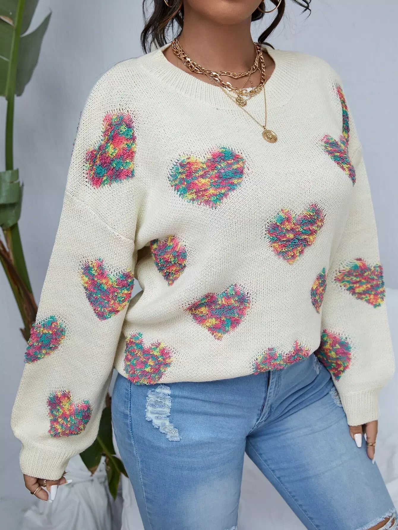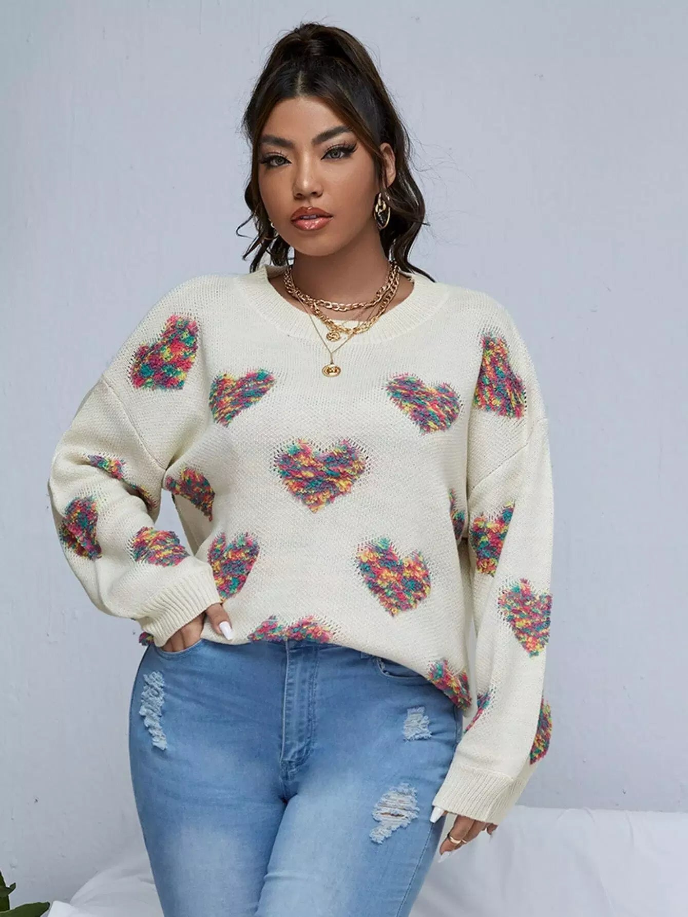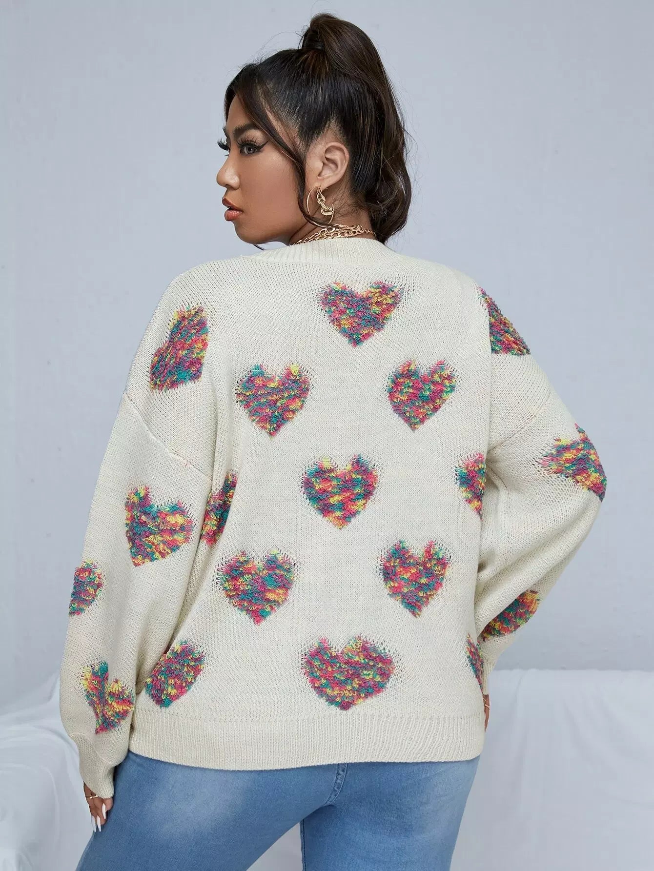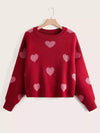 سترة منسدلة الكتفين بنقشة قلب زائد