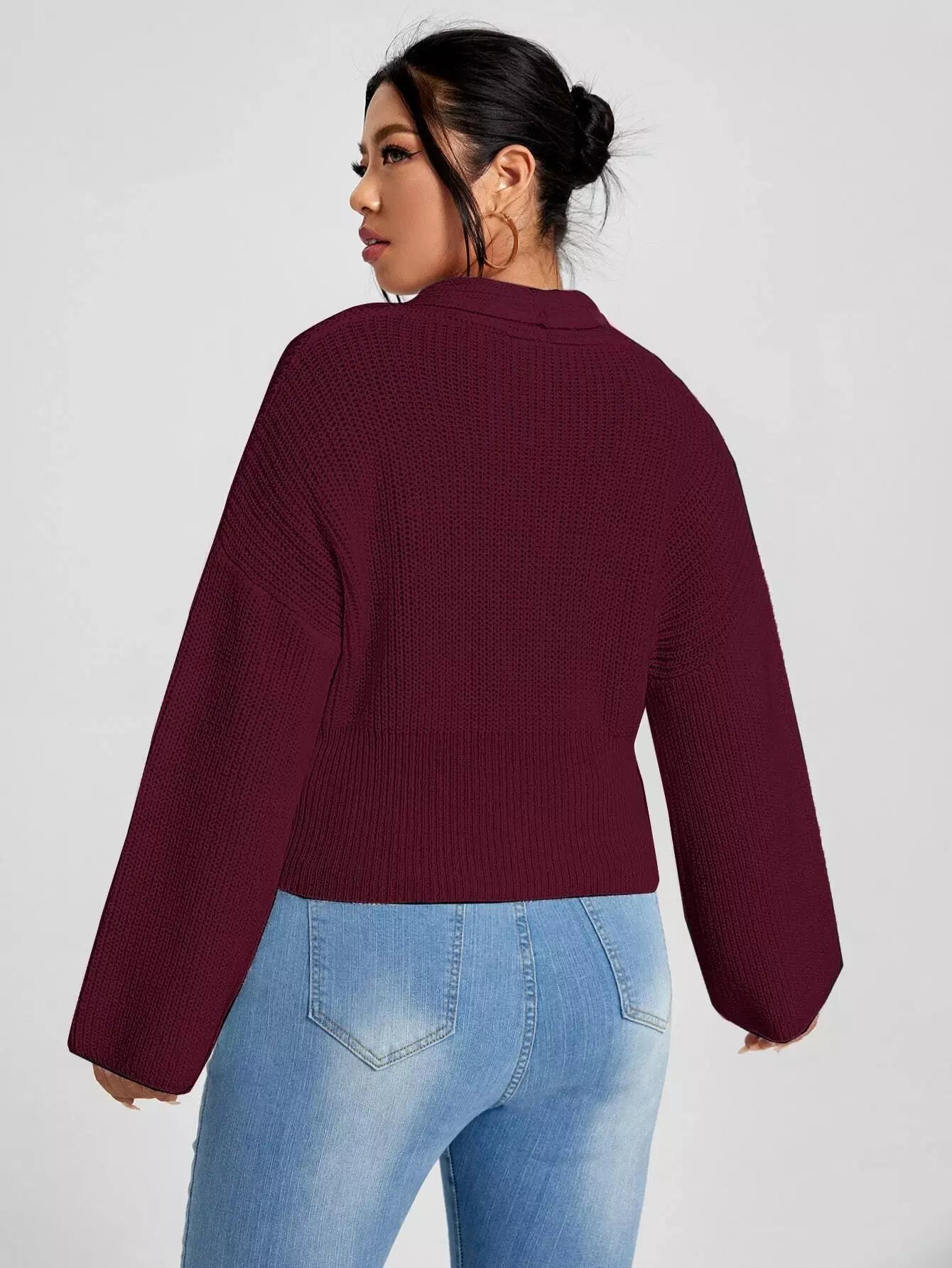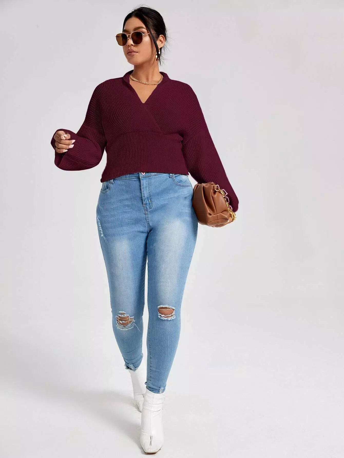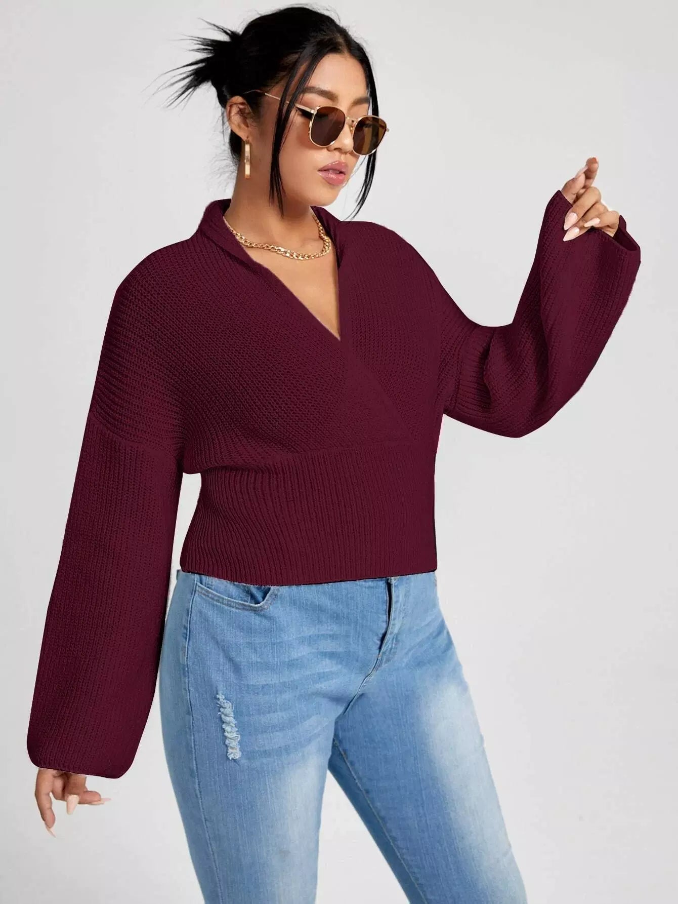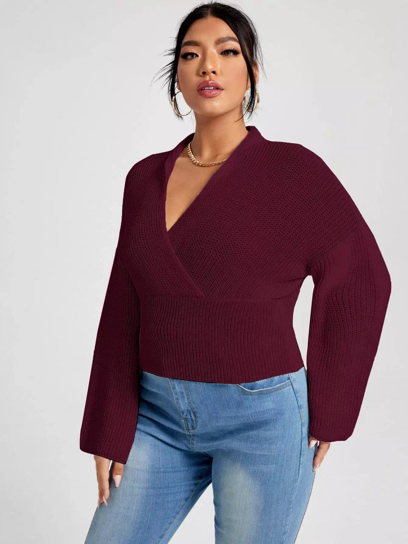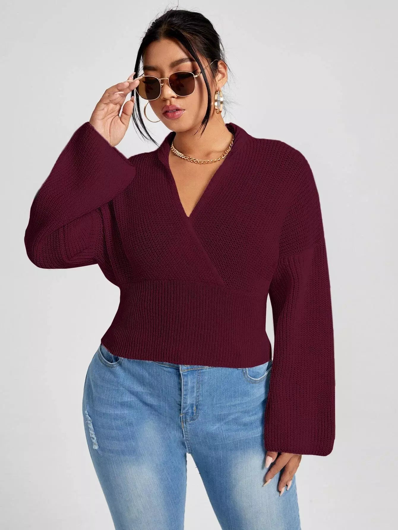 بلس كنزة بياقة متداخلة منسدلة الكتفين
