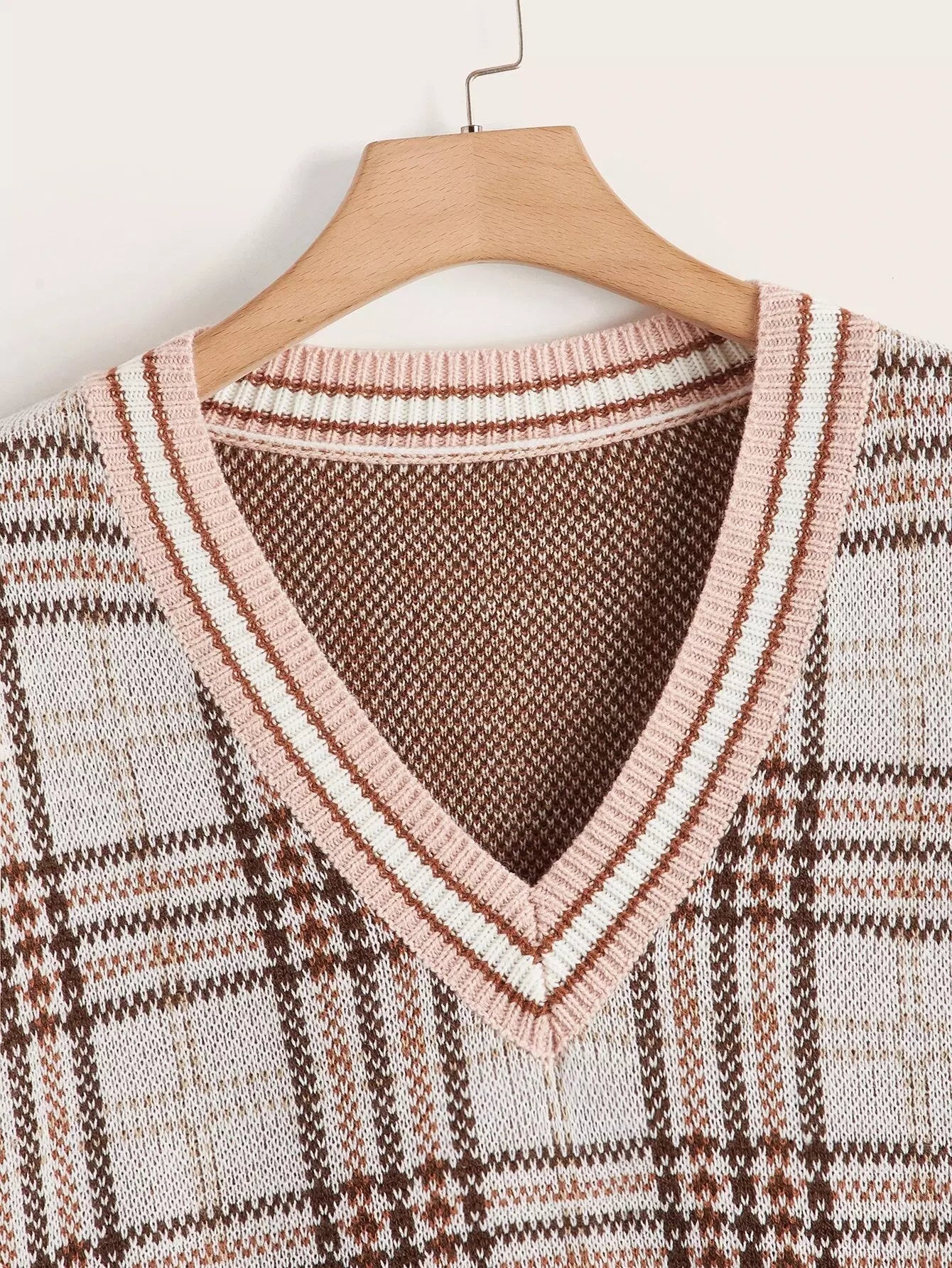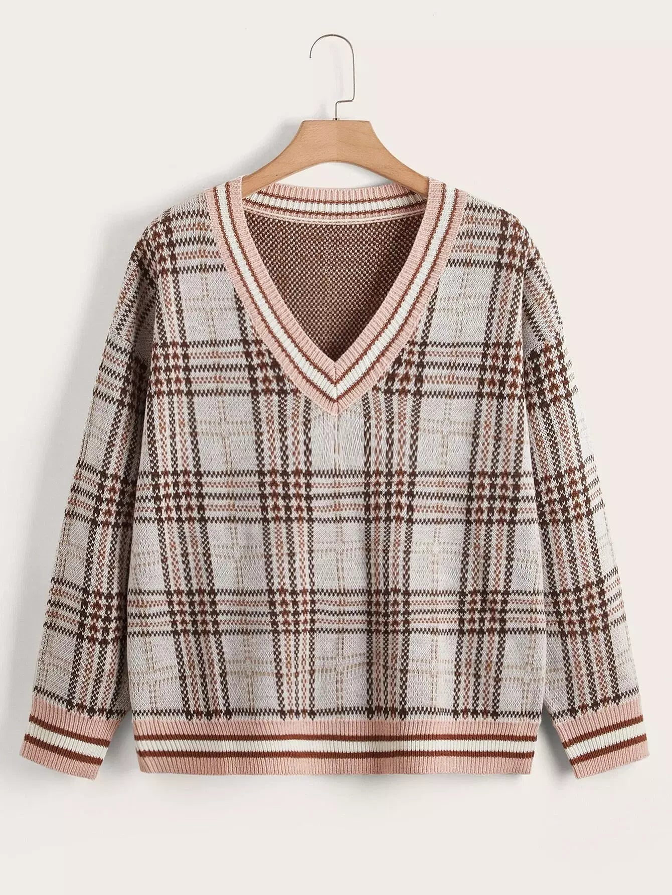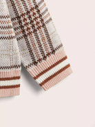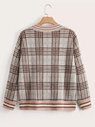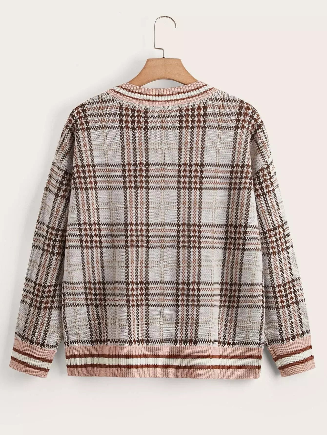 سترة منقوشة بنقشة زائد مخططة بحواف منسدلة على الكتف