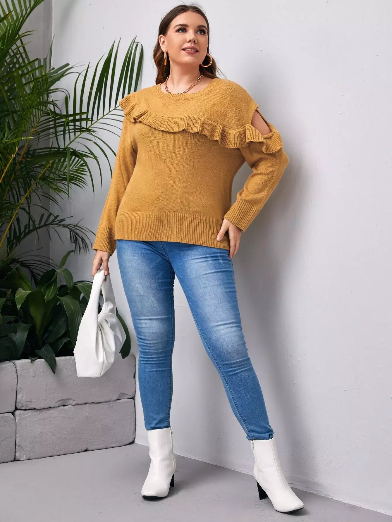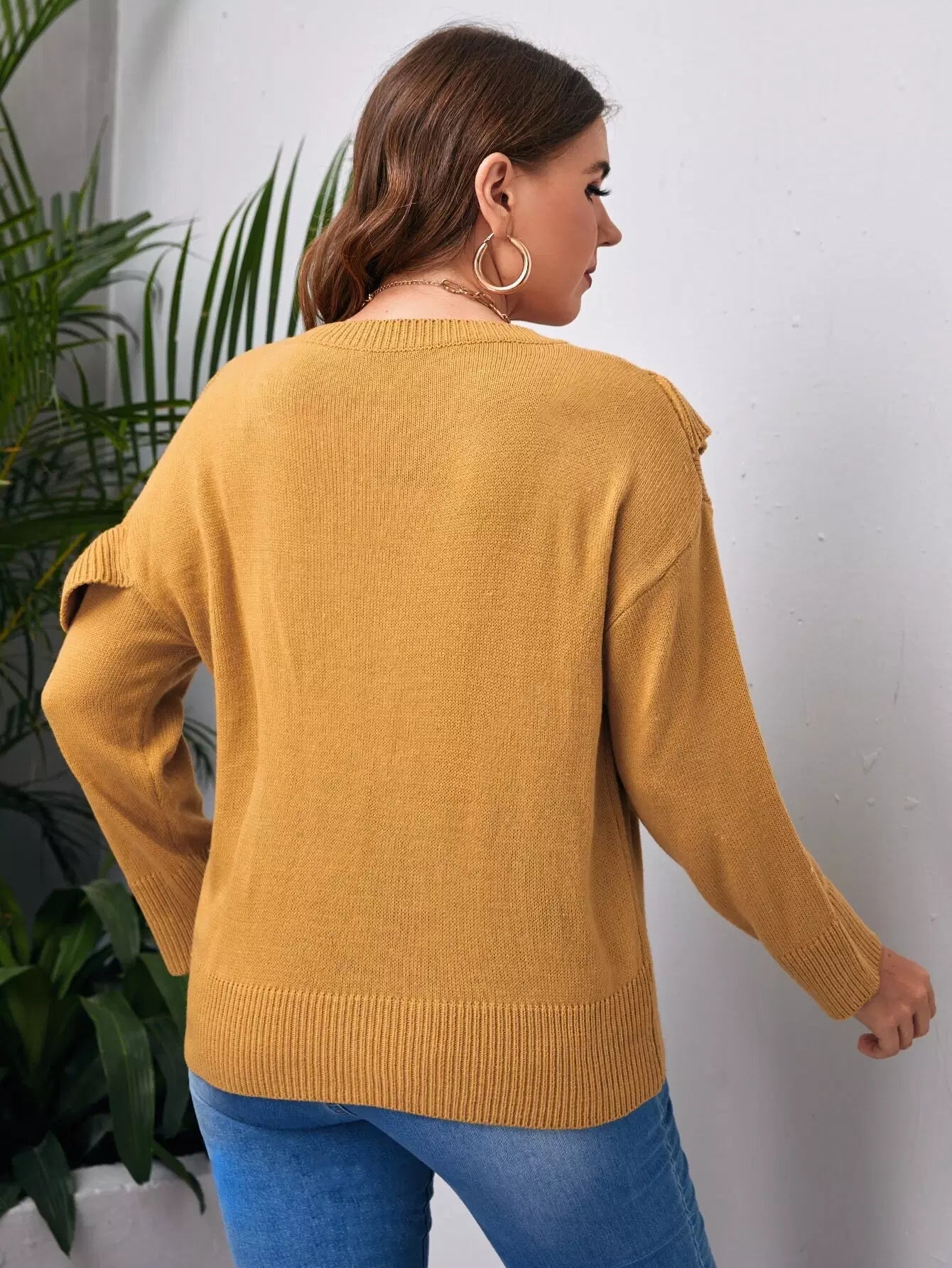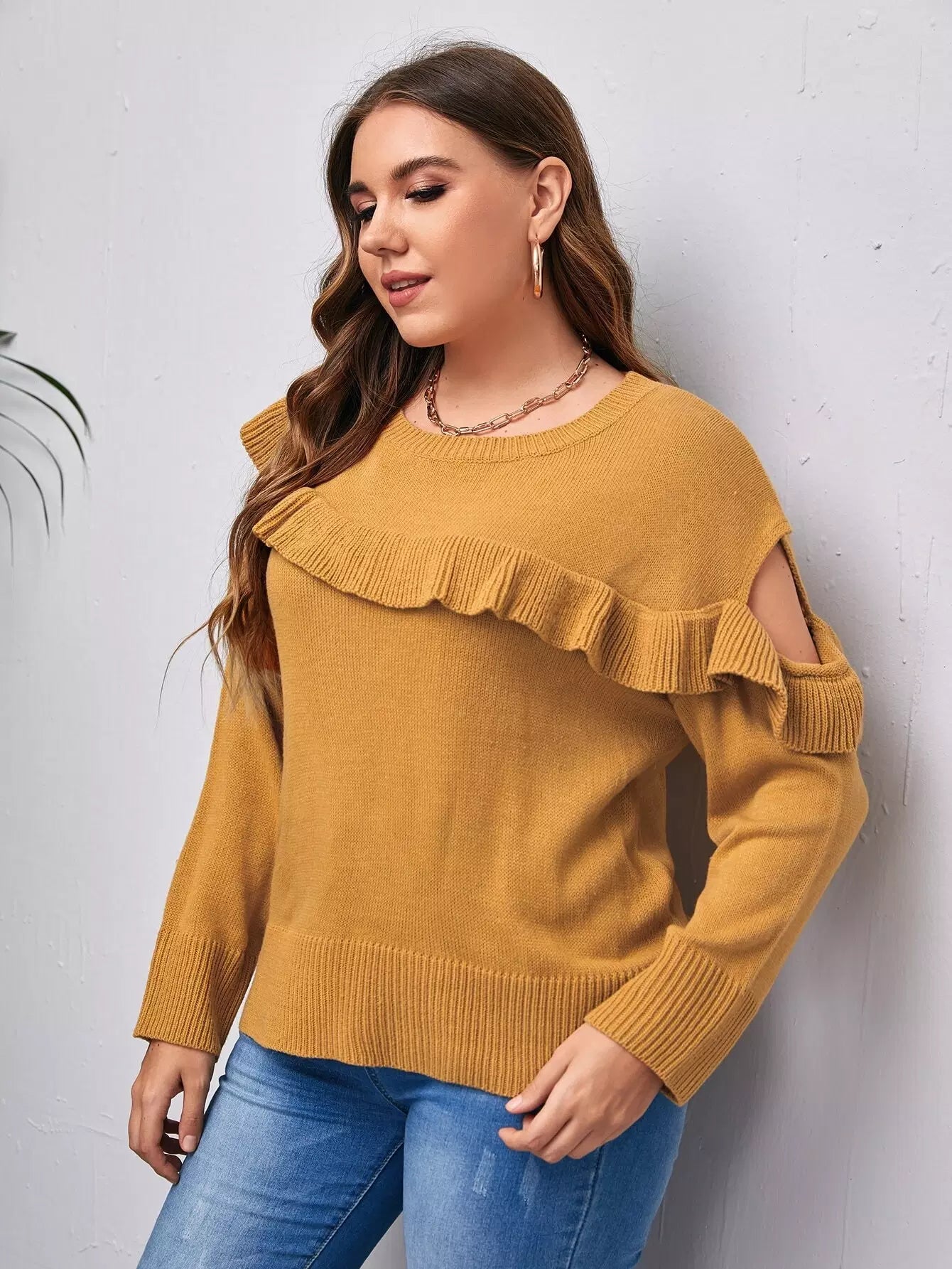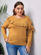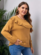 كنزة منسدلة الأكتاف ذات حواف كشكش زائد
