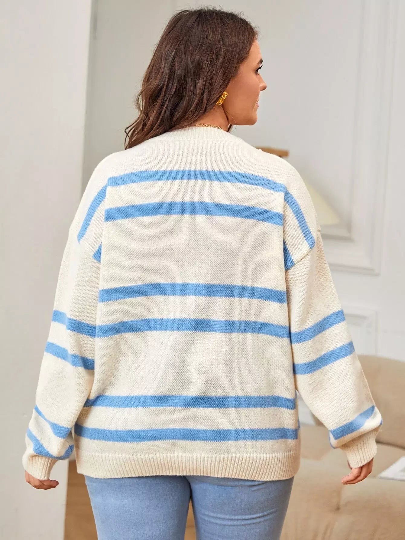 سترة منسدلة الكتفين مخططة بنقشة زائد