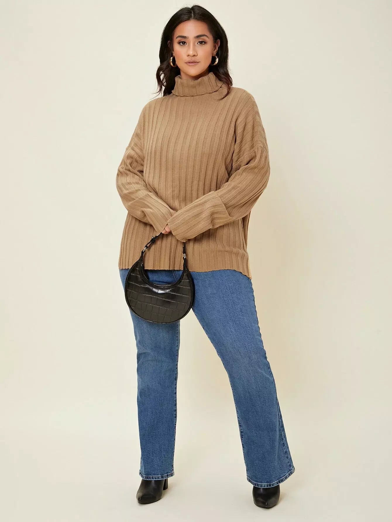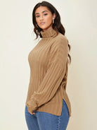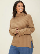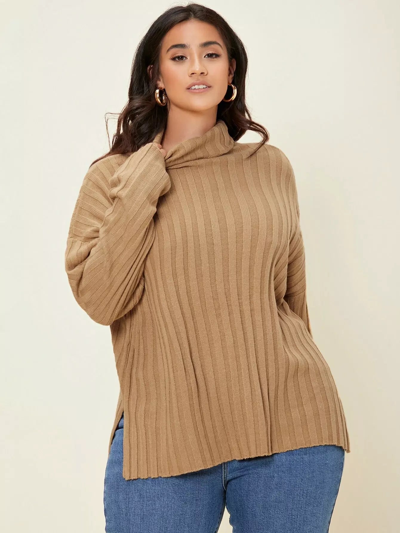 كنزة بياقة زائد بياقة مدورة مضلعة مضلعة ذات حافة مشقوقة