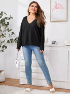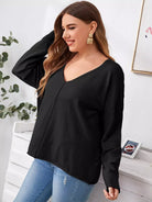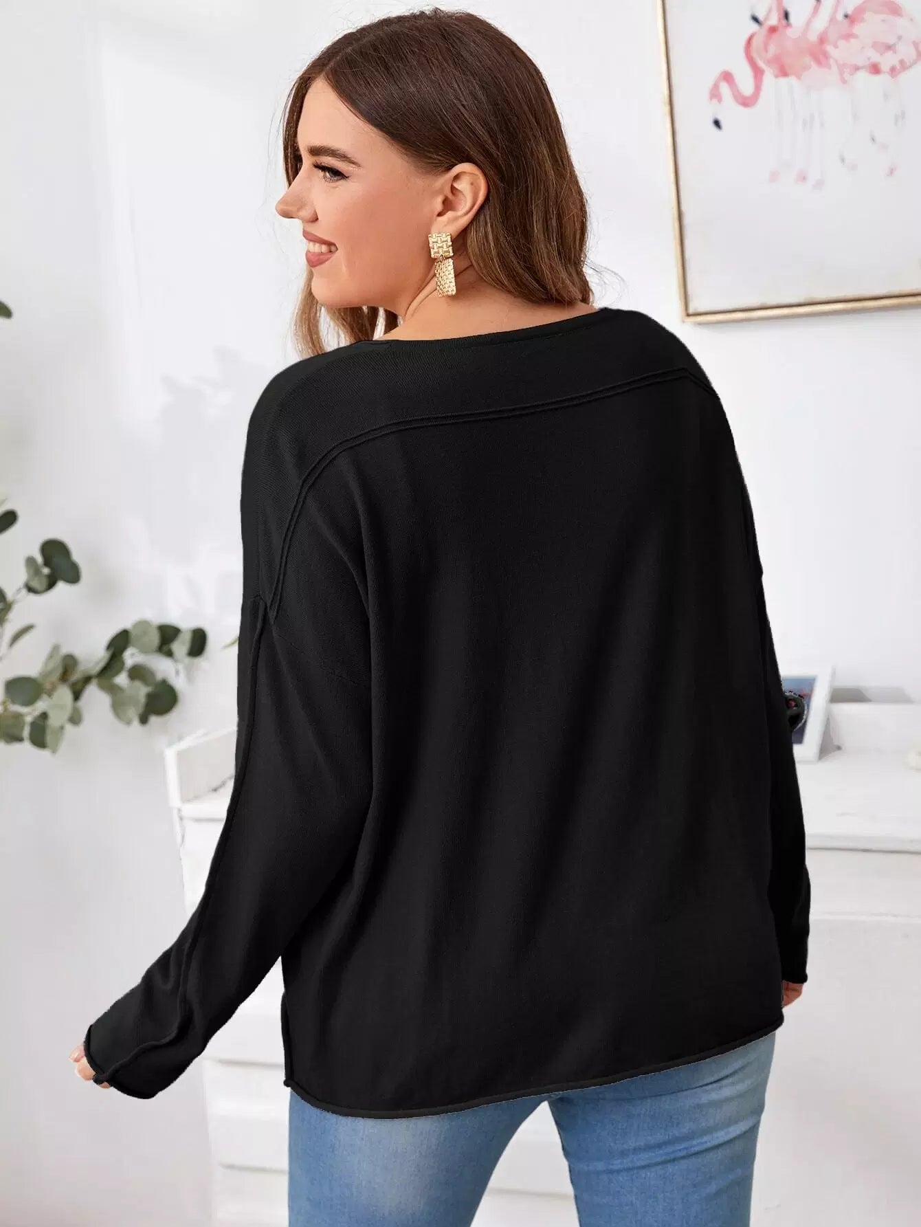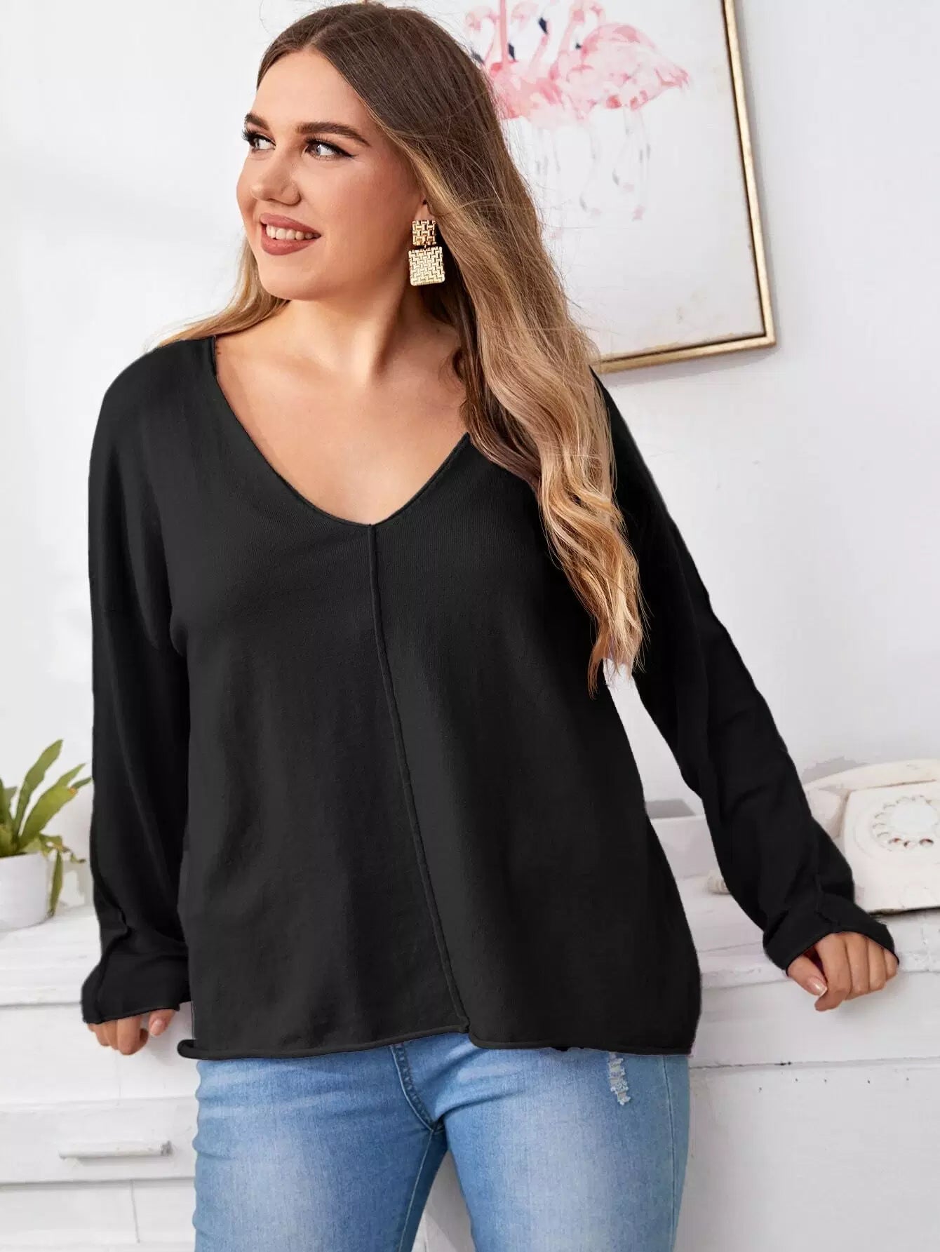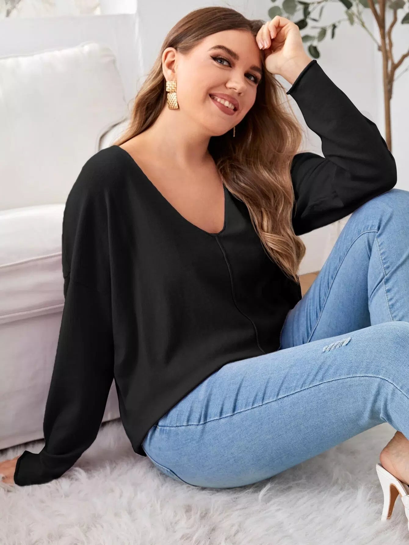 سترة سادة منسدلة الكتفين برقبة على شكل حرف V زائد