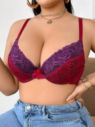 DesireSculpt Plus Size Women's Contrast Floral Lace Fashion Lingerie Bra & Wireless Lingerie Bra
