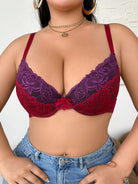 حمالة صدر نسائية كبيرة الحجم من DesireSculpt مصنوعة من الدانتيل المزخرف بالزهور بلون متباين وحمالة صدر لاسلكية