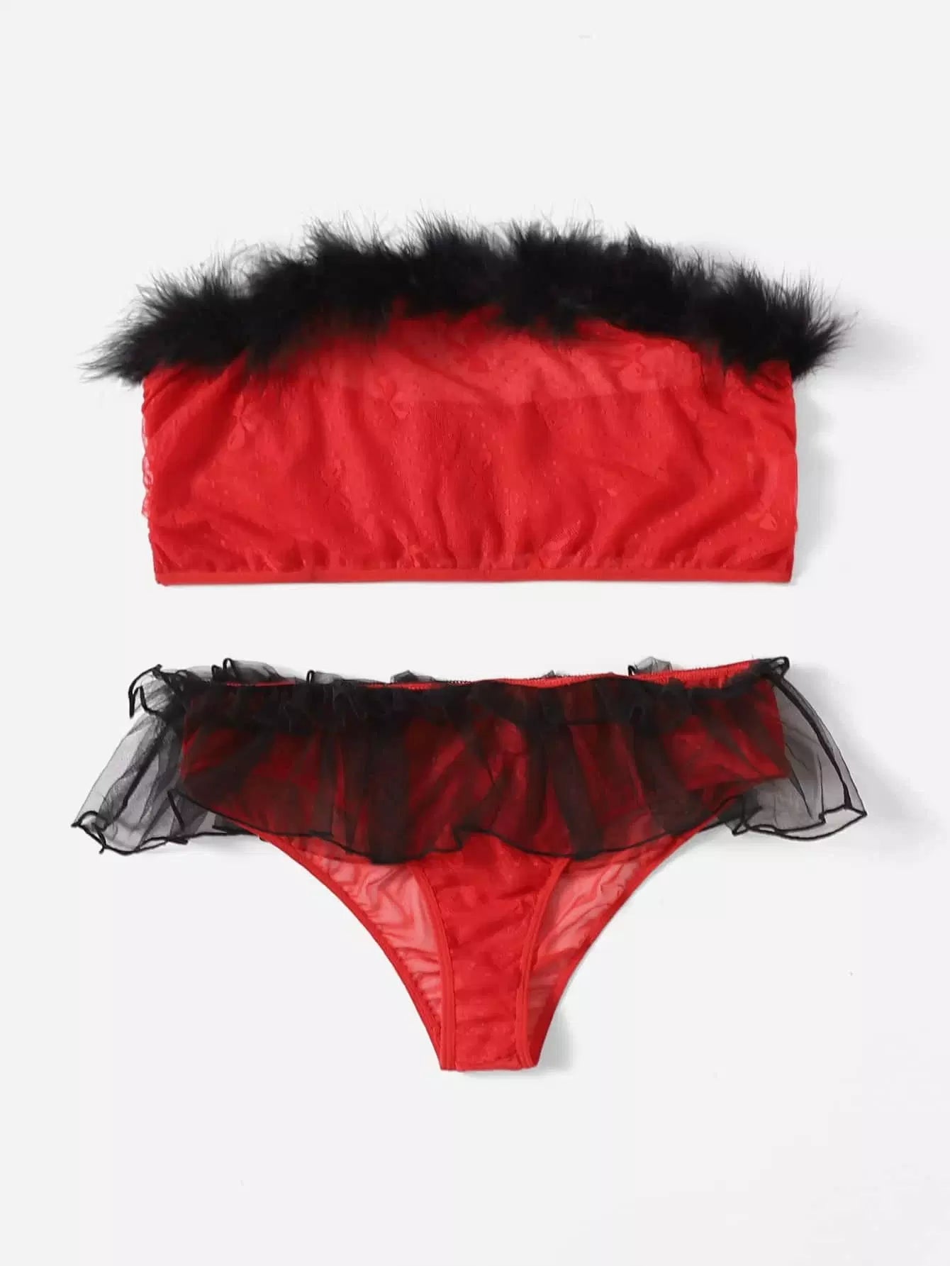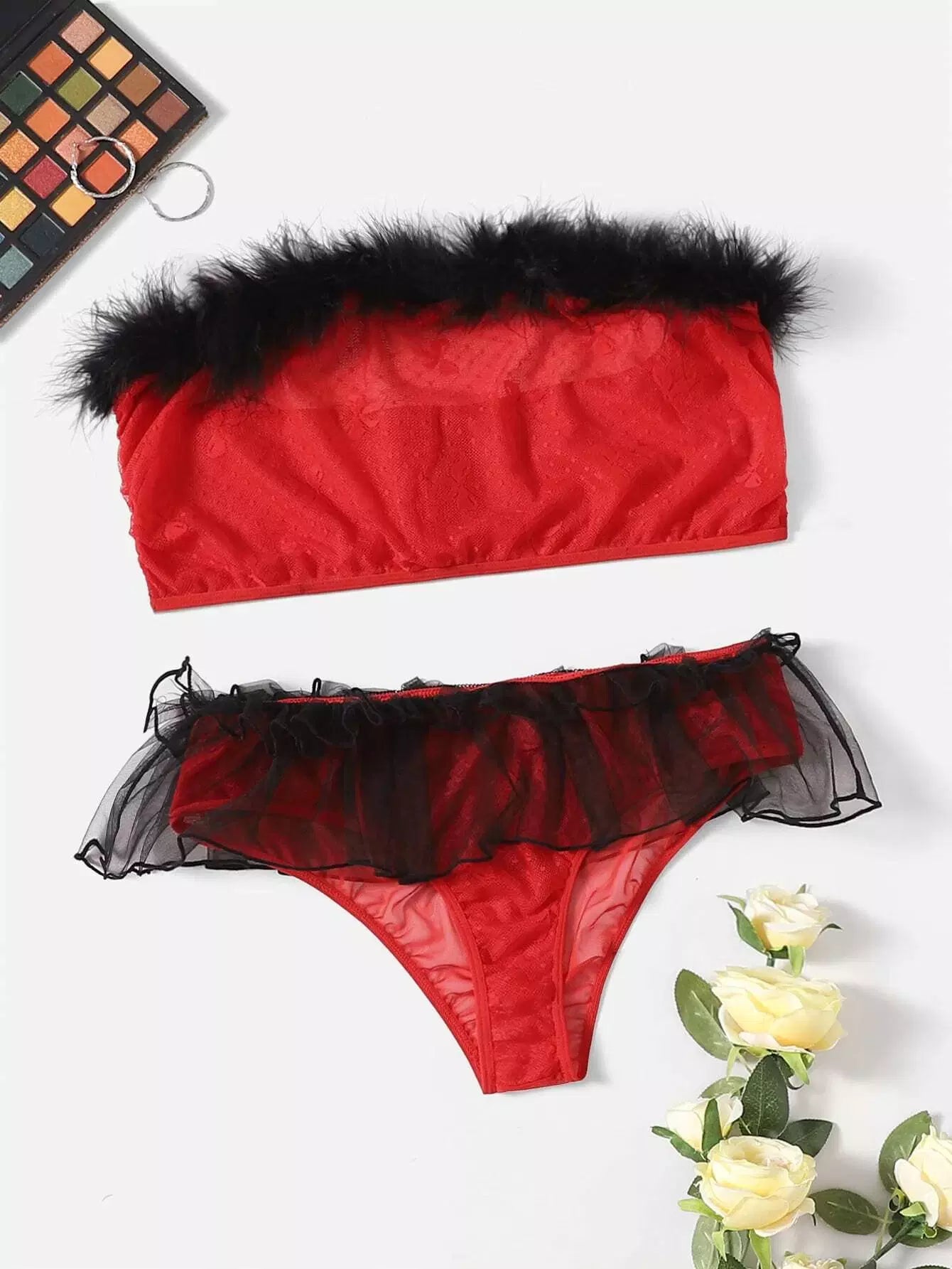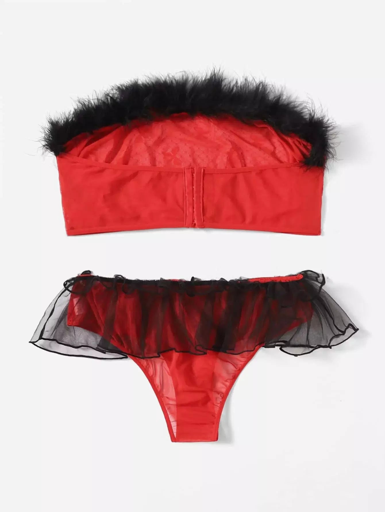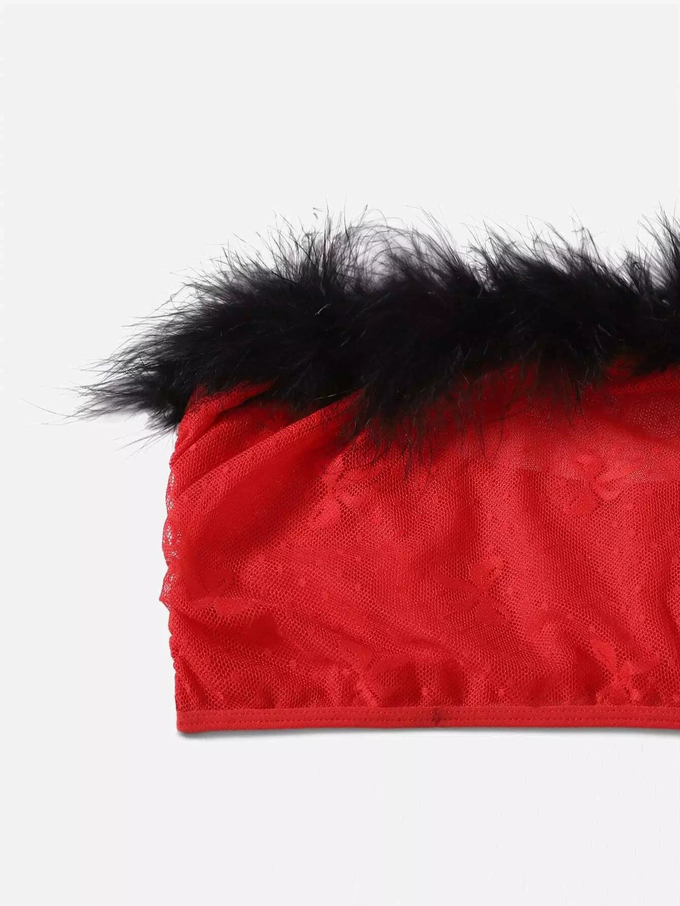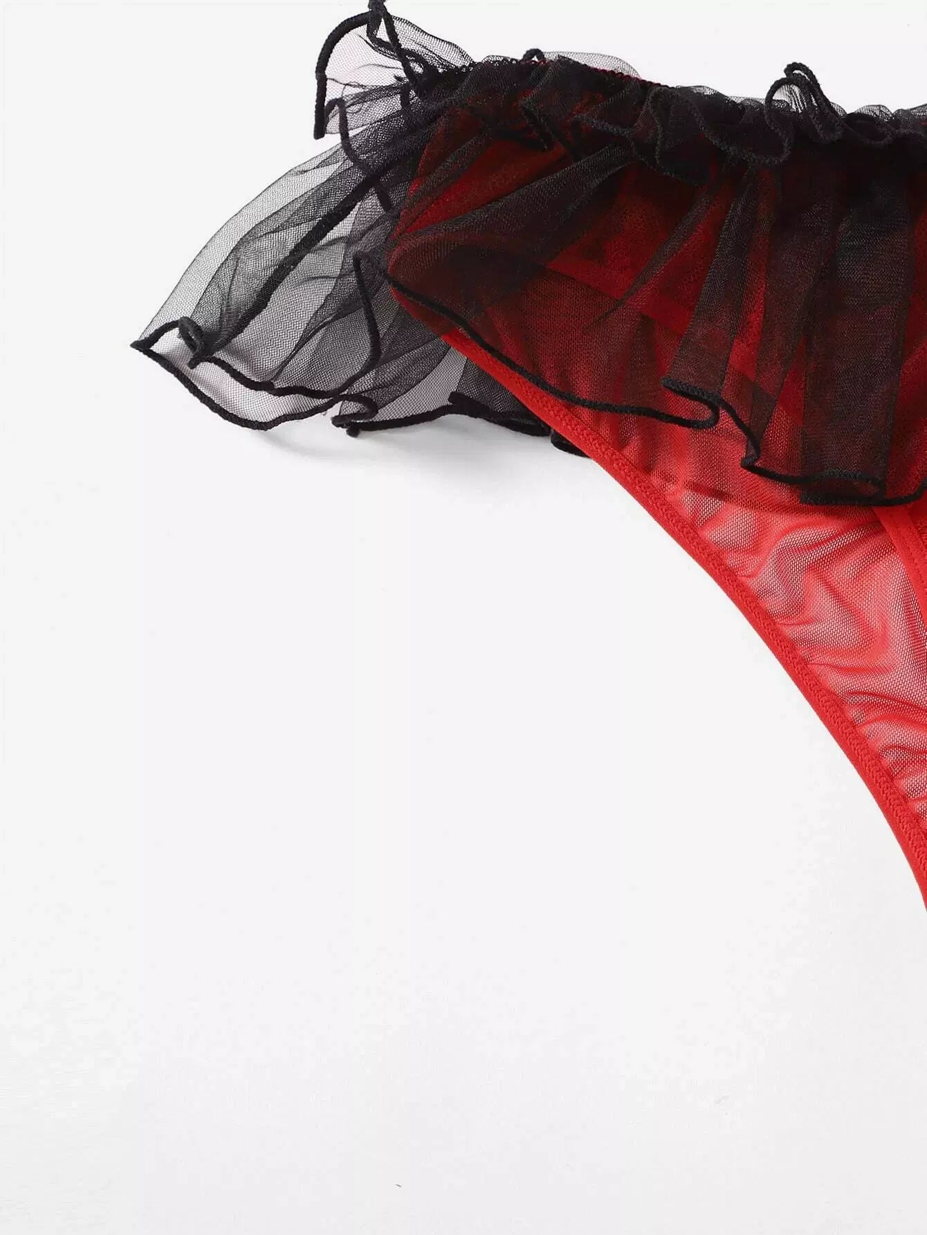 نحيف - مقاس كبير مجموعة الملابس الداخلية الشبكية ذات الحواف الغامضة لعيد الميلاد
