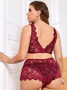 طقم لانجري دانتيل زائد من الدانتيل المزين بزخارف من الدانتيل المزين بالصدف