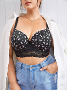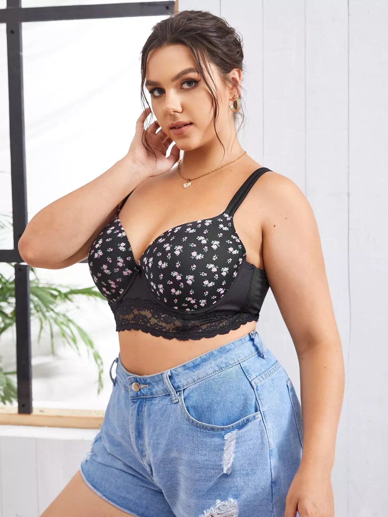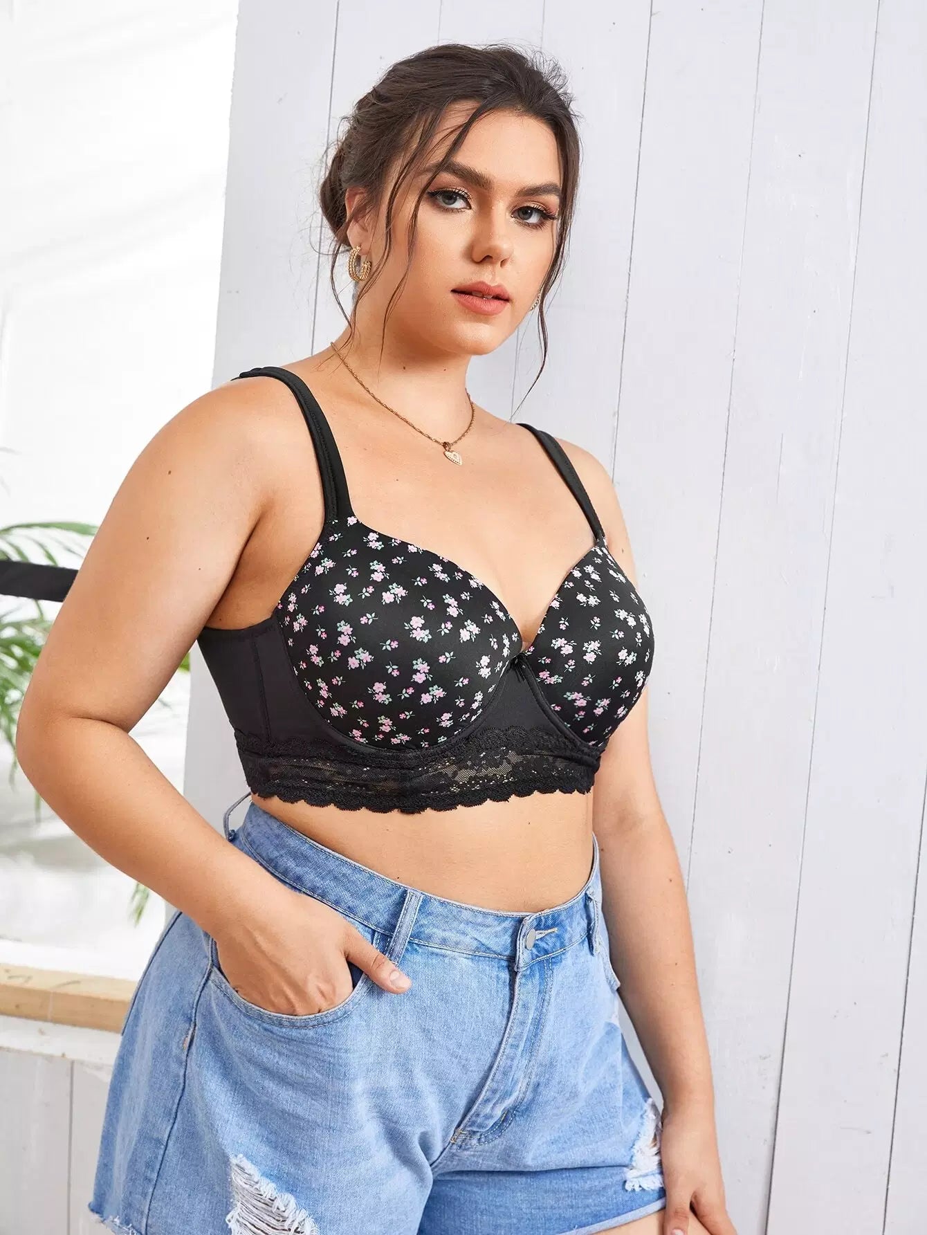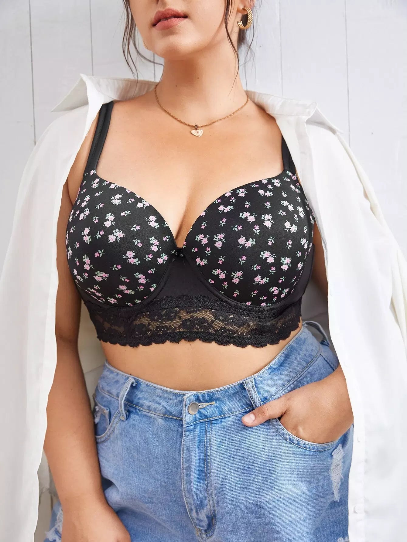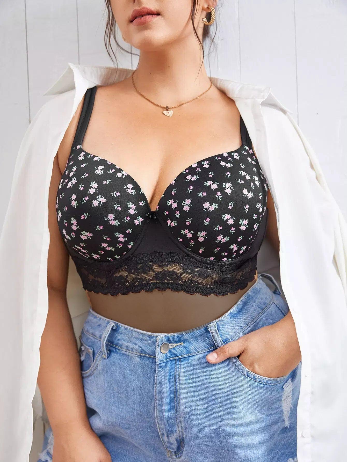 حمالة صدر داخلية من الدانتيل بطبعة زهور بلون زائد بلون متباين