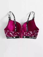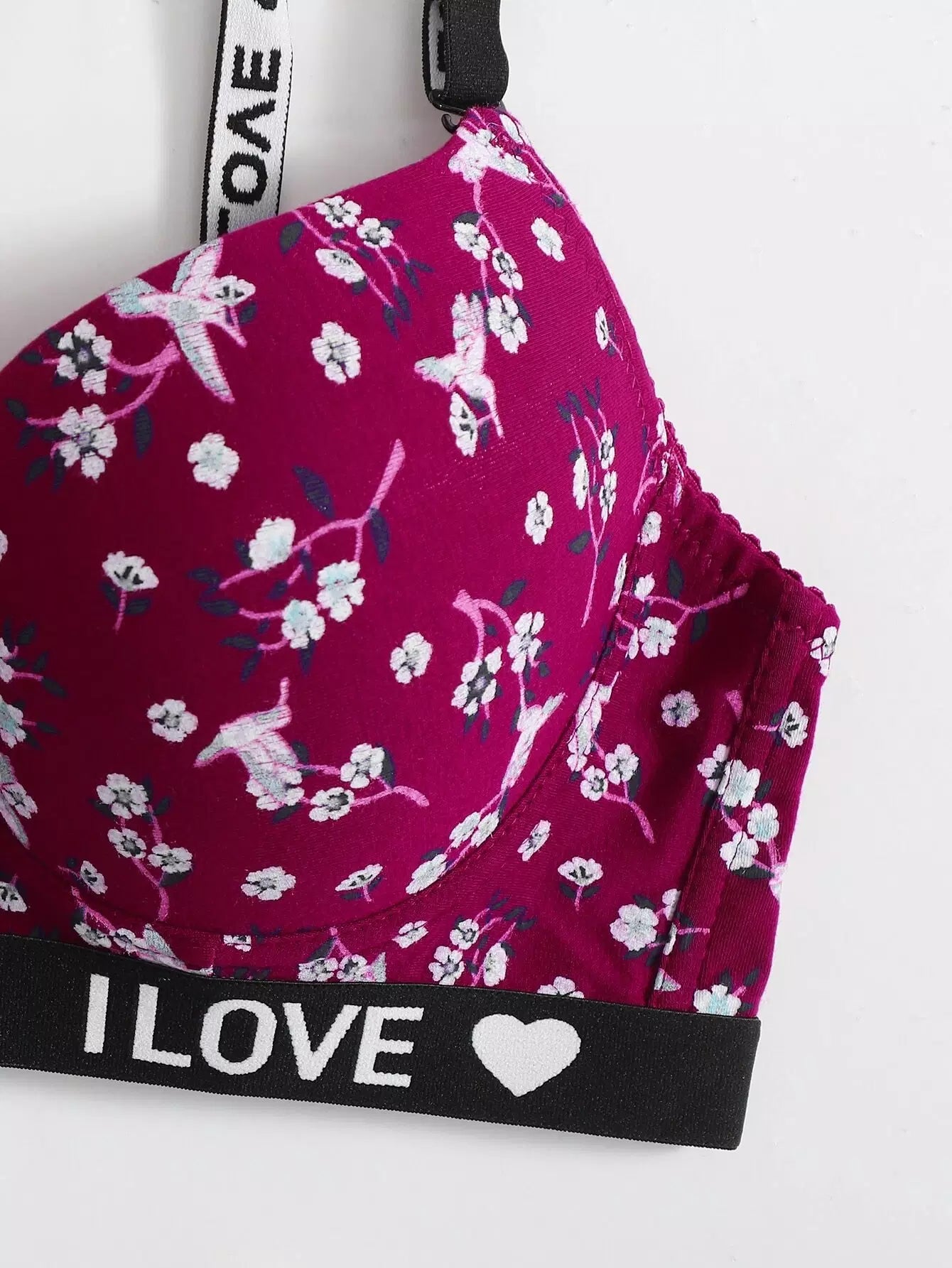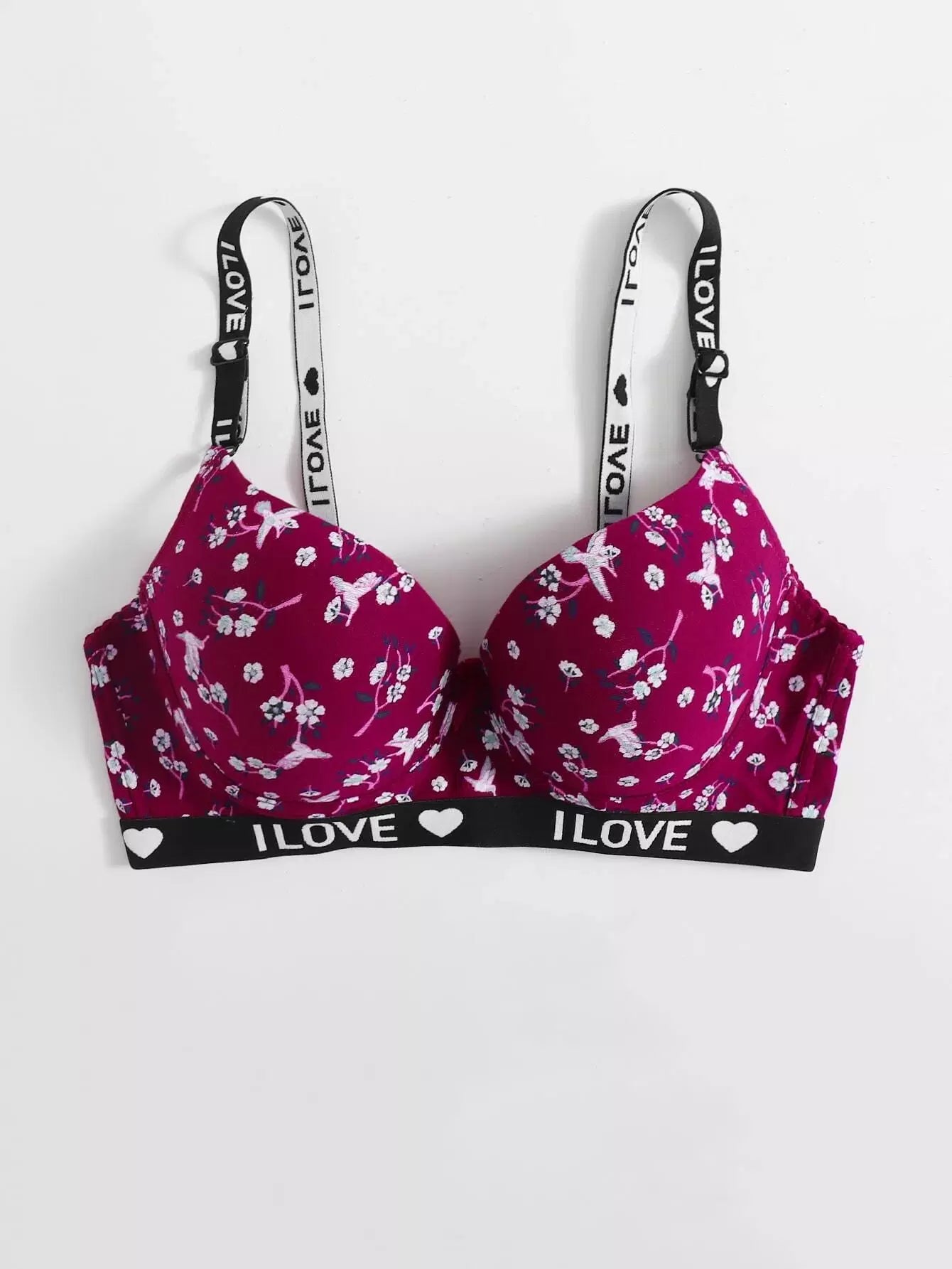 حمالة صدر بسلك داخلي بطبعة زهور وشريط حروف