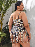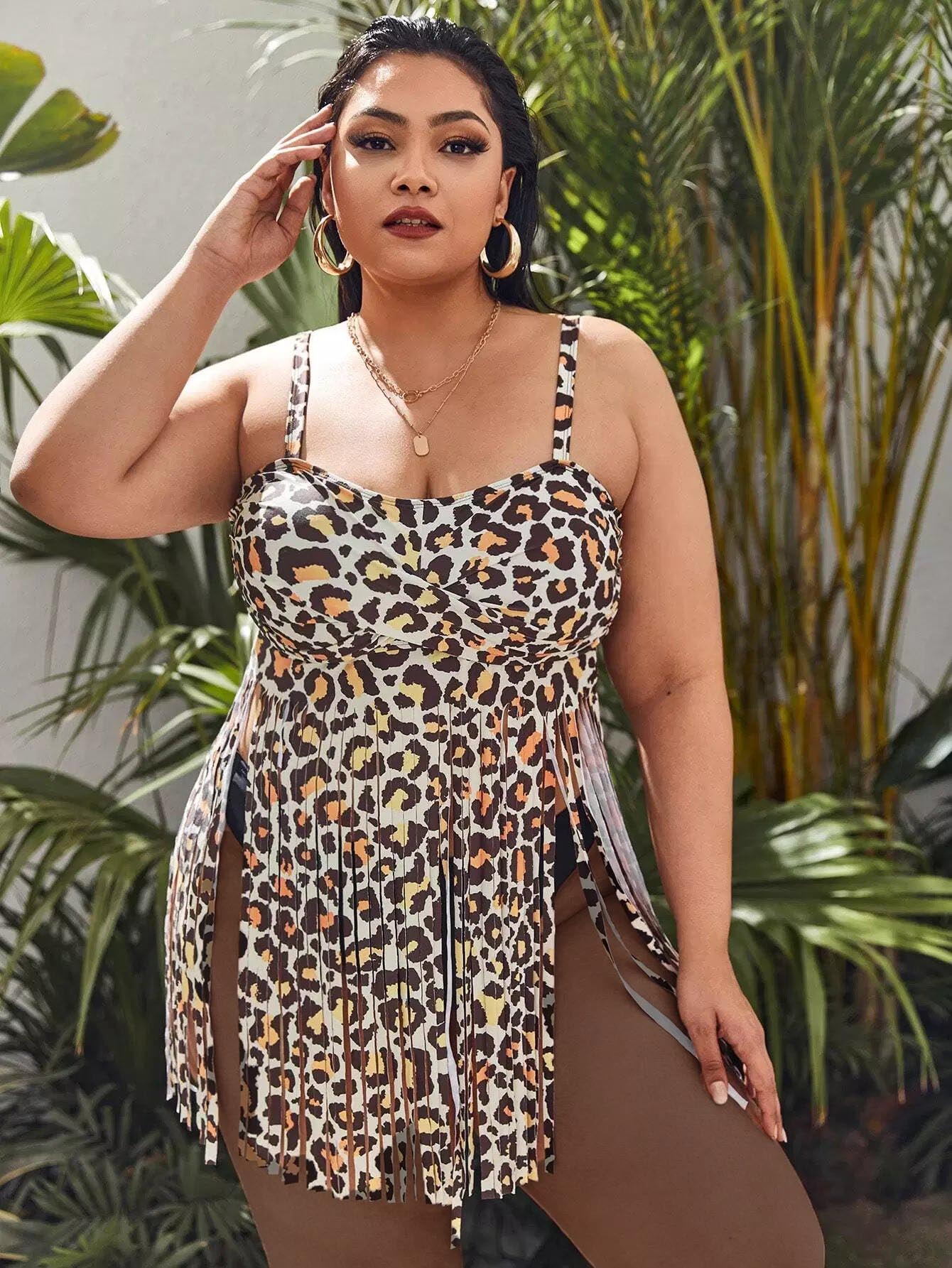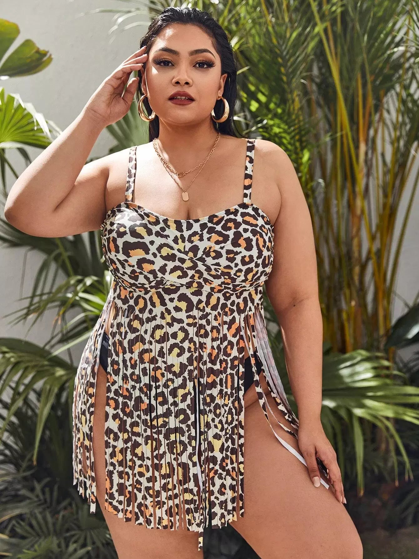 بدلة سباحة بيكيني بحاشية من جلد النمر الزائد