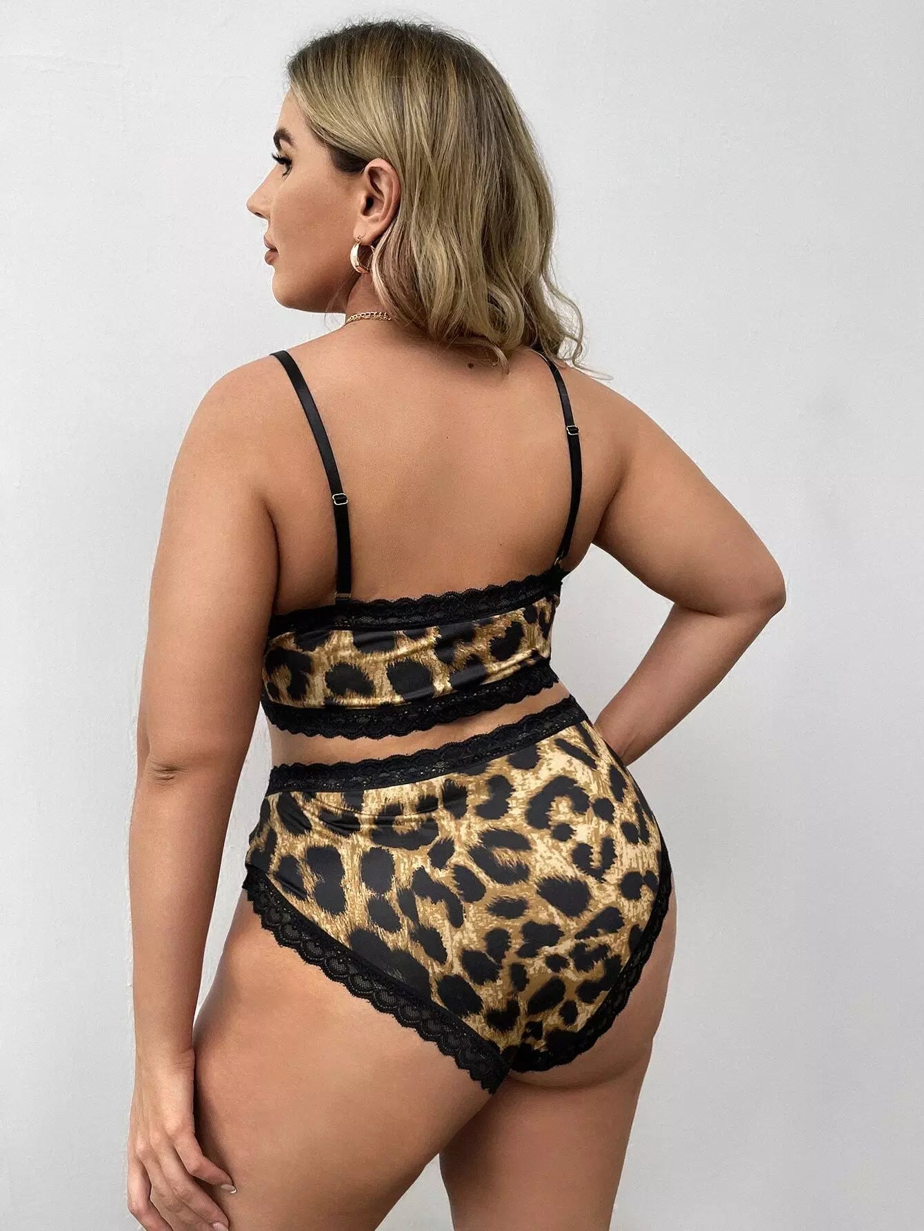 طقم لانجري بحواف من الدانتيل بنقشة جلد الفهد زائد
