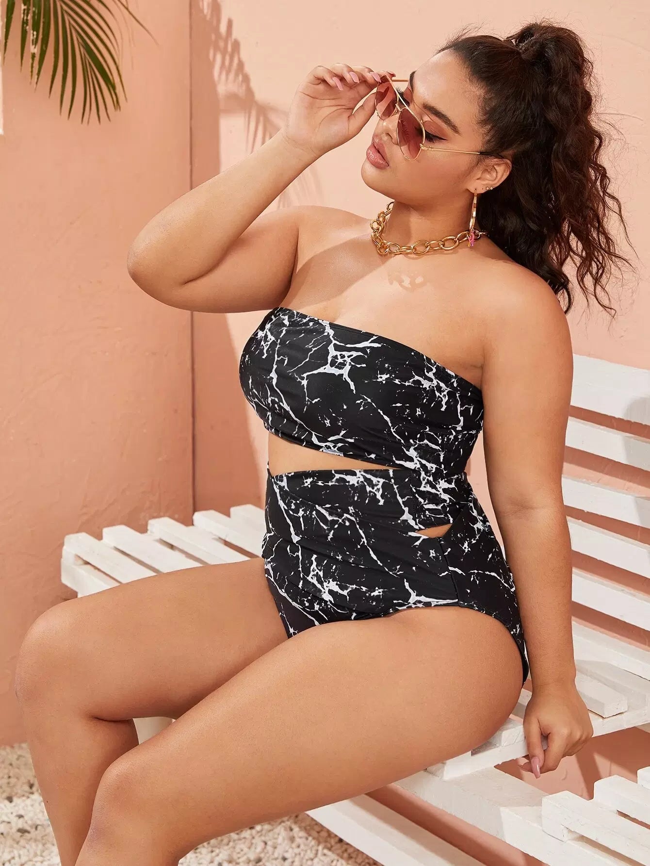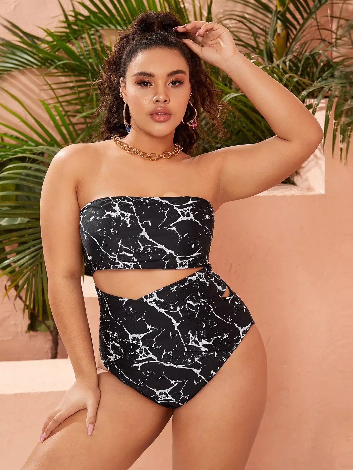 مايوه سباحة بيكيني بطبعة رخام بلس باندو عقال بطبعة رخام