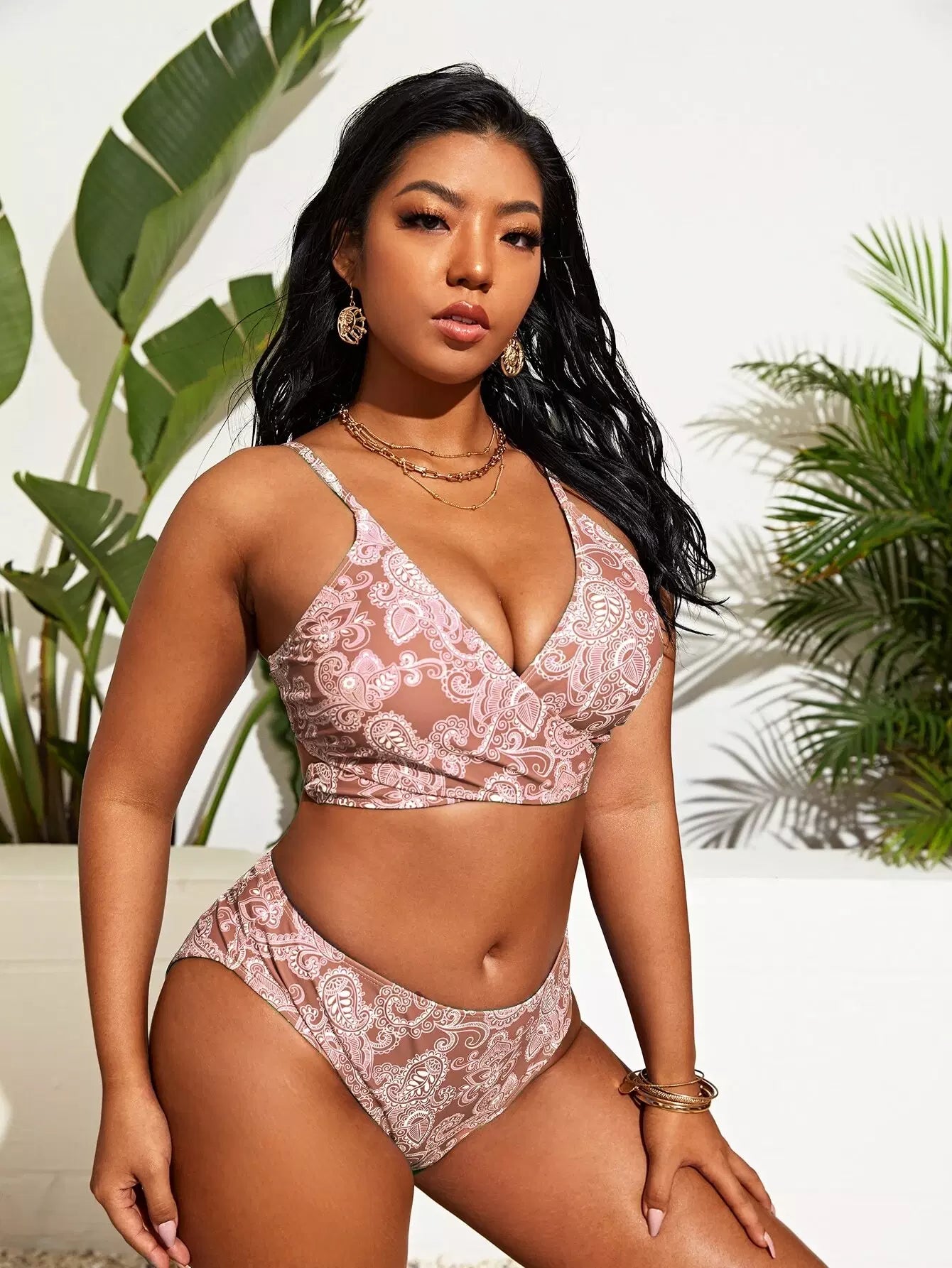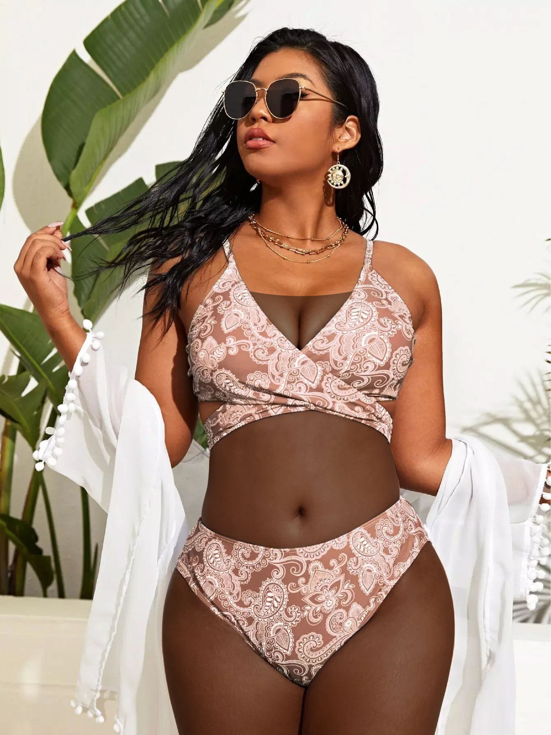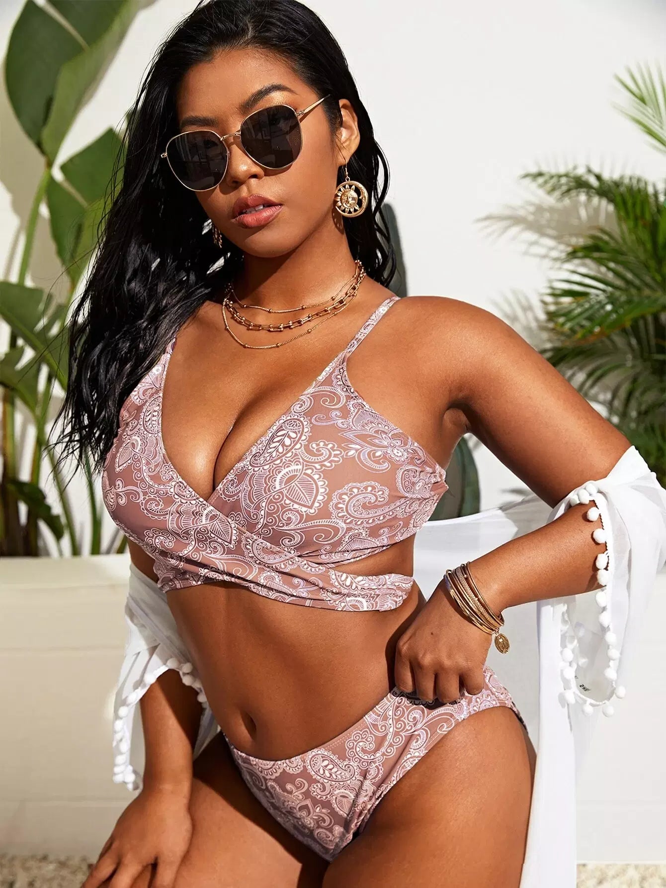 نحيف - مقاس كبير ملابس السباحة بيكيني ملفوفة بطباعة بيزلي