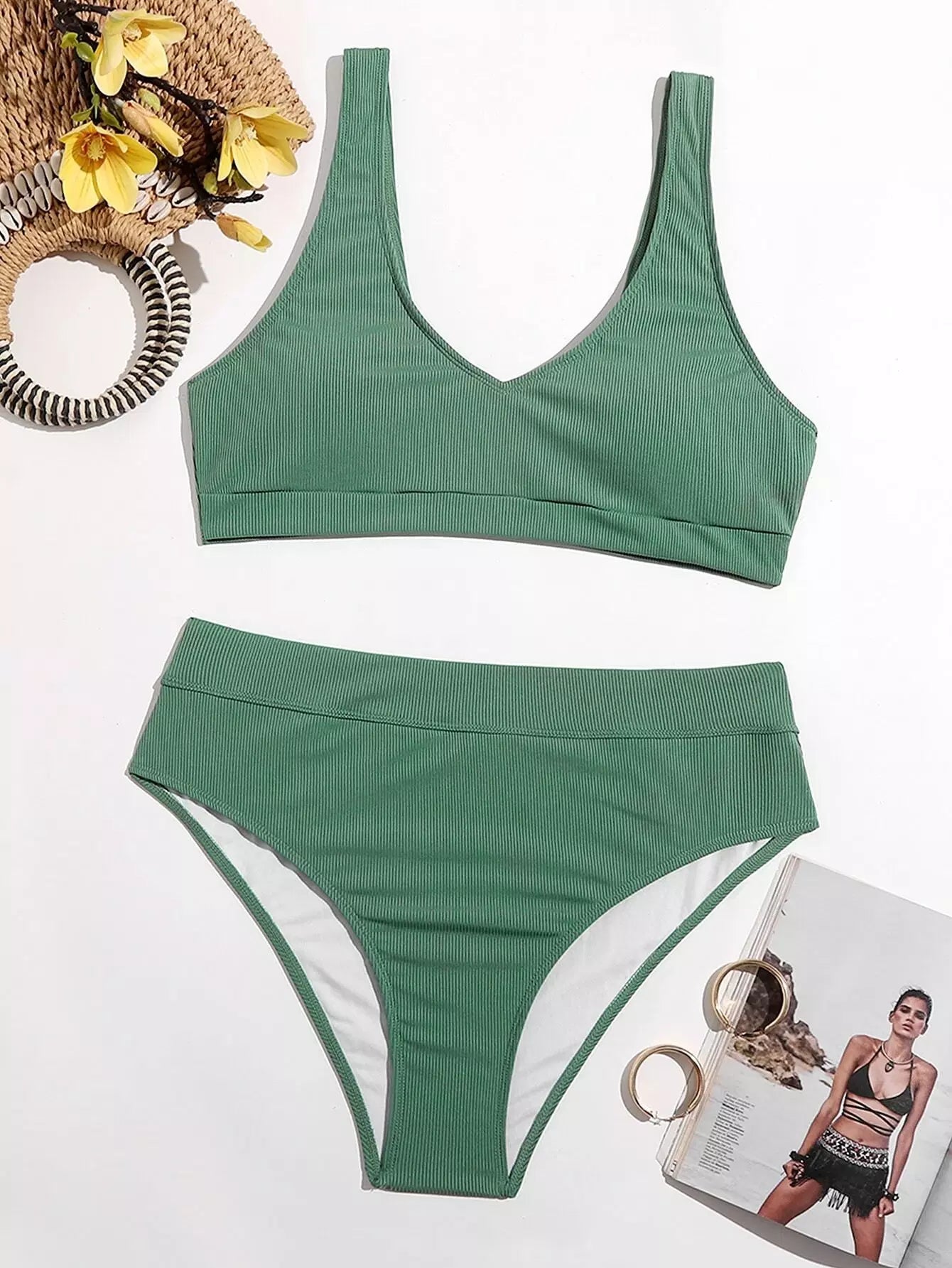 نحيف - مقاس كبير ملابس سباحة بيكيني مضلعة