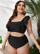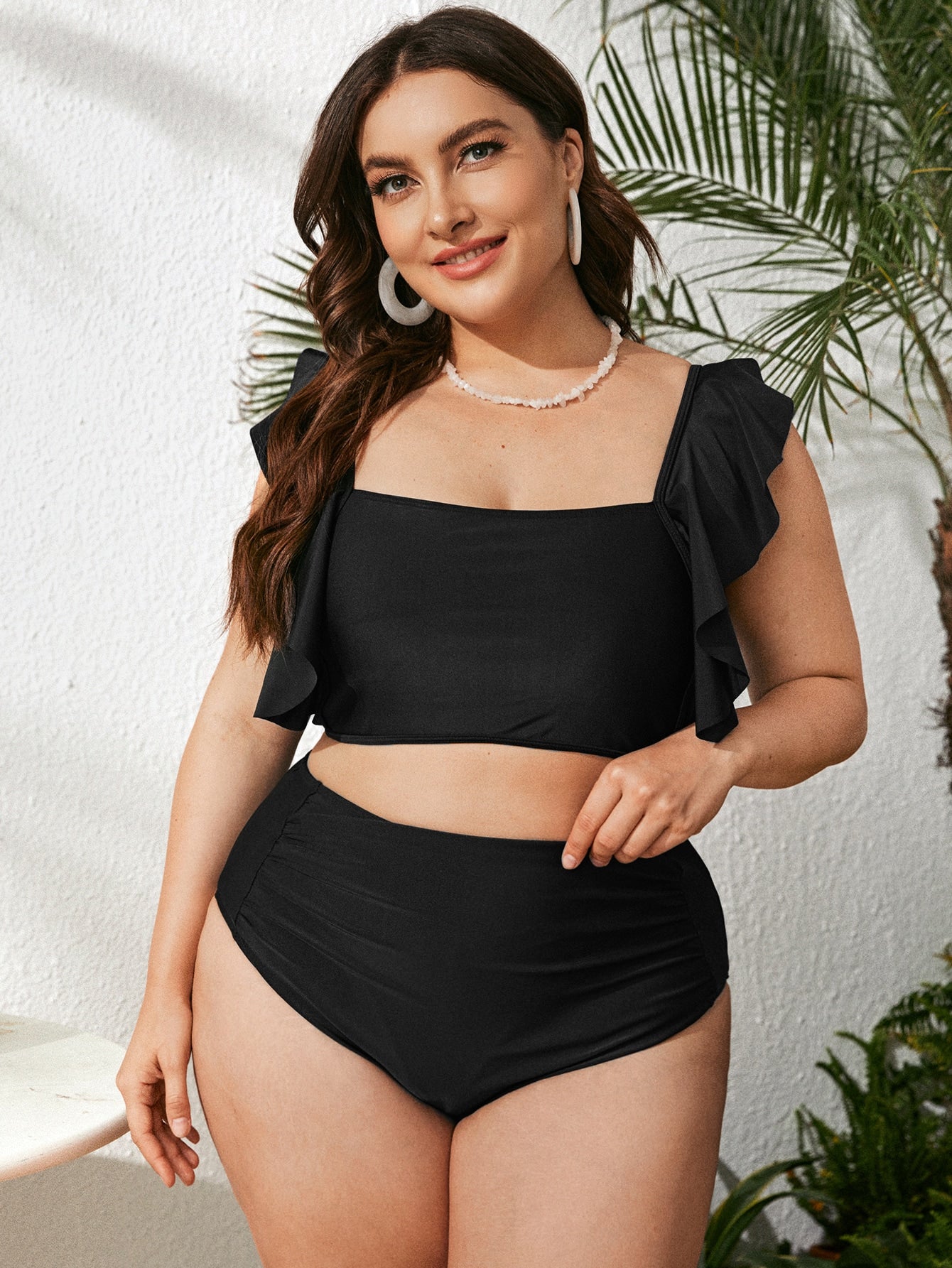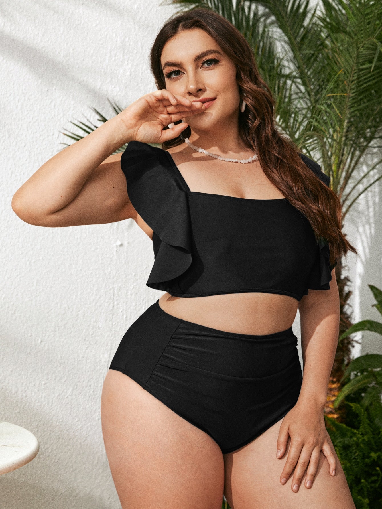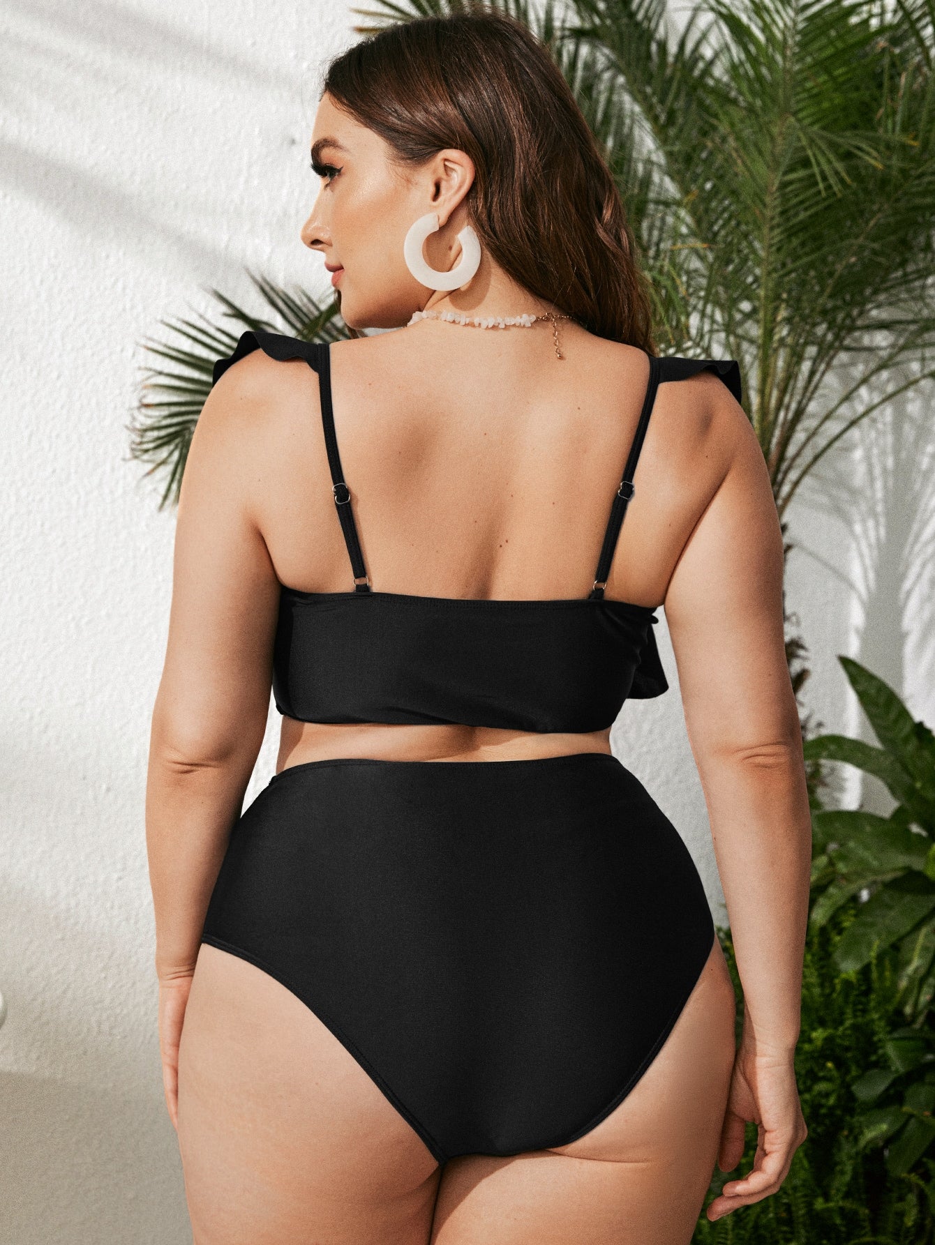 Plus Ruffle Trim High Waisted Bikini Swimsuit