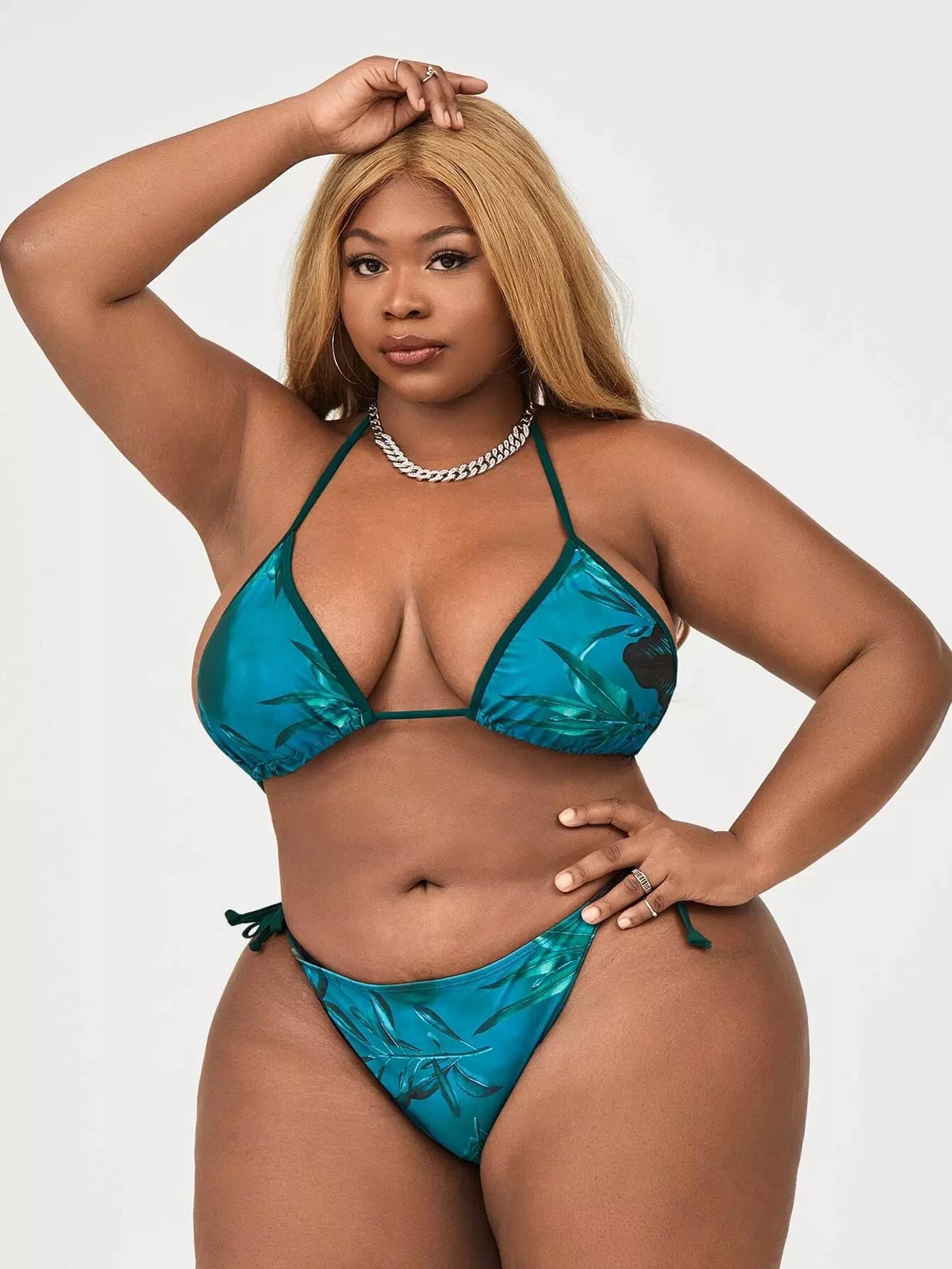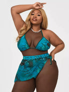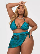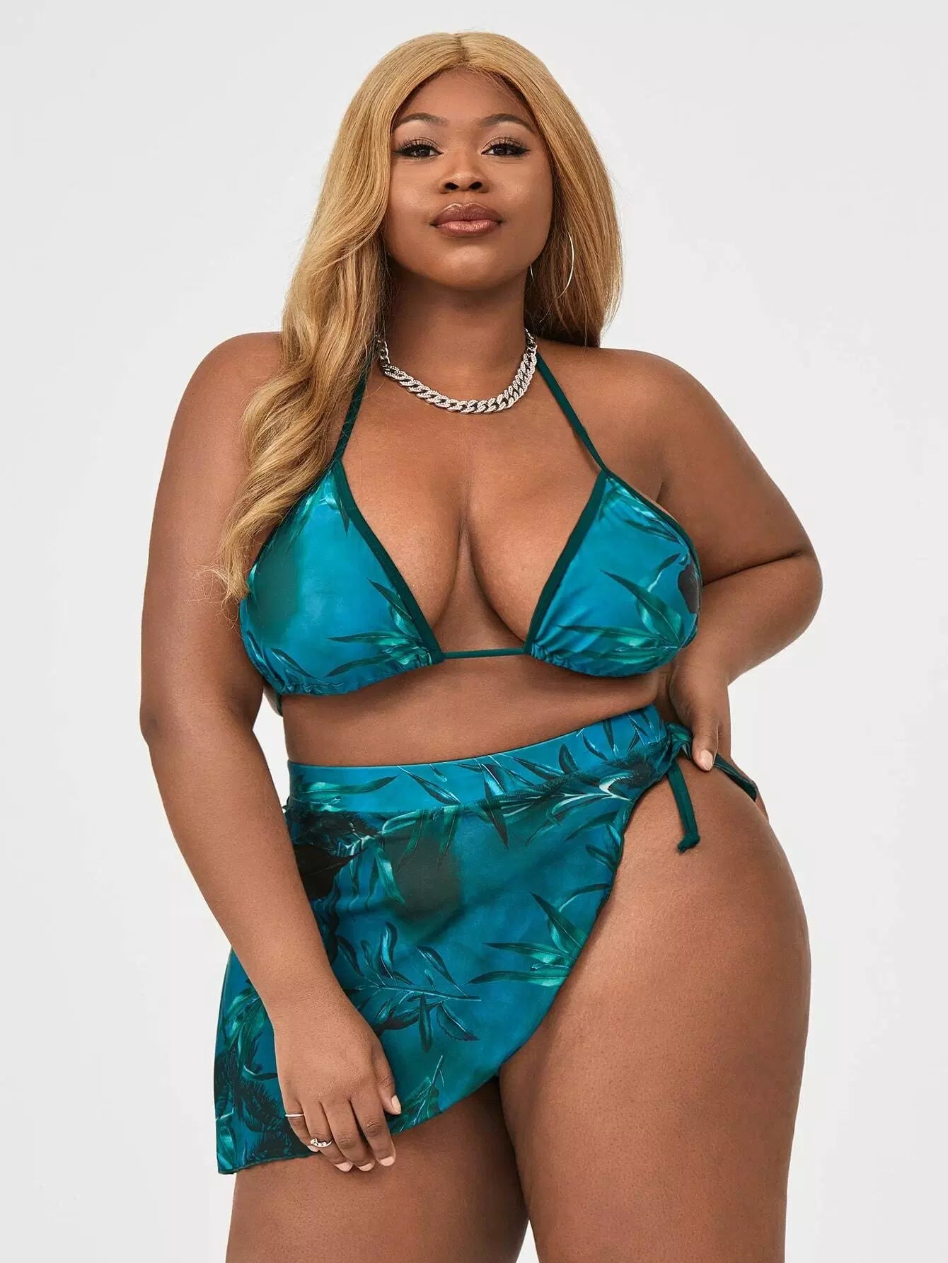 ملابس سباحة بيكيني بيكيني مثلث بطبعة نباتات زائد 3 عبوات وتنورة شاطئ
