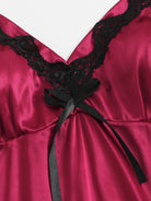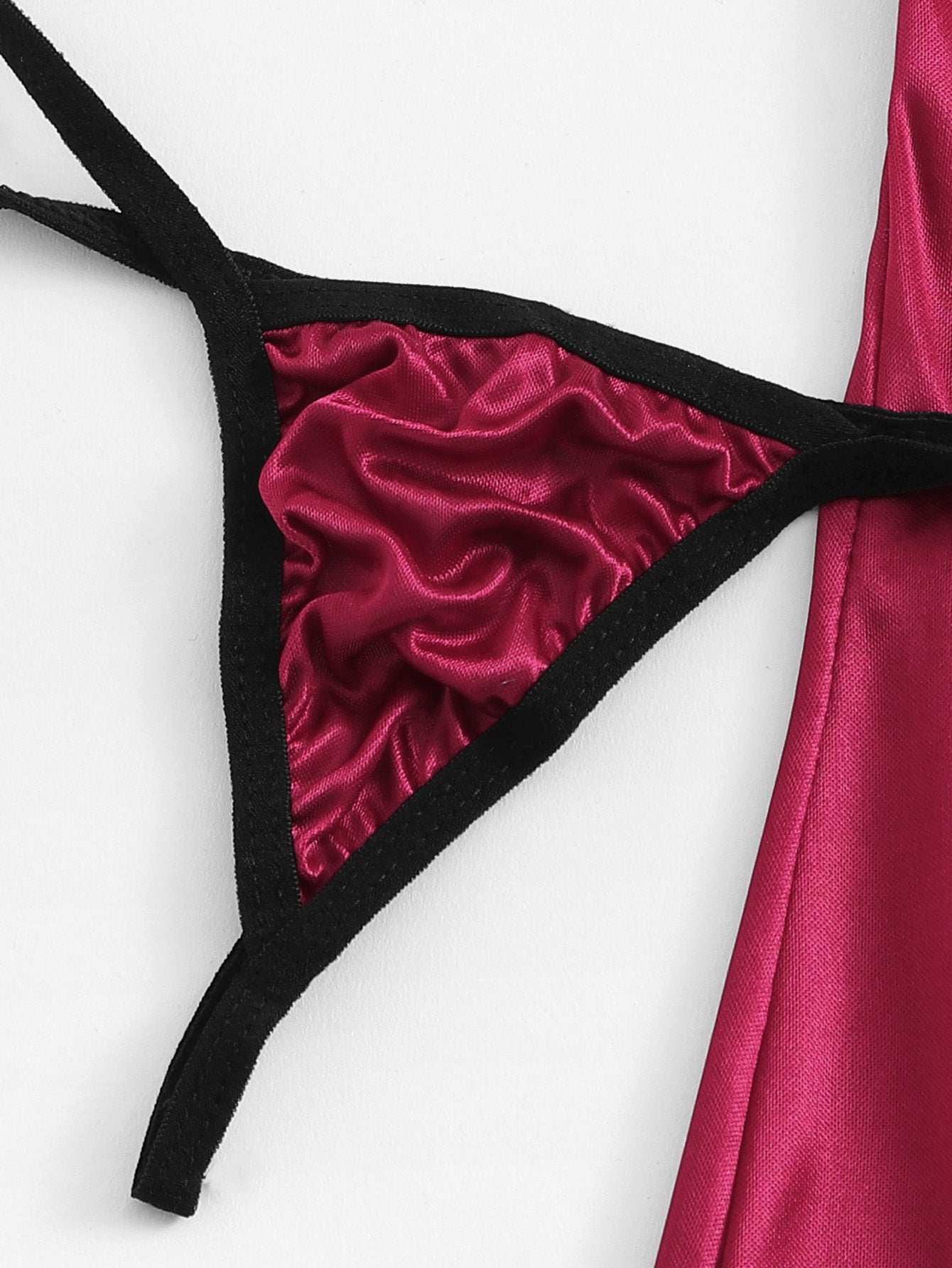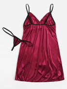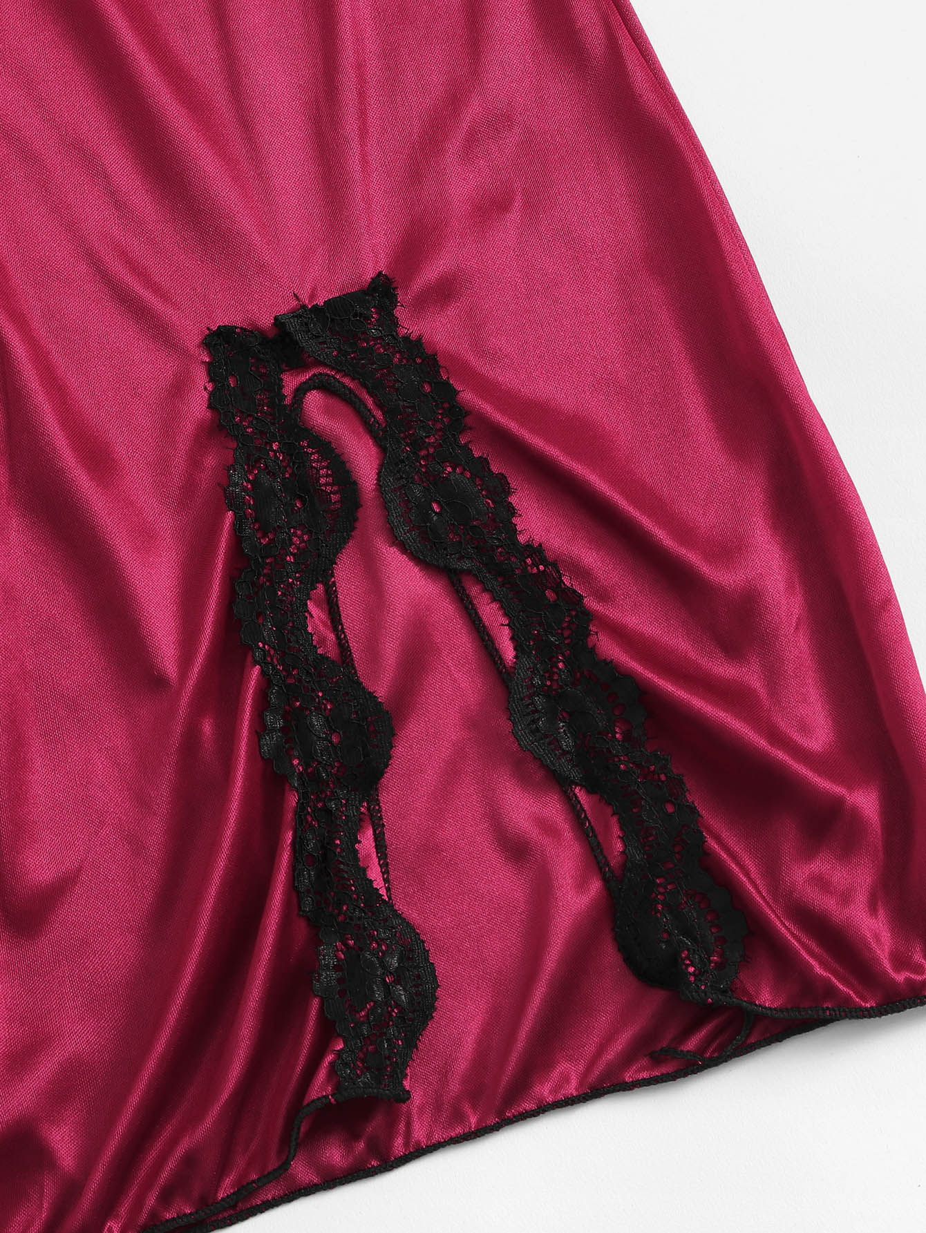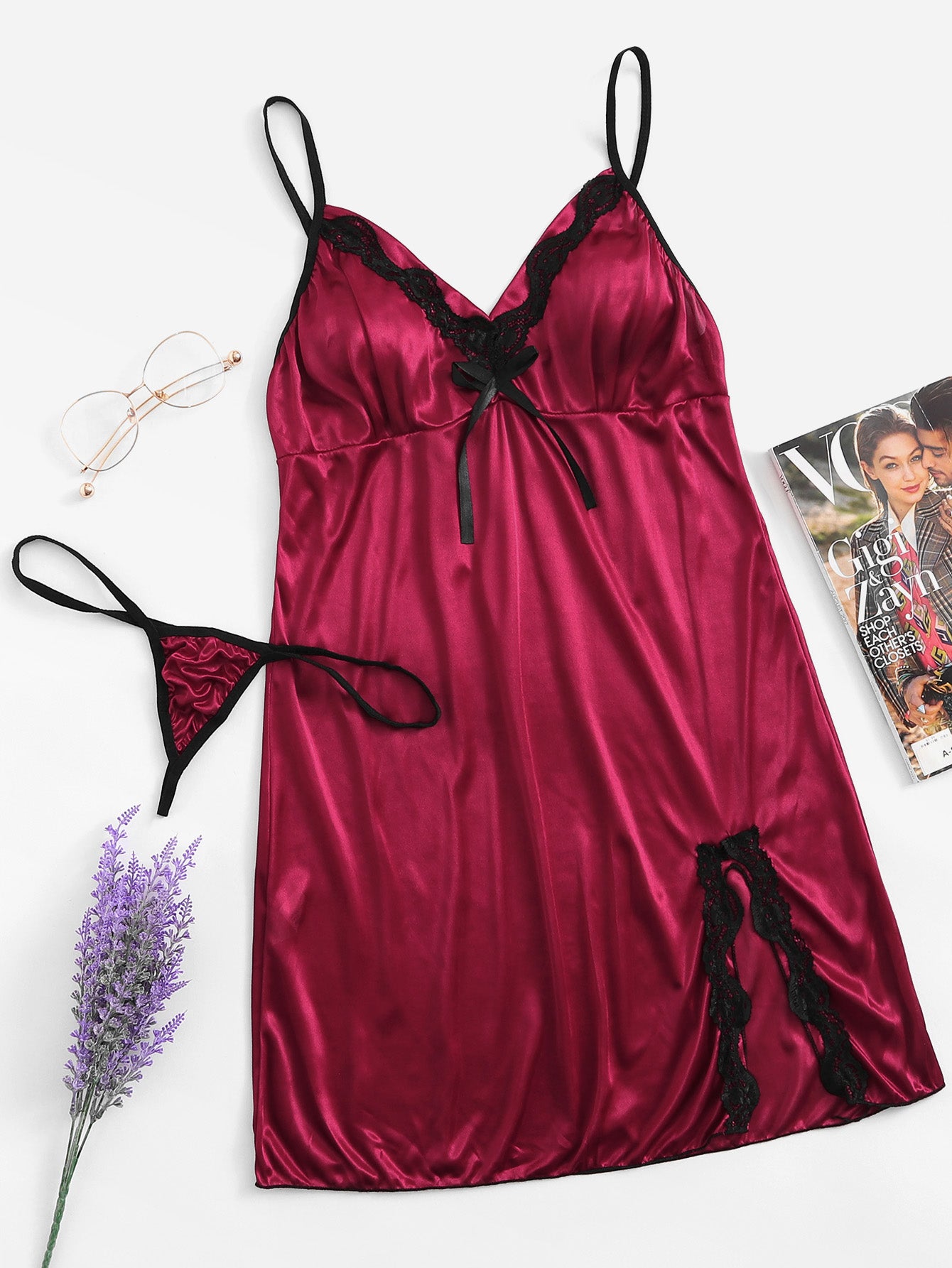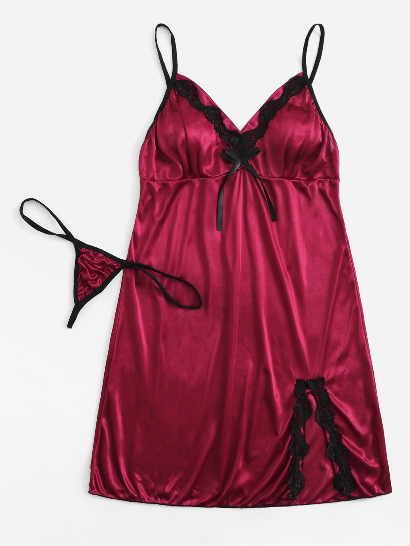 Plus Contrast Lace Split Satin Babydoll With Thong