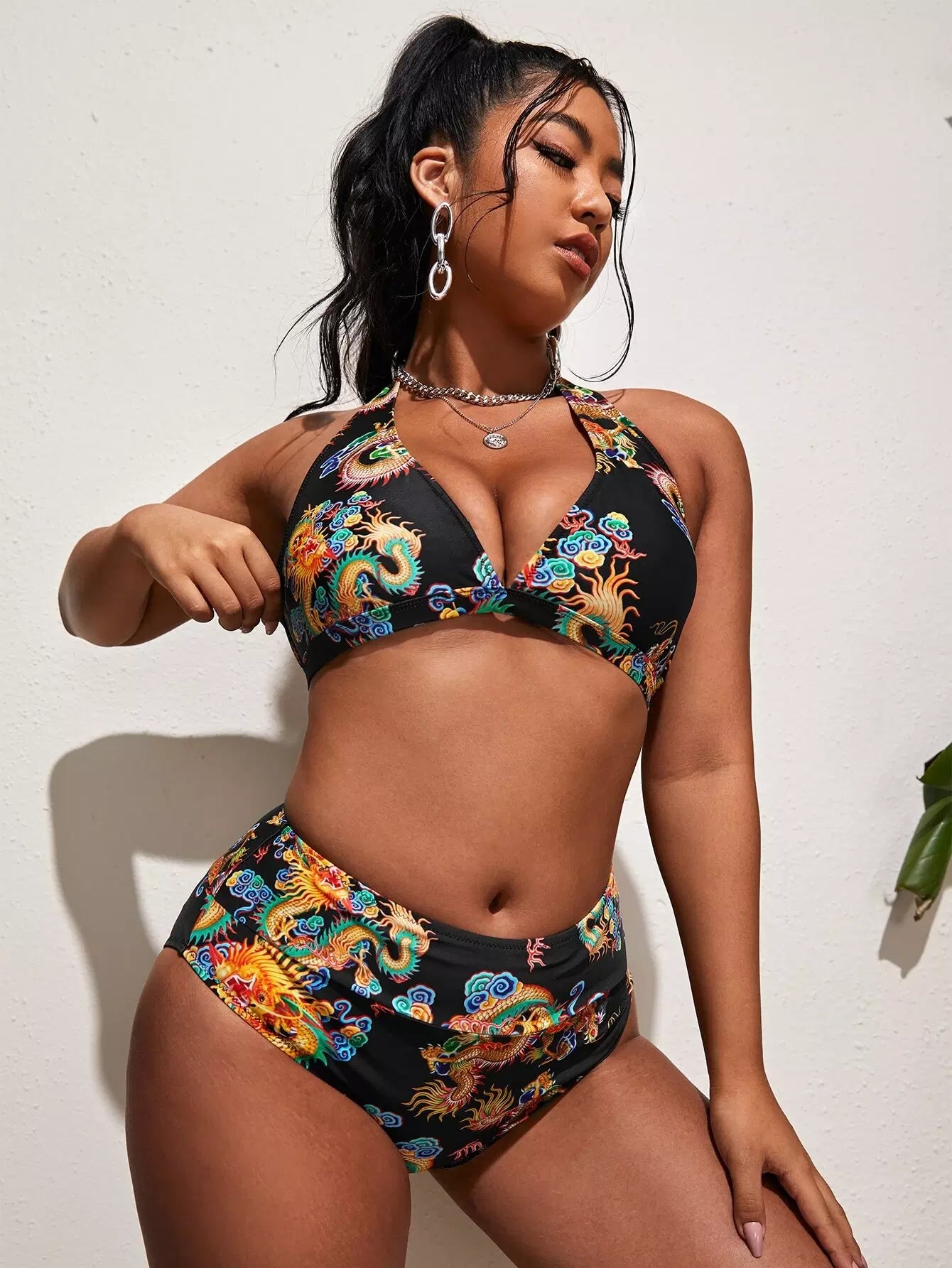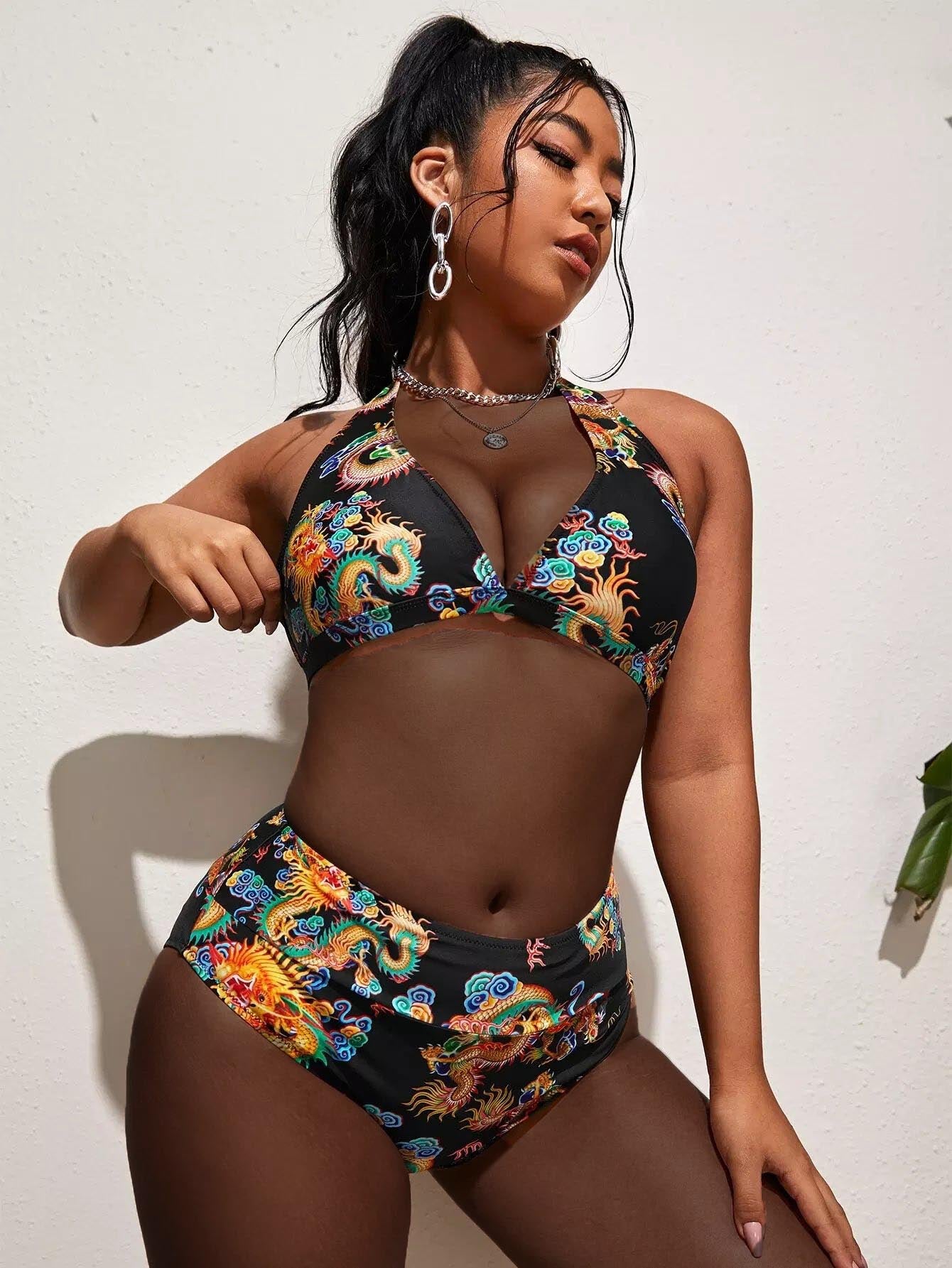 بدلة سباحة بيكيني بيكيني برباط تنين صيني زائد