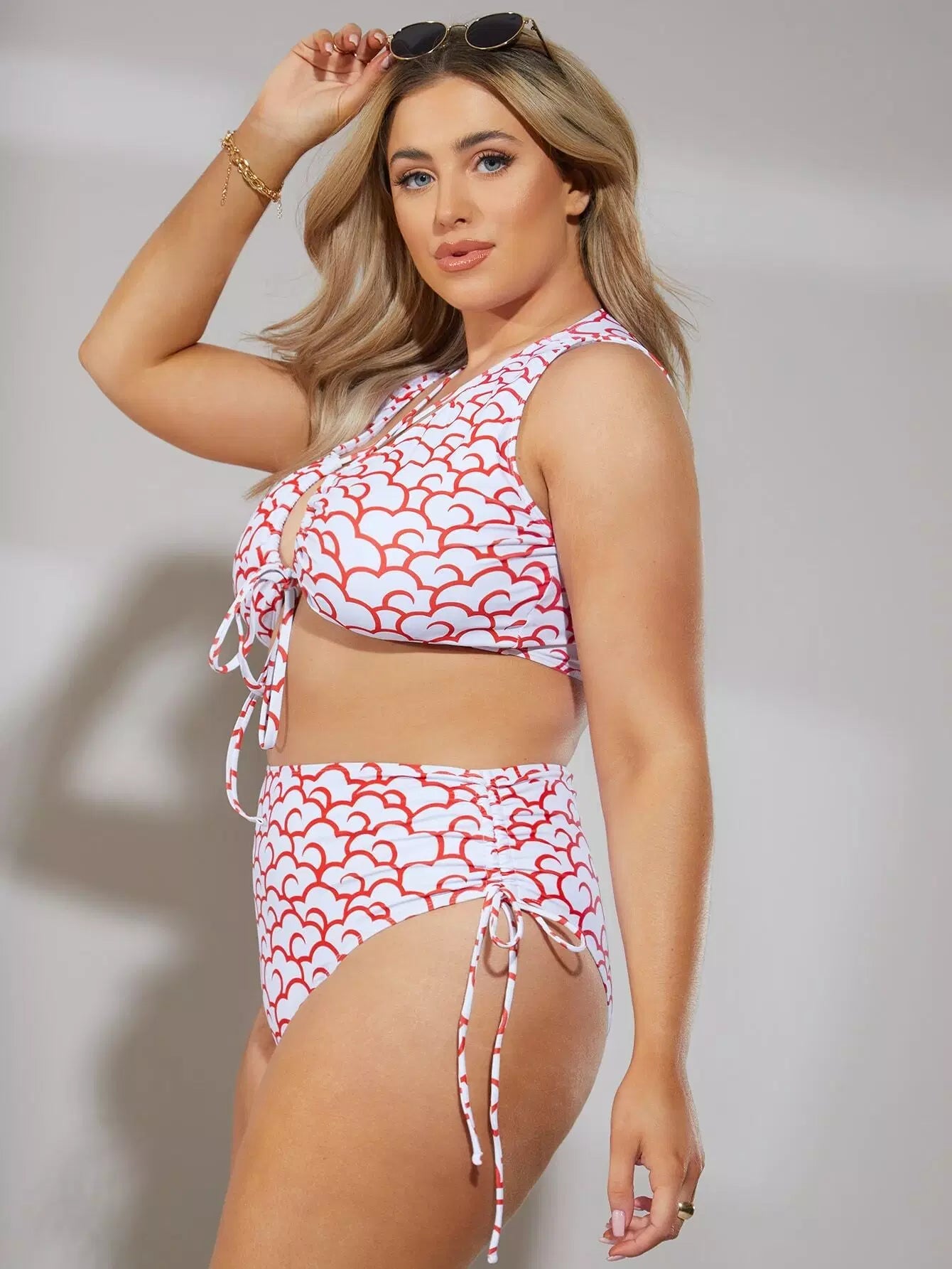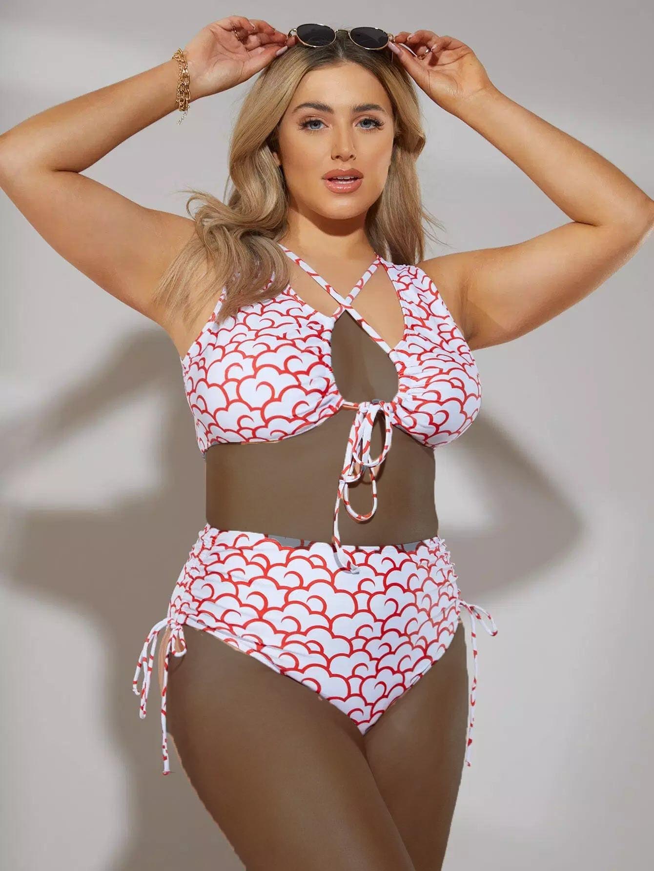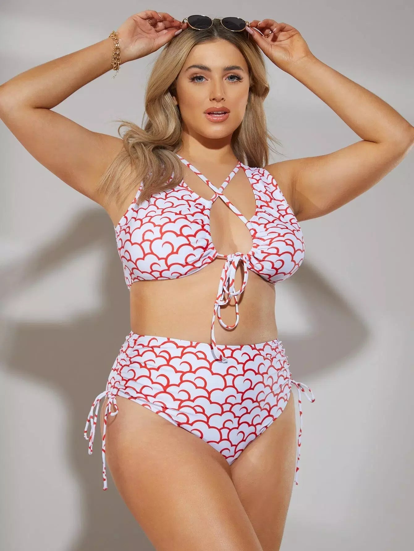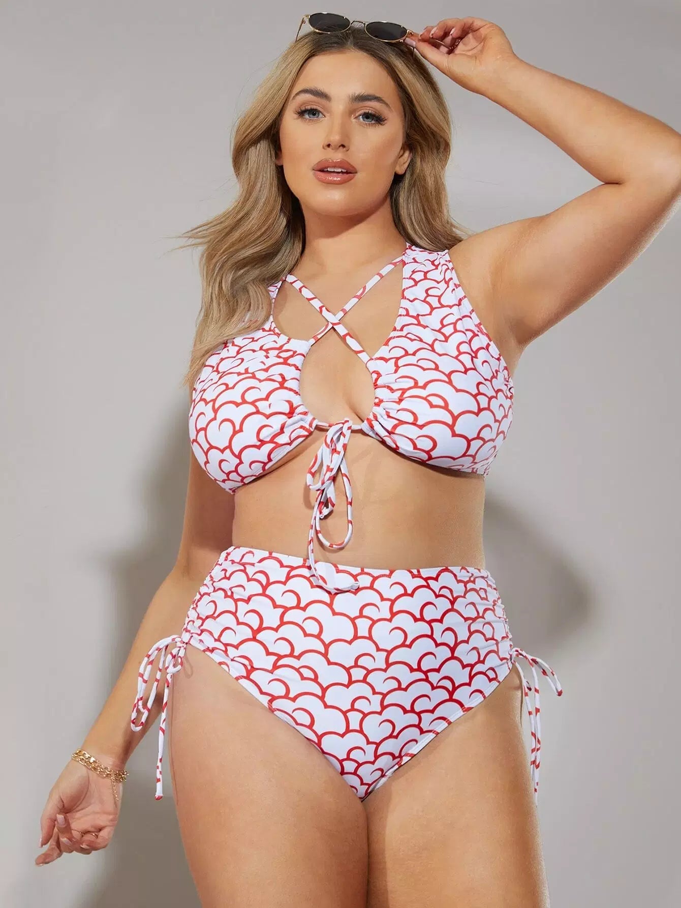 بدلة سباحة بيكيني بطبعة سحابة زائد رباط سباحة سحابي