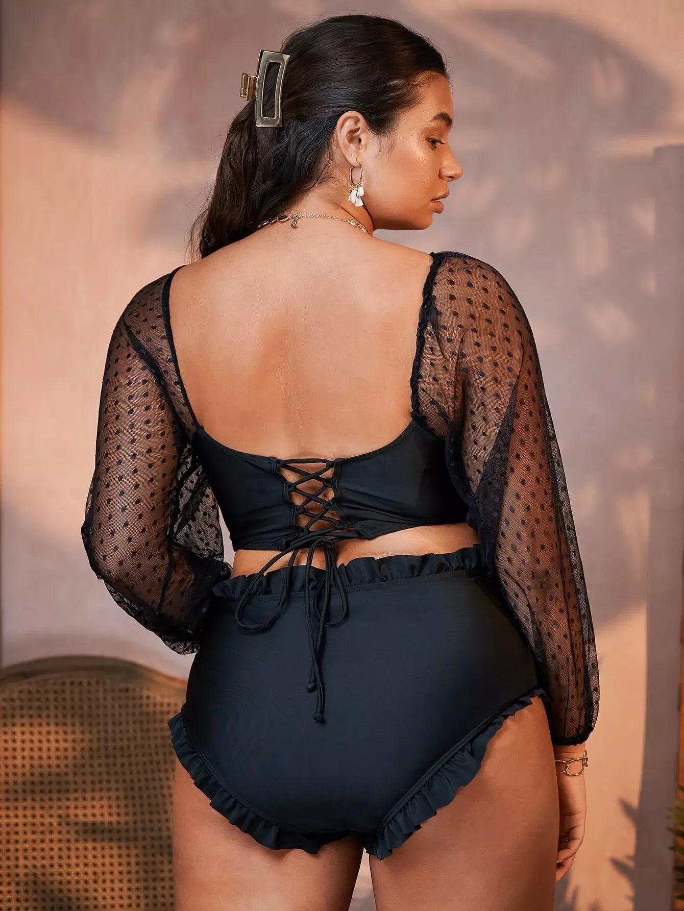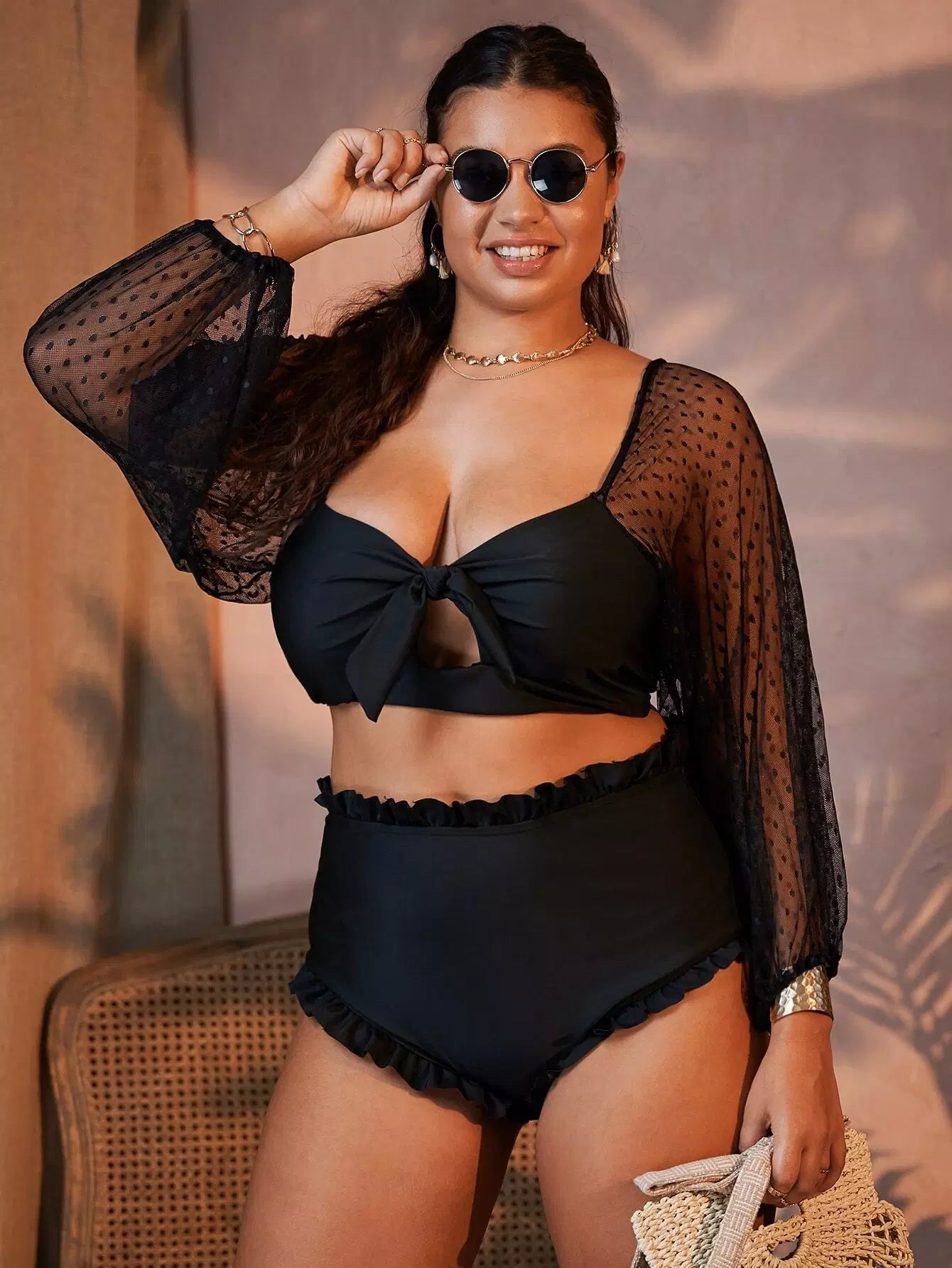 بدلة سباحة بيكيني بيكيني بعقدة أمامية شبكية بلون مغاير
