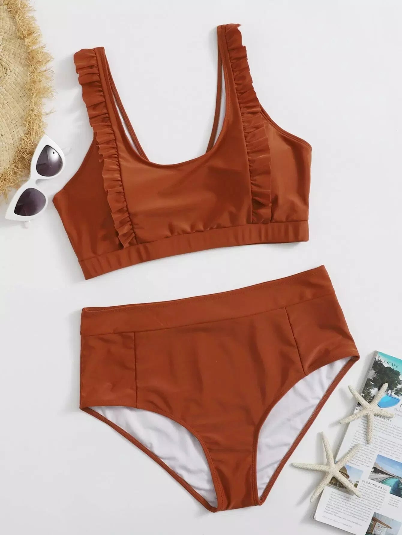 بدلة سباحة بيكيني عالية الخصر بحواف كشكش زائد