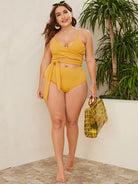 بدلة سباحة بيكيني عالية الخصر بتفاصيل ملفوفة زائد