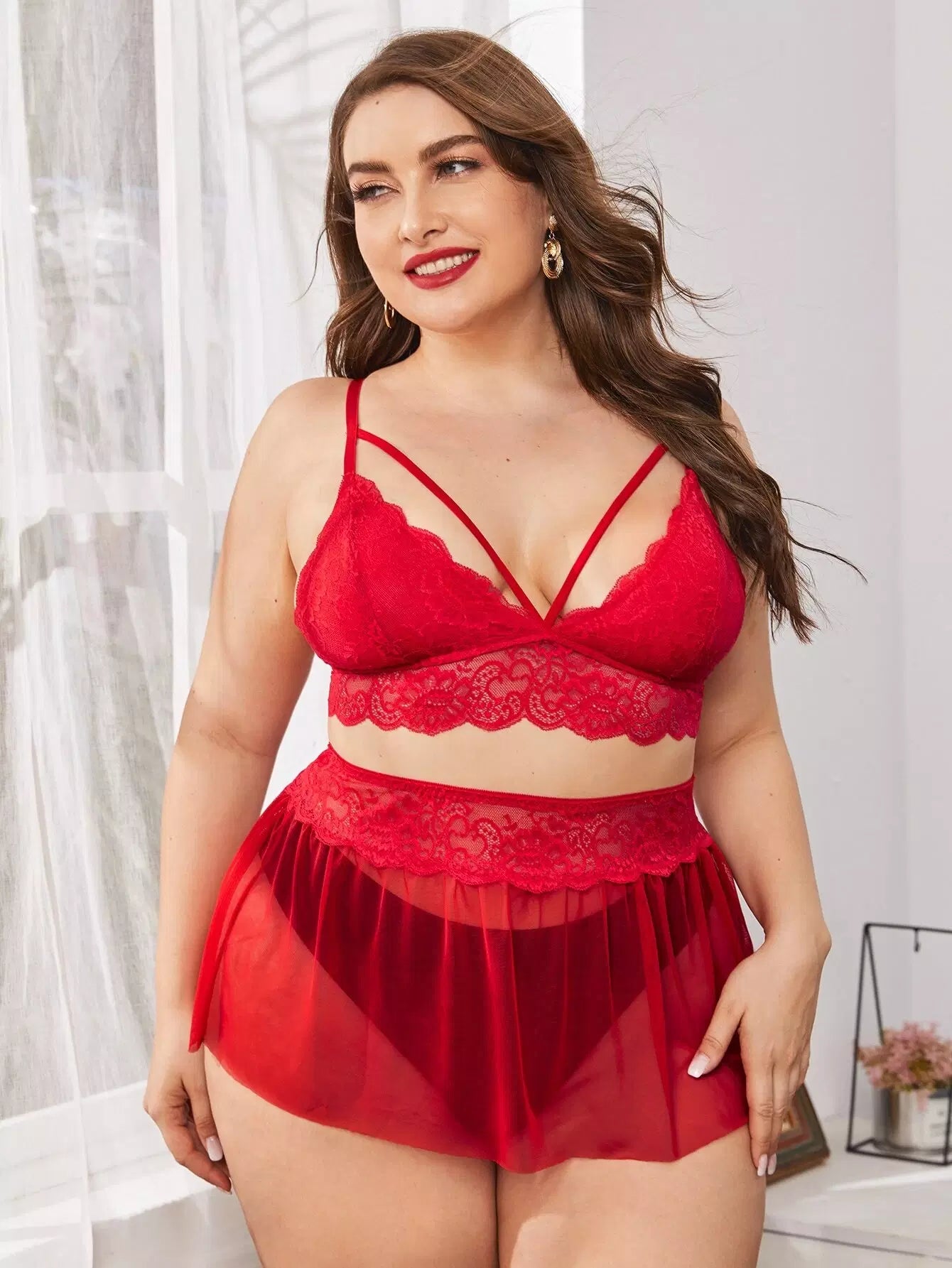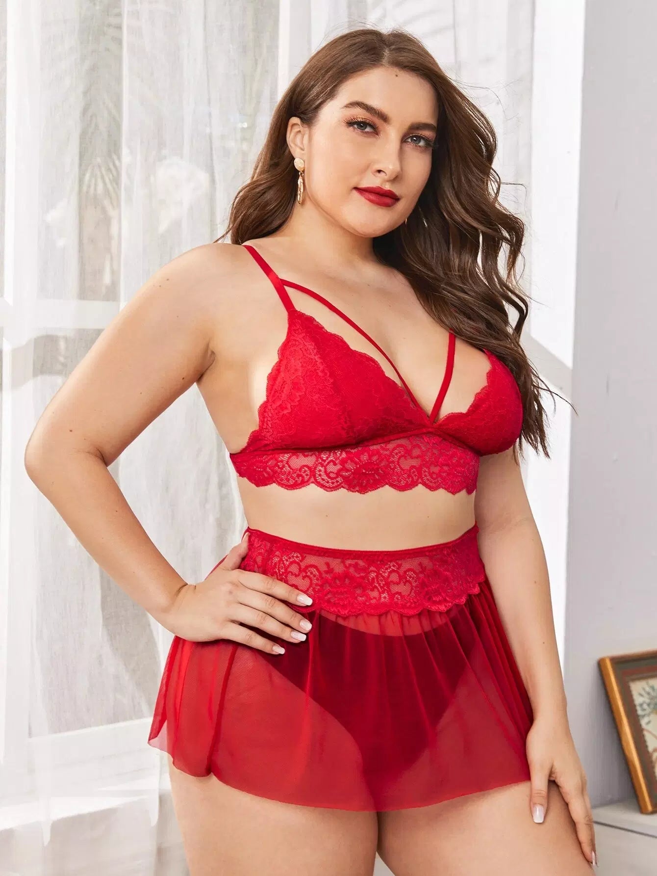 طقم ملابس داخلية من الدانتيل الشبكي بلون مغاير بلون مغاير 3 عبوات