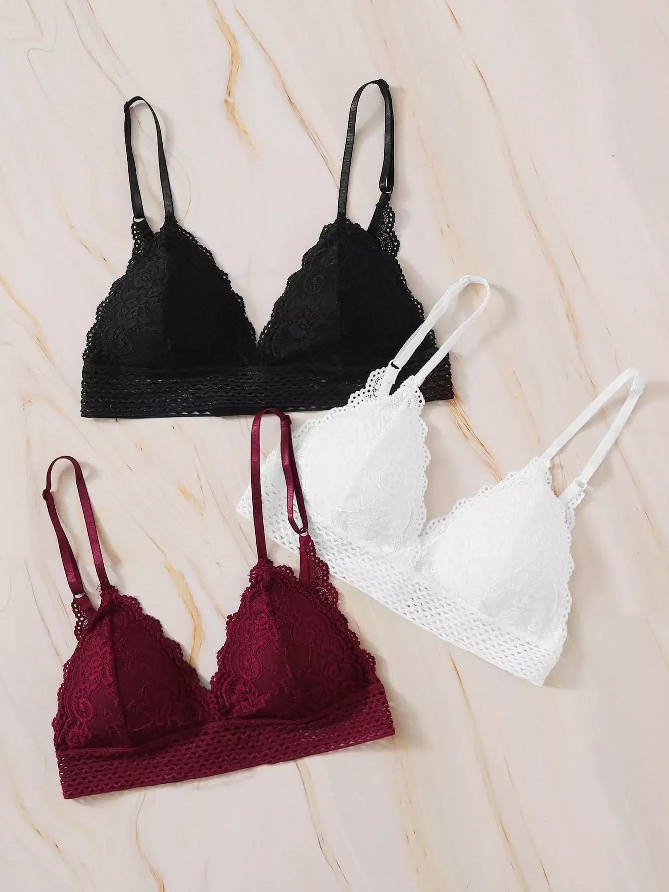 طقم حمالات صدرية من الدانتيل المخرم 3 عبوات بلس بلس