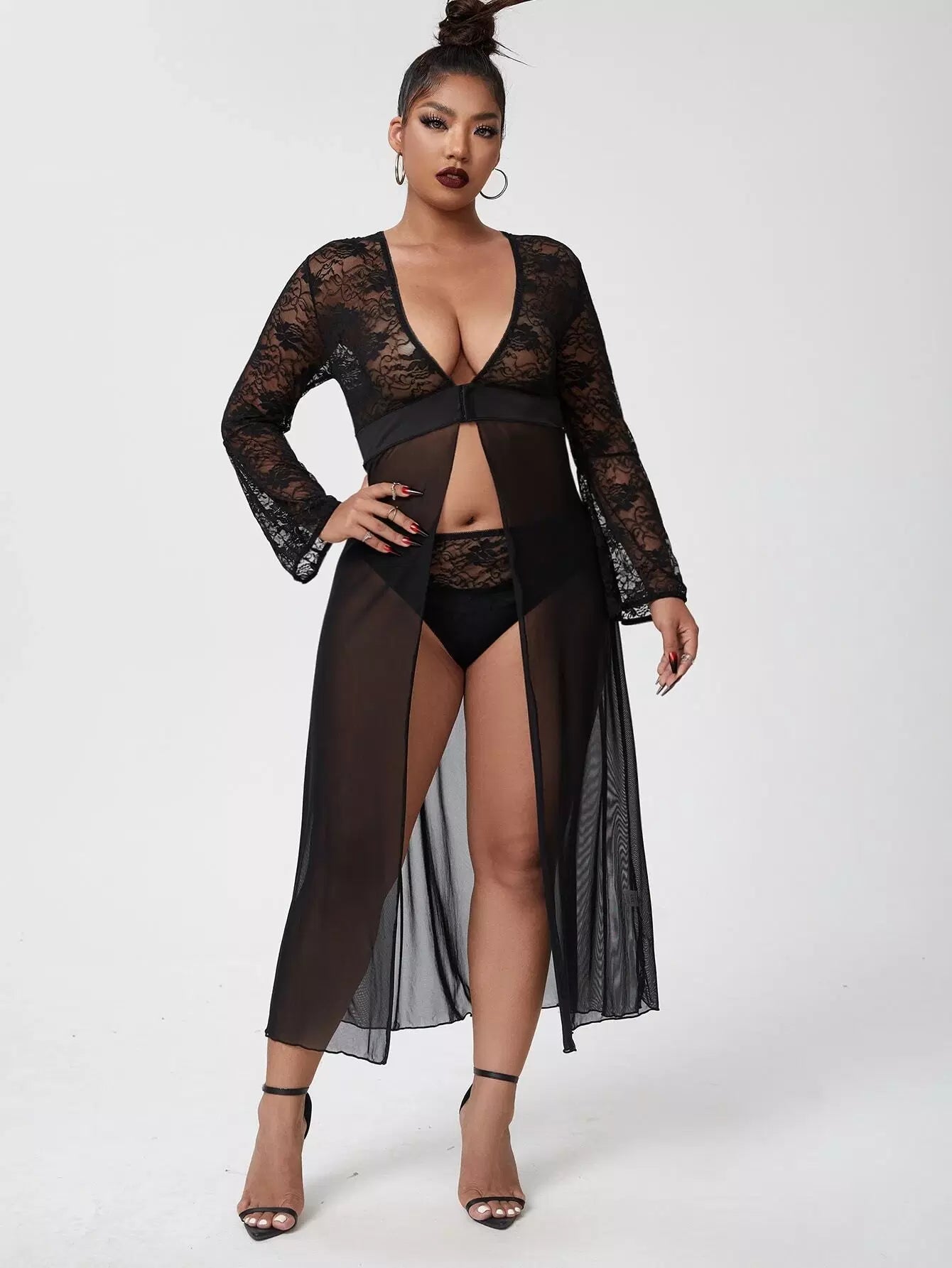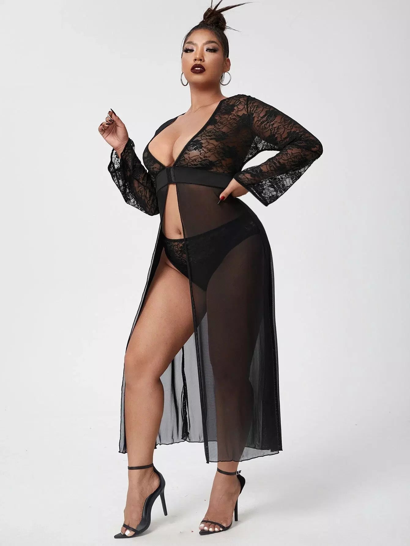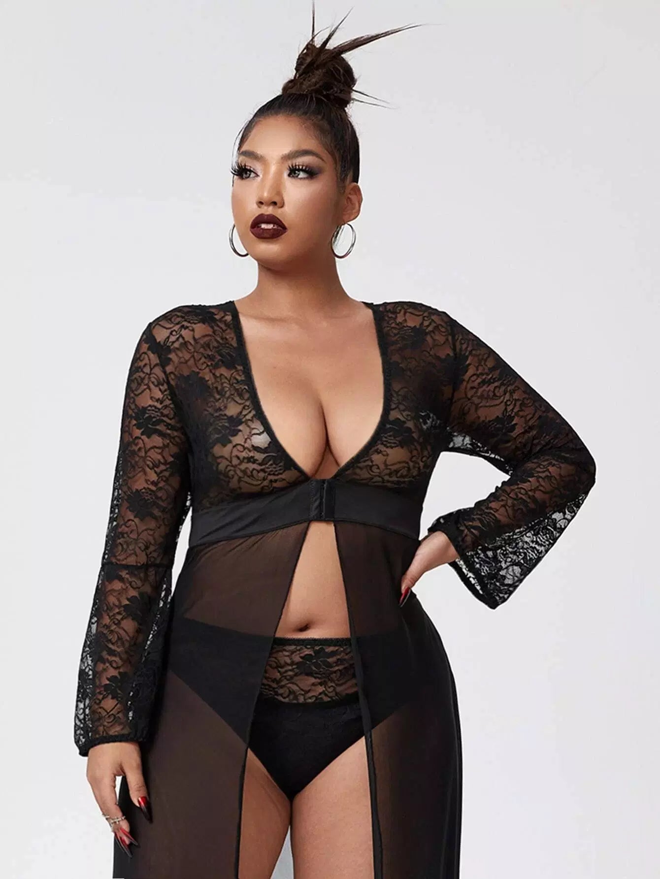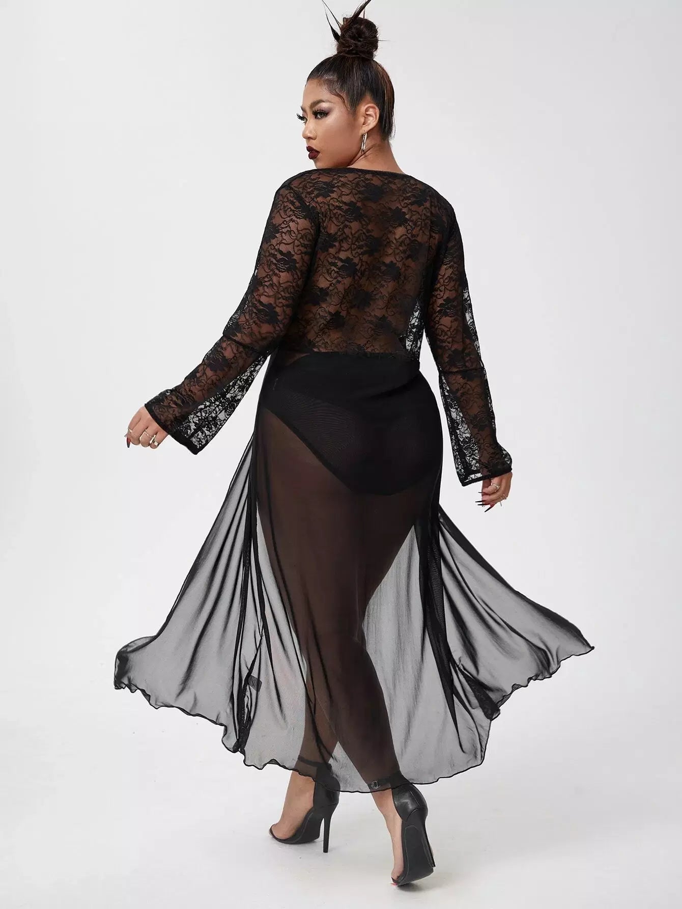نحيف - مقاس كبير فستان شبكي من الدانتيل المتباين مع اللباس الداخلي