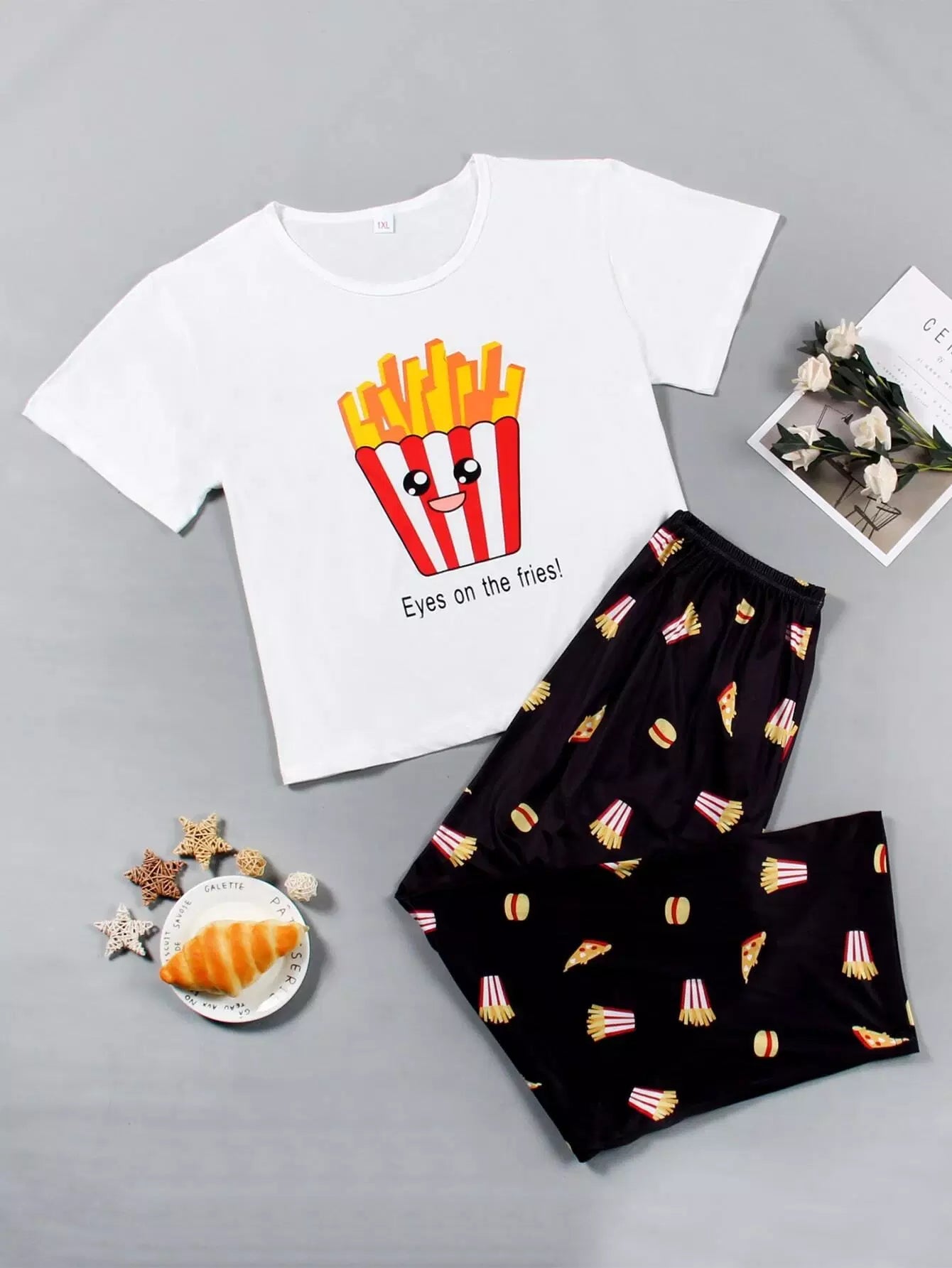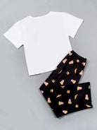 طقم بيجامة برسومات كرتونية وشعار زائد