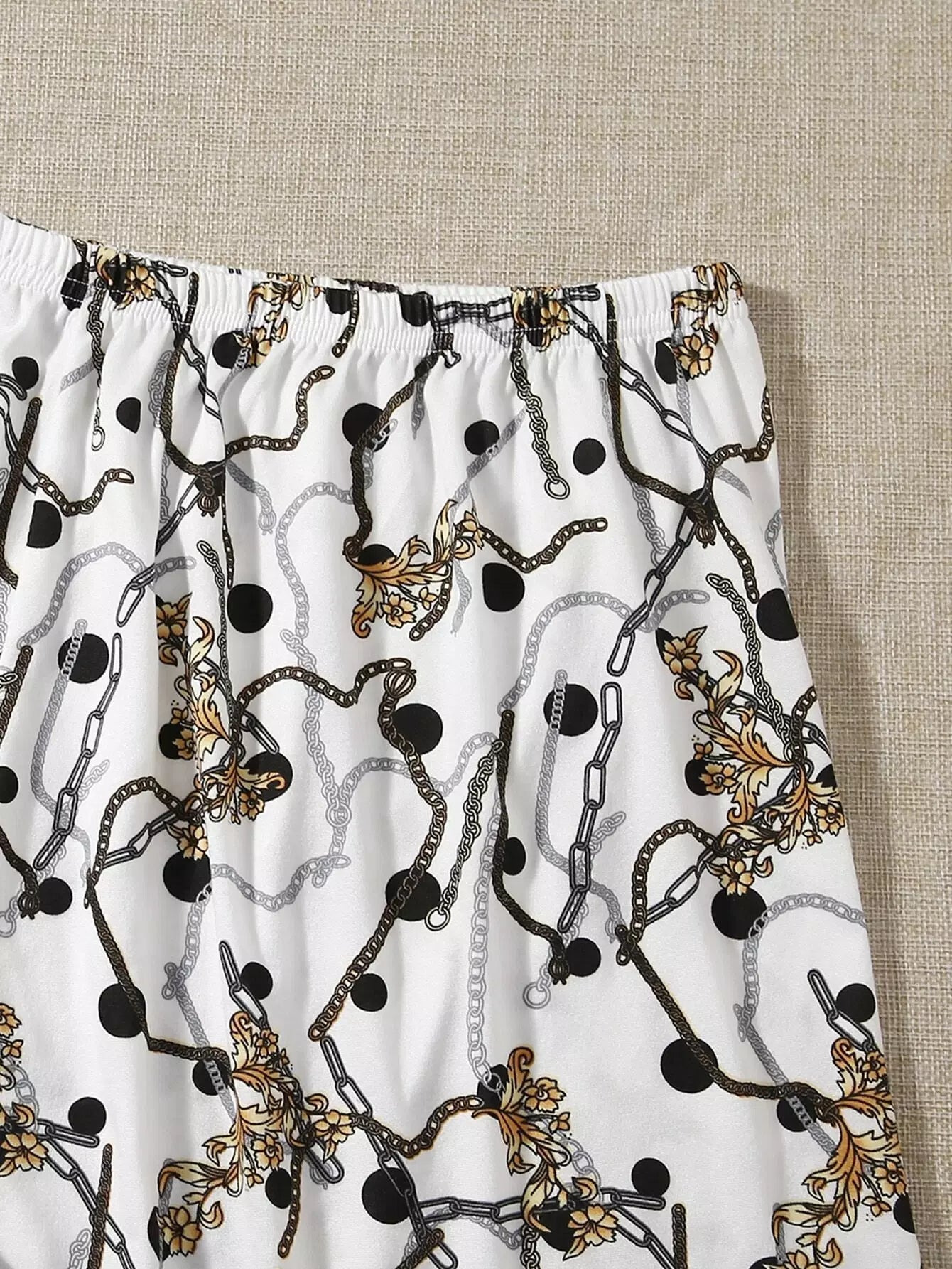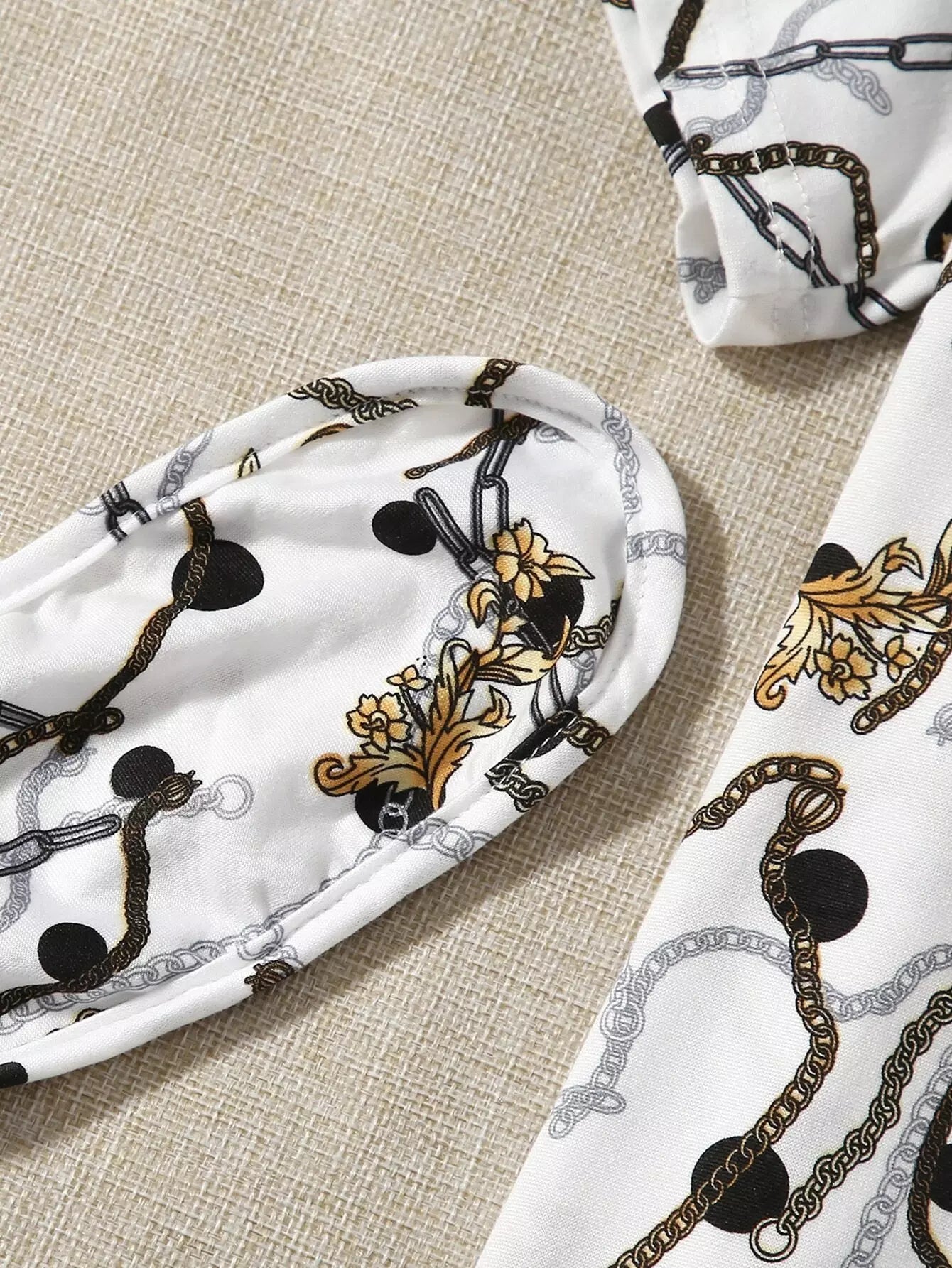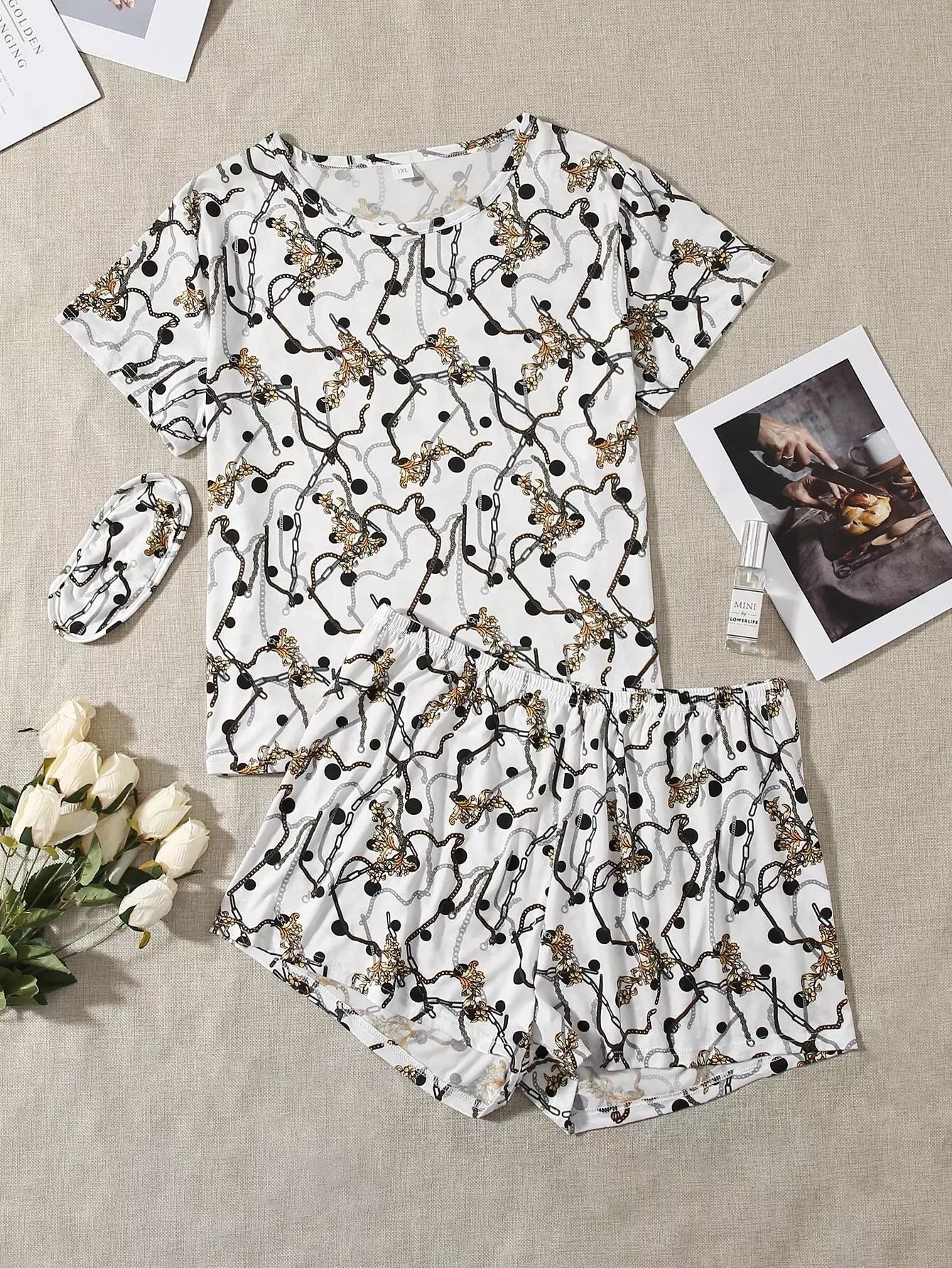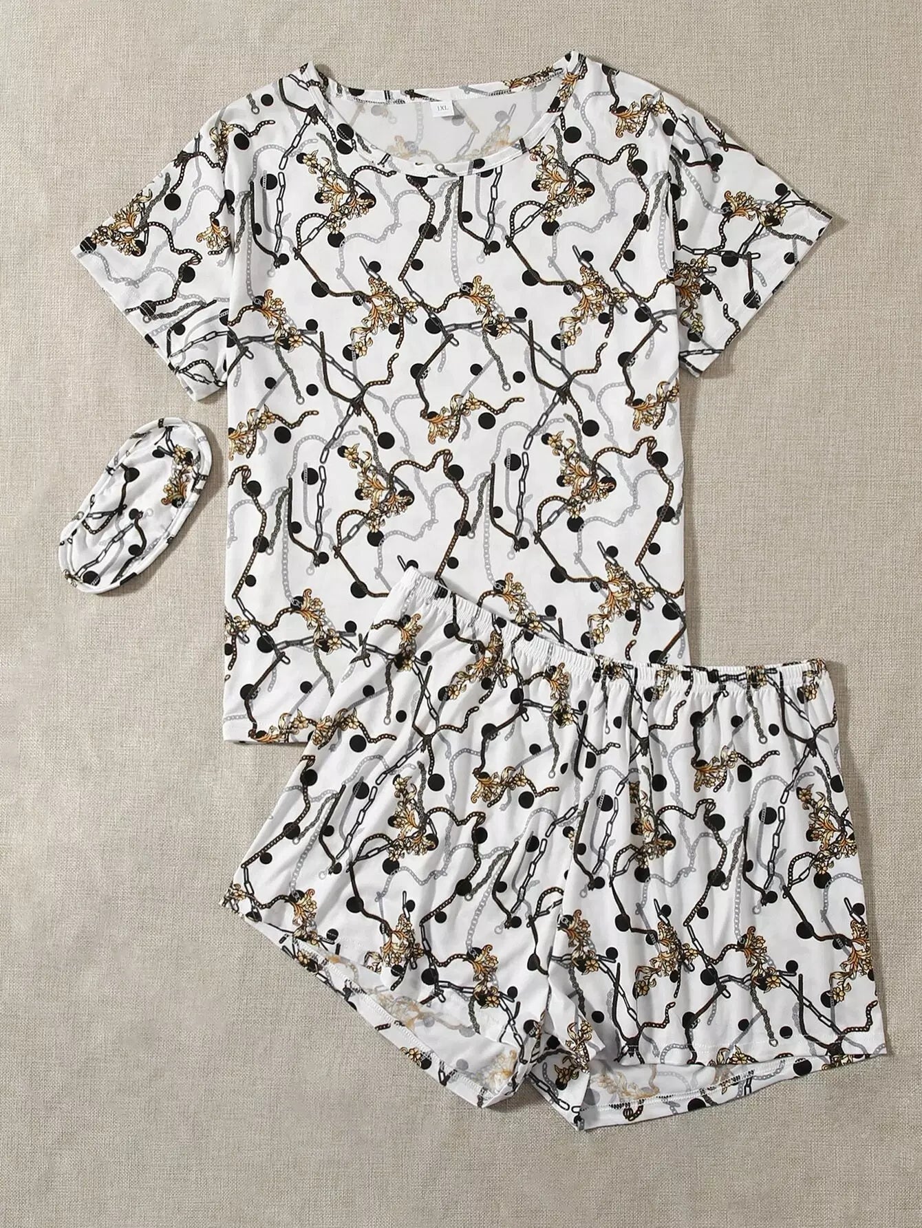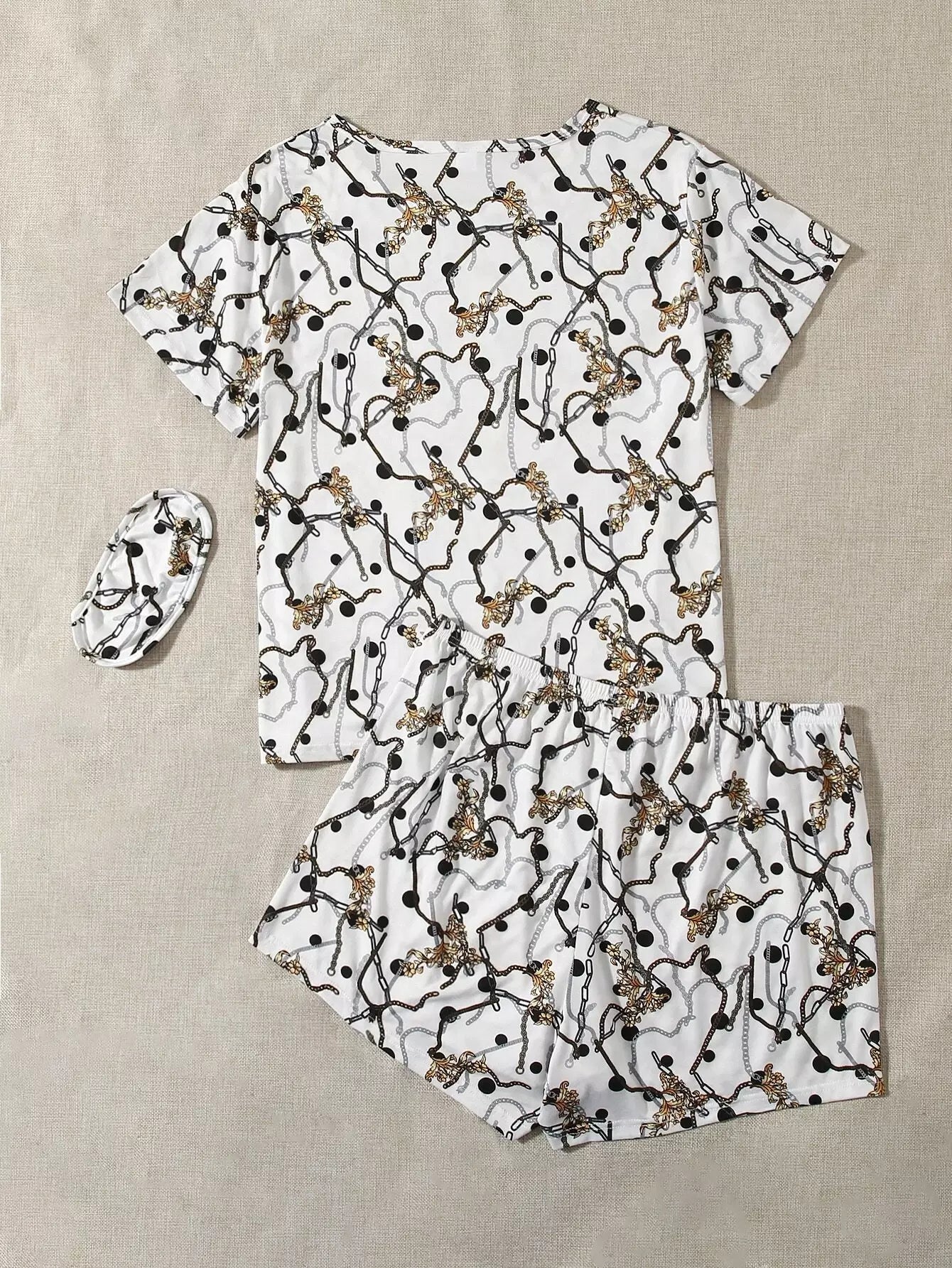 طقم بيجامة بطبعة سلسلة زائد مع غطاء للعينين