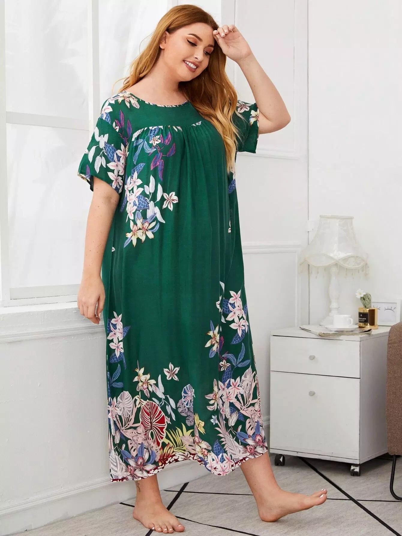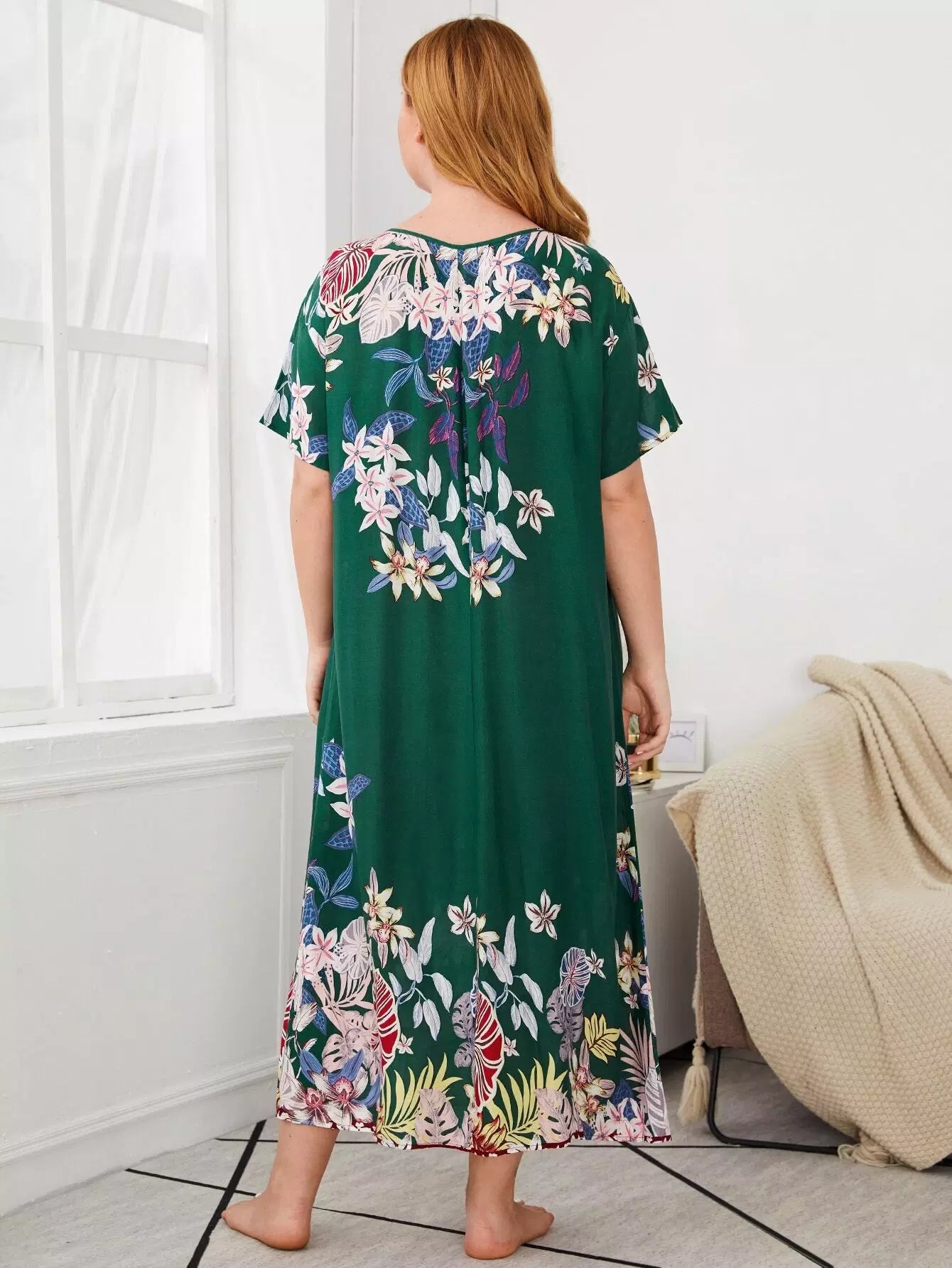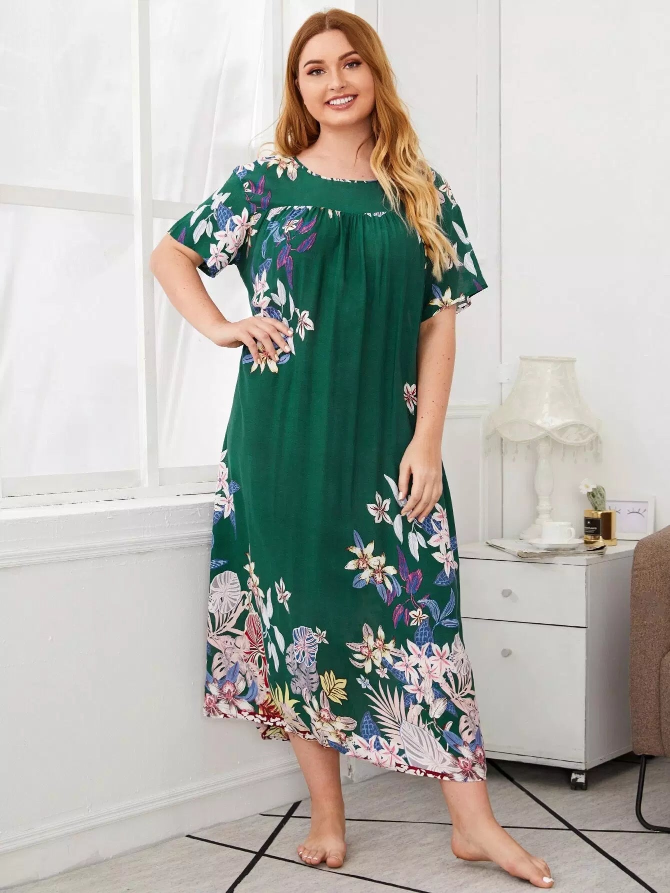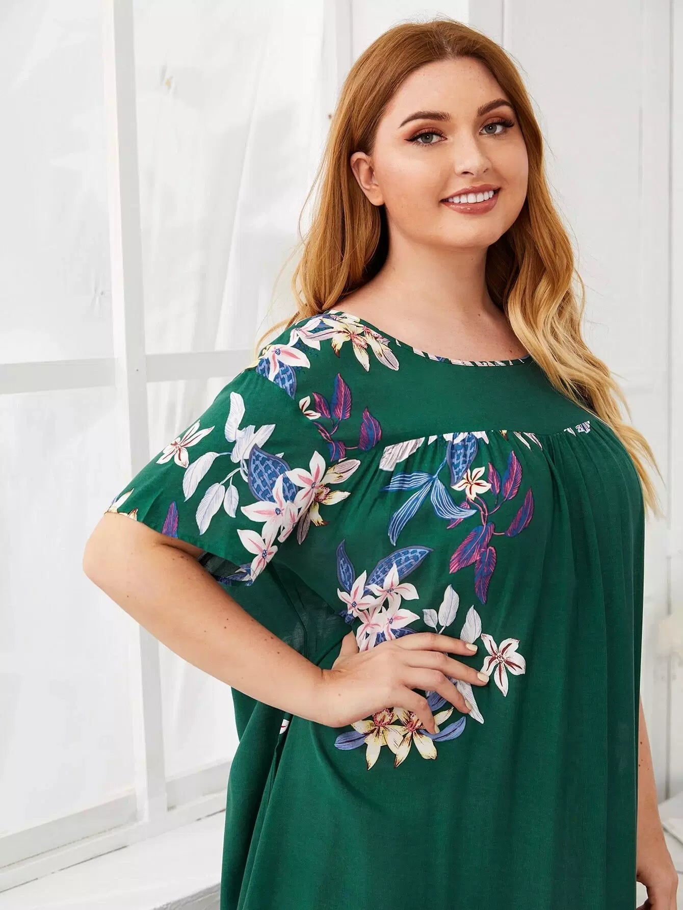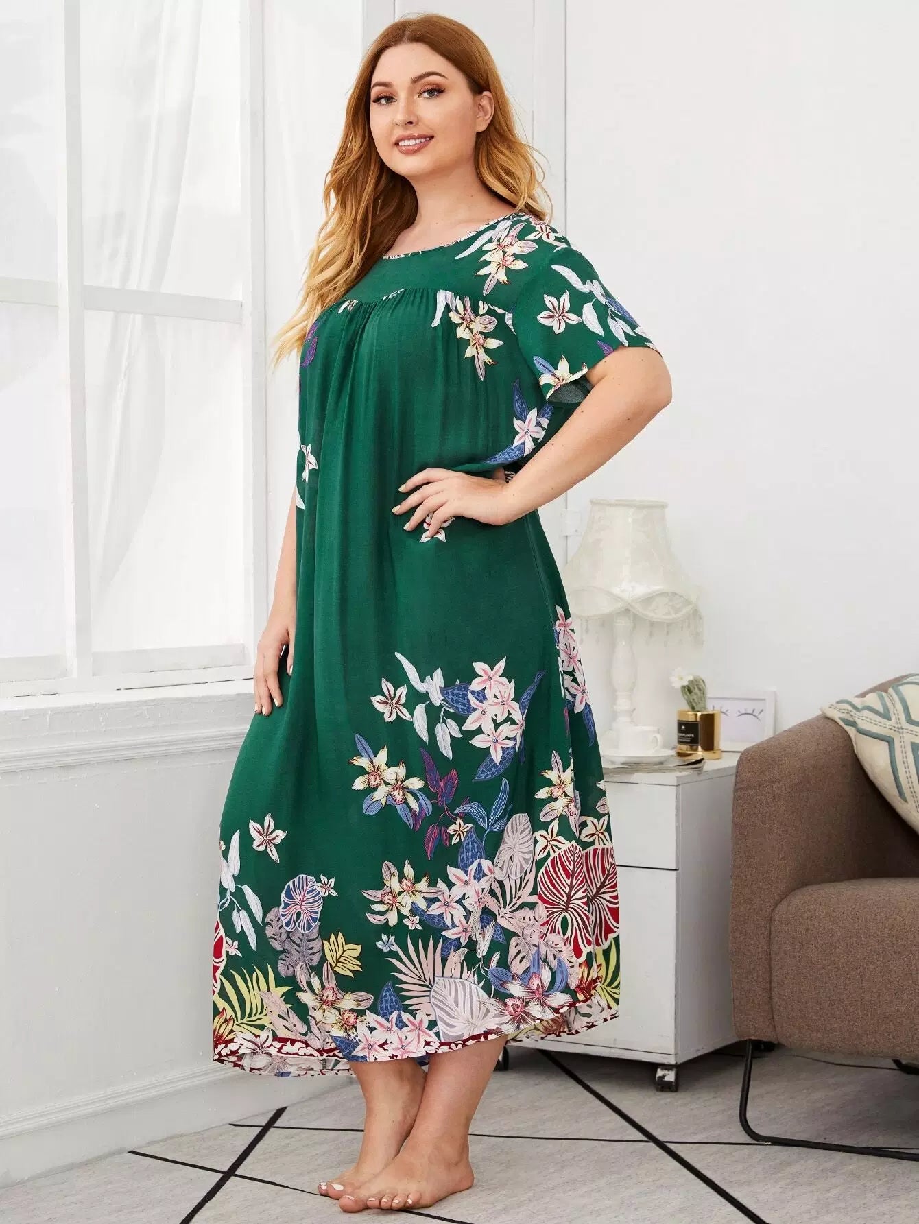 فستان نوم بطبعة زهور منسدل الأكتاف زائد