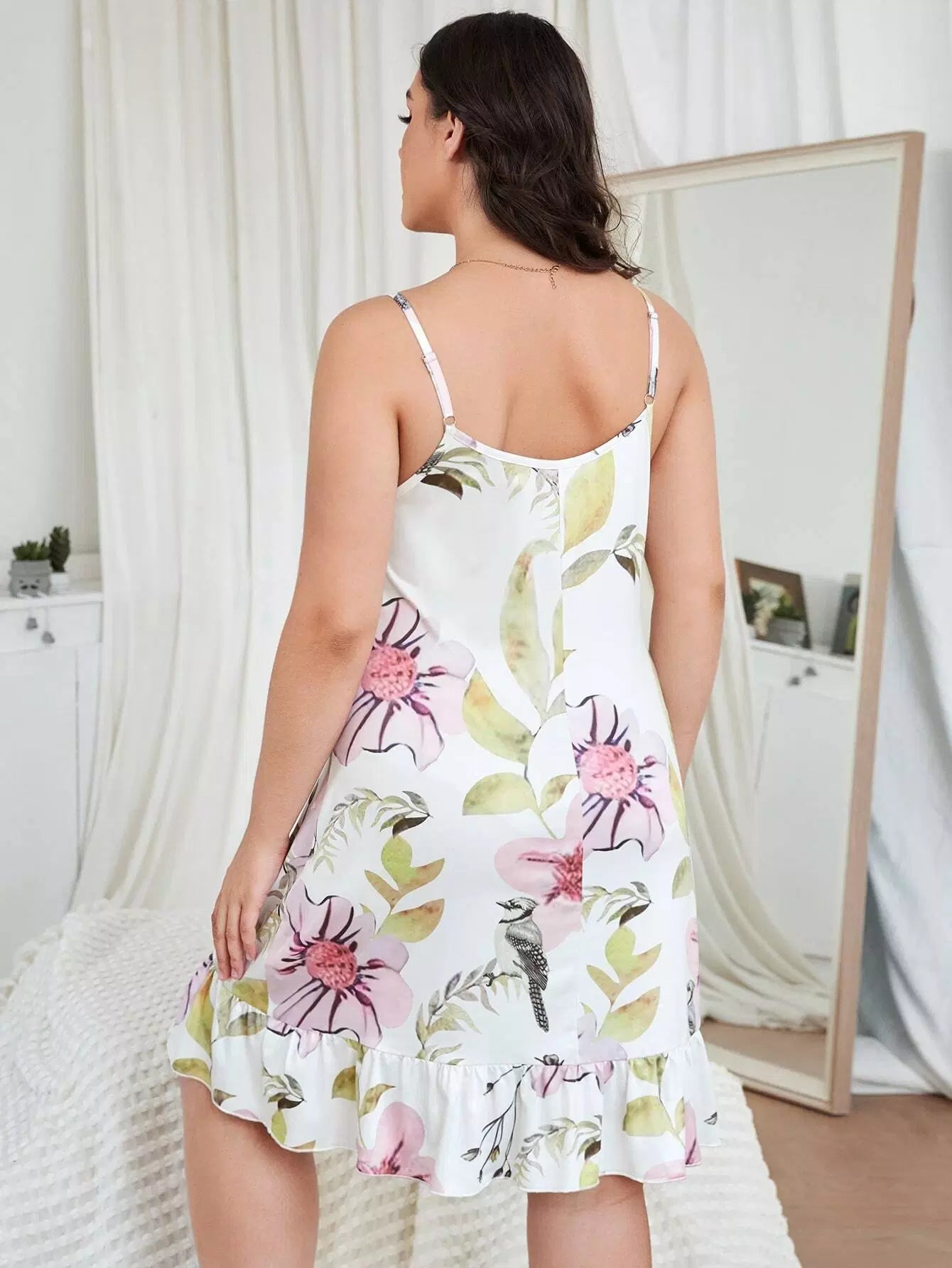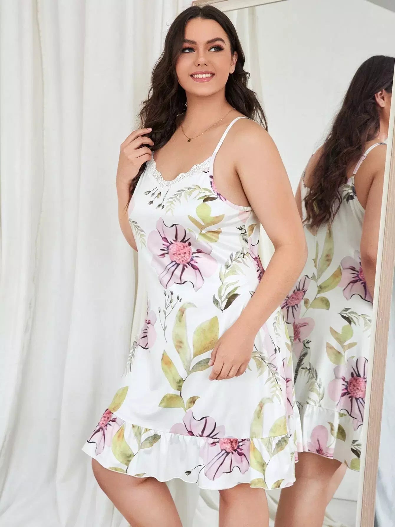 فستان سهرة كامي دانتيل بلون أزهار بلون مغاير زائد