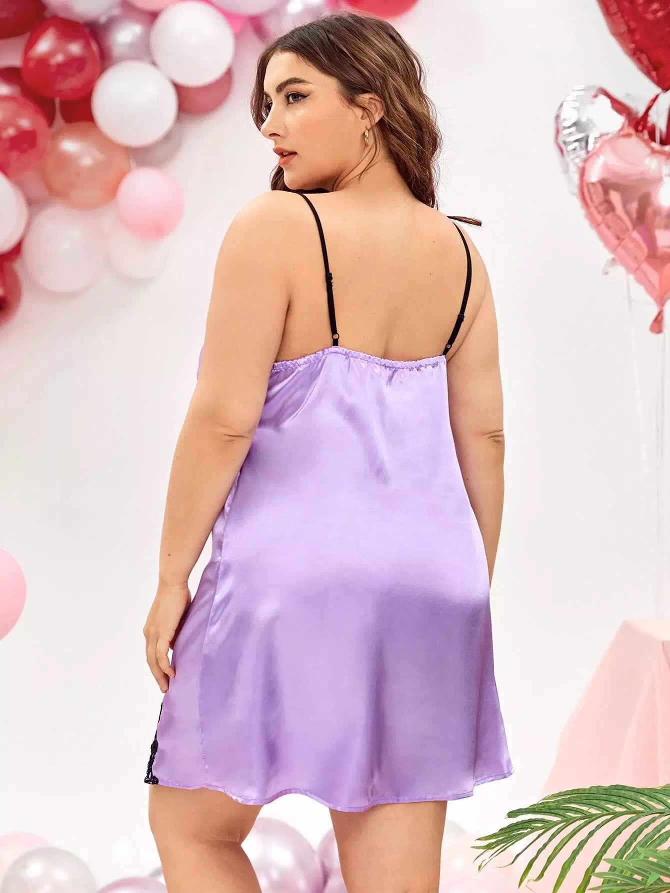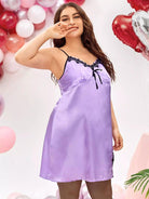 فستان سليب ساتان بحافة منقسمة من الدانتيل