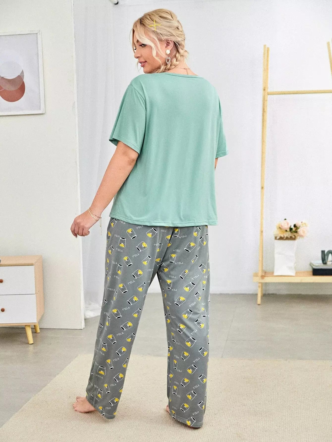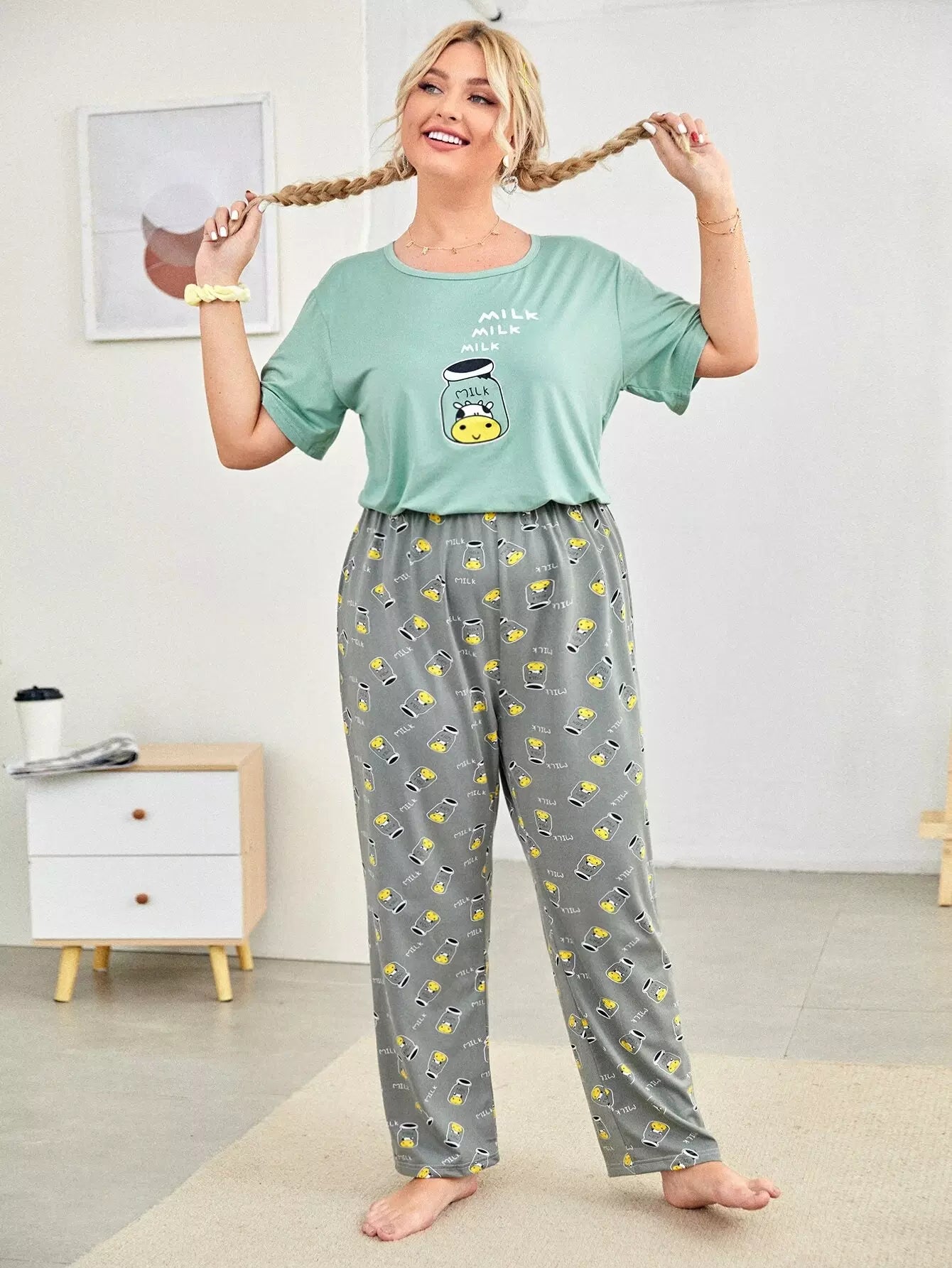 طقم بيجامة برسومات ورسومات كرتونية ورسومات زائد