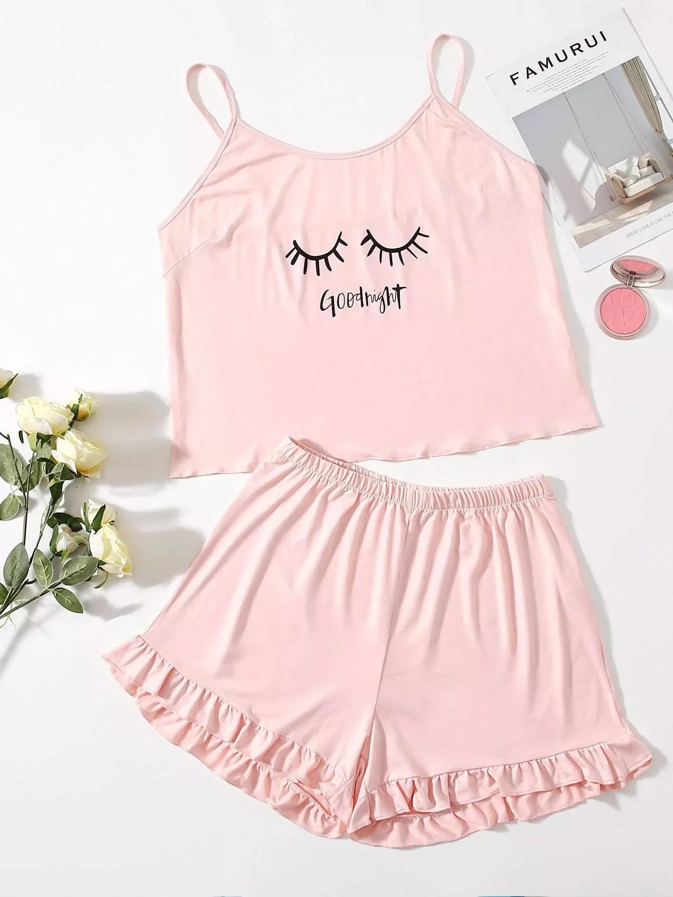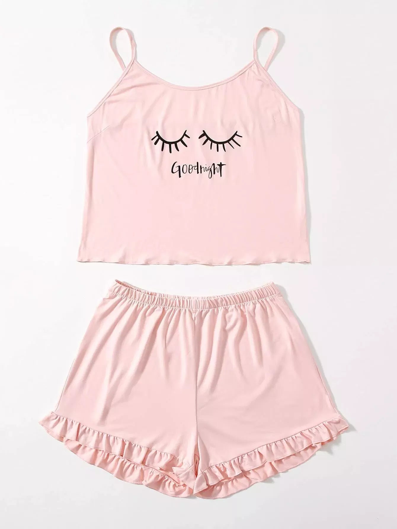 طقم بيجامة بيجامة جرافيك بلس برسومات حروف زائد