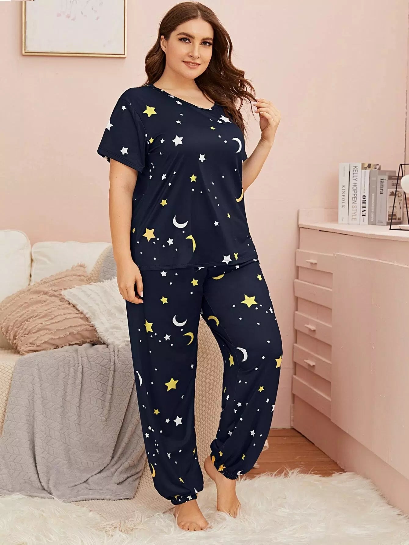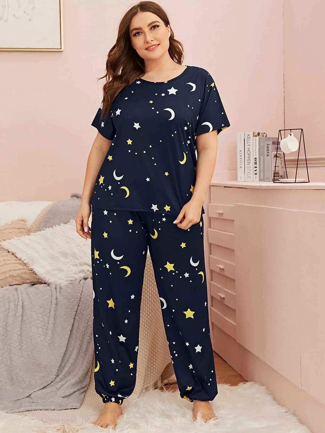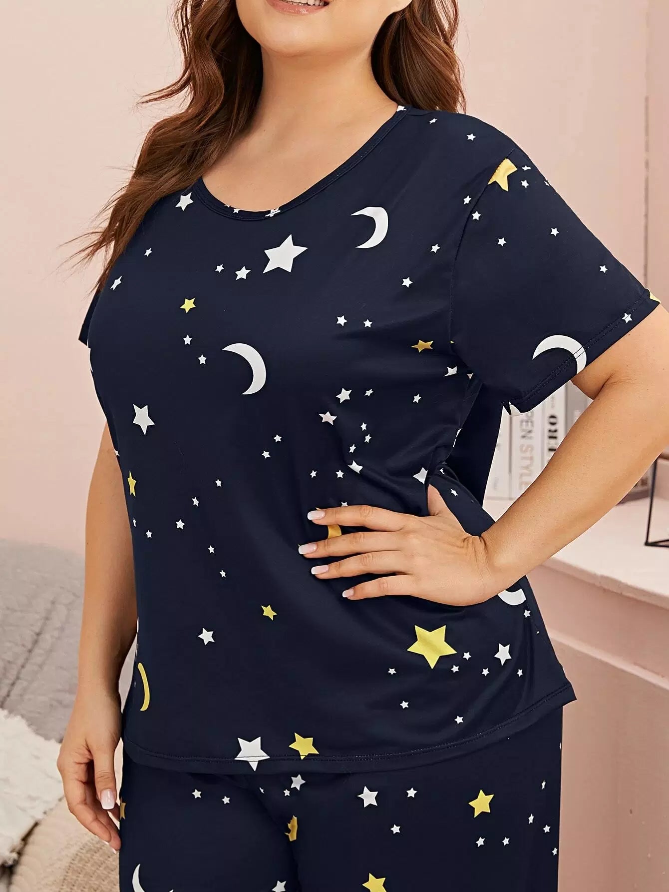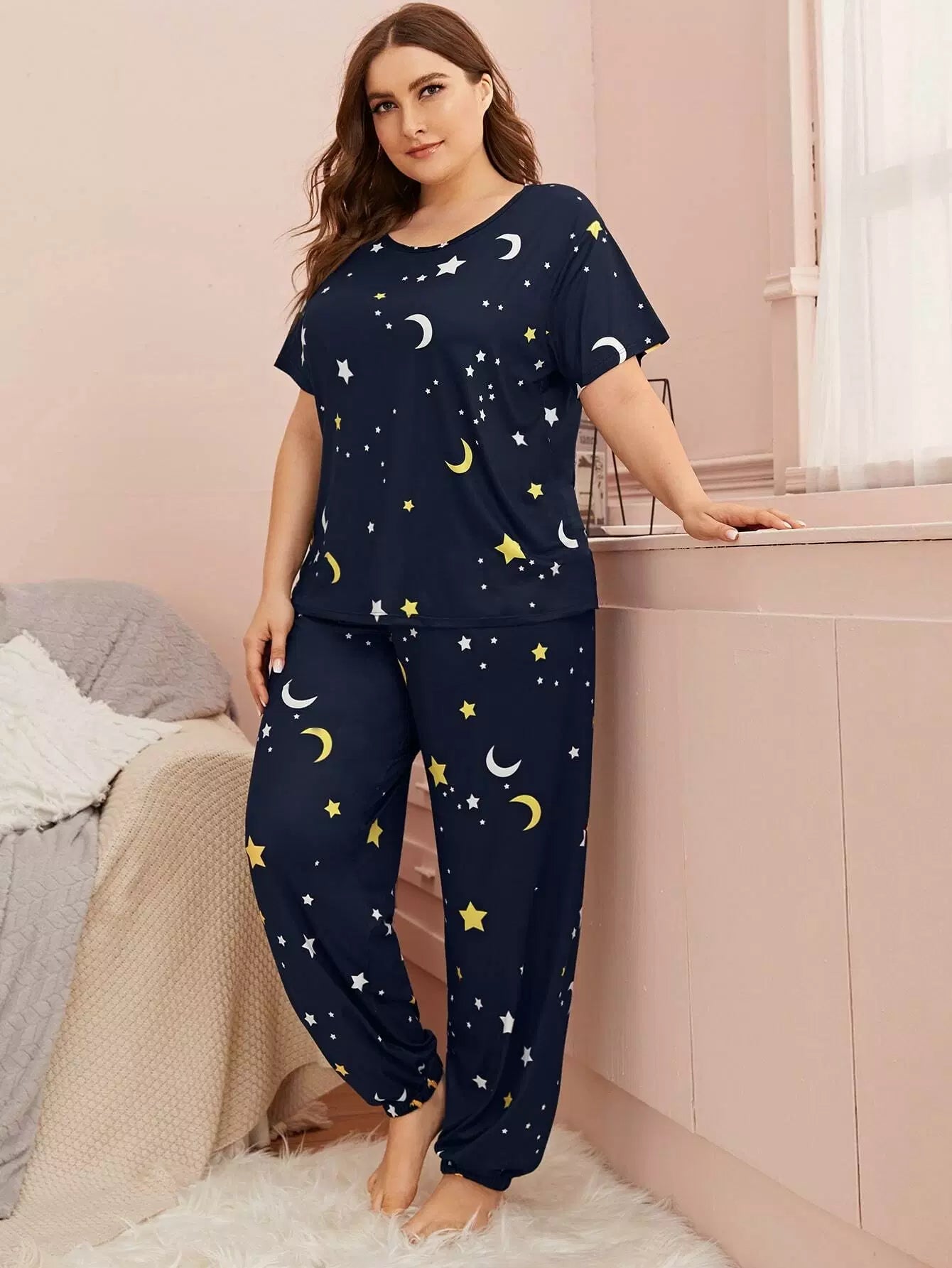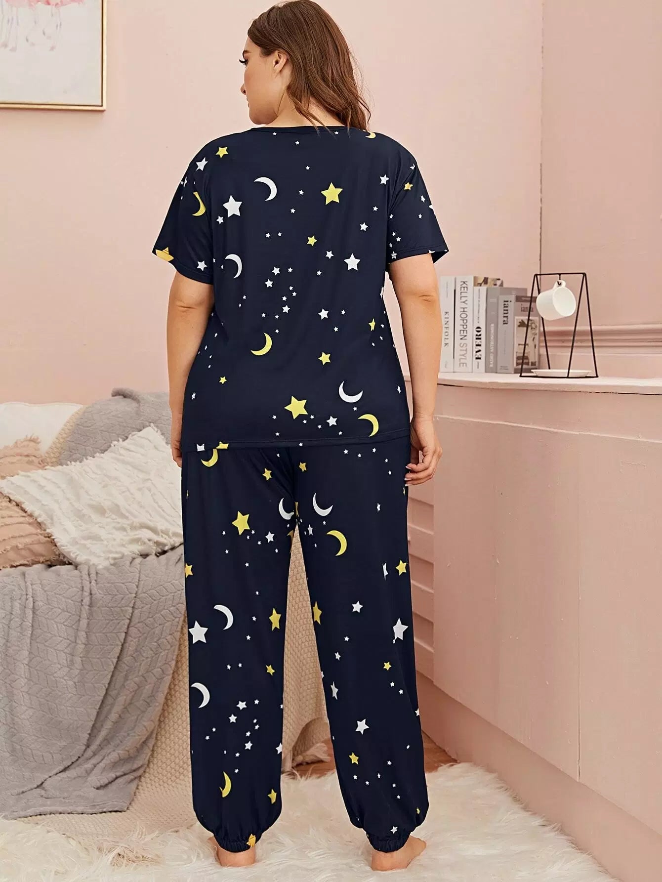 طقم بيجامة بطبعة قمر ونجمة بلس