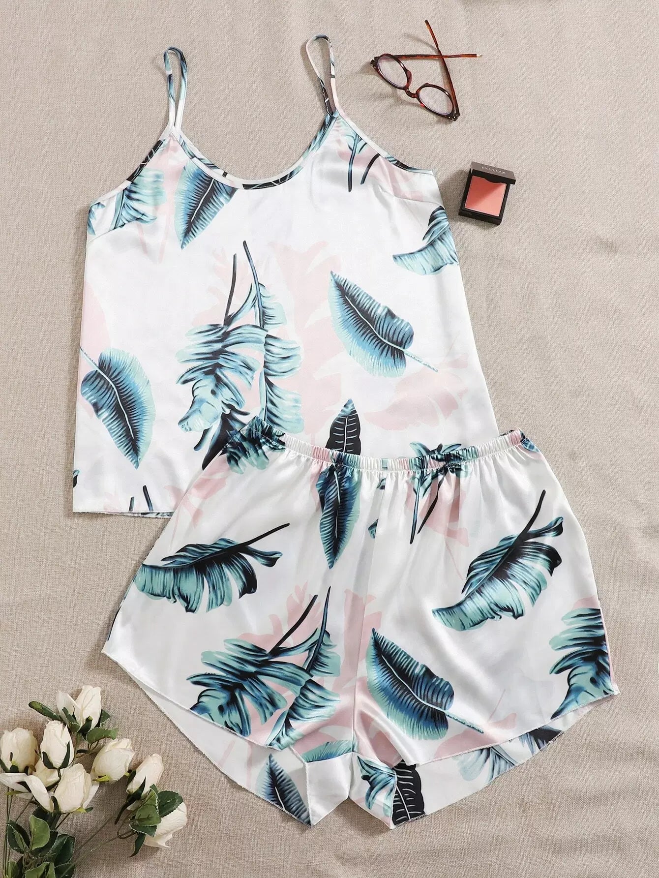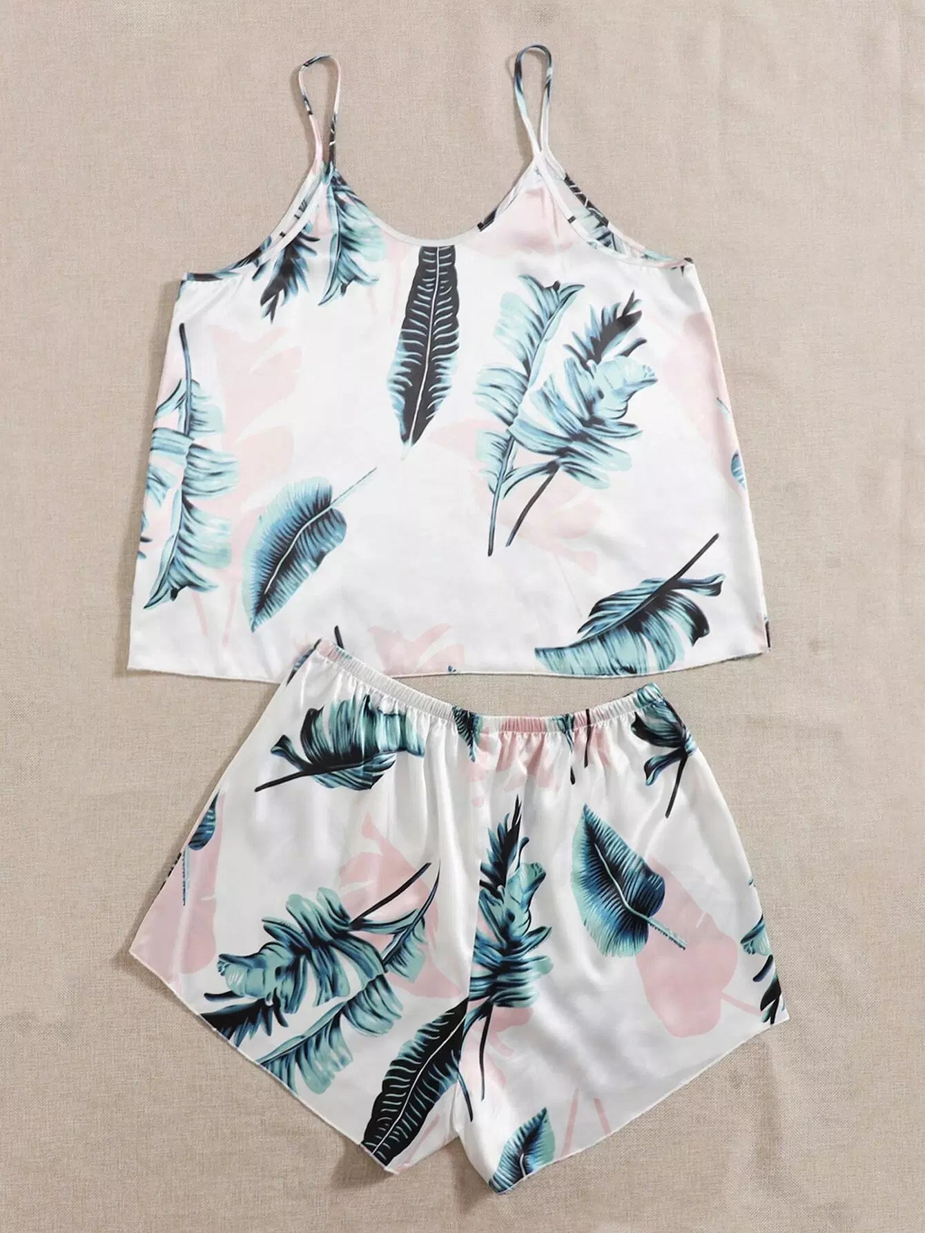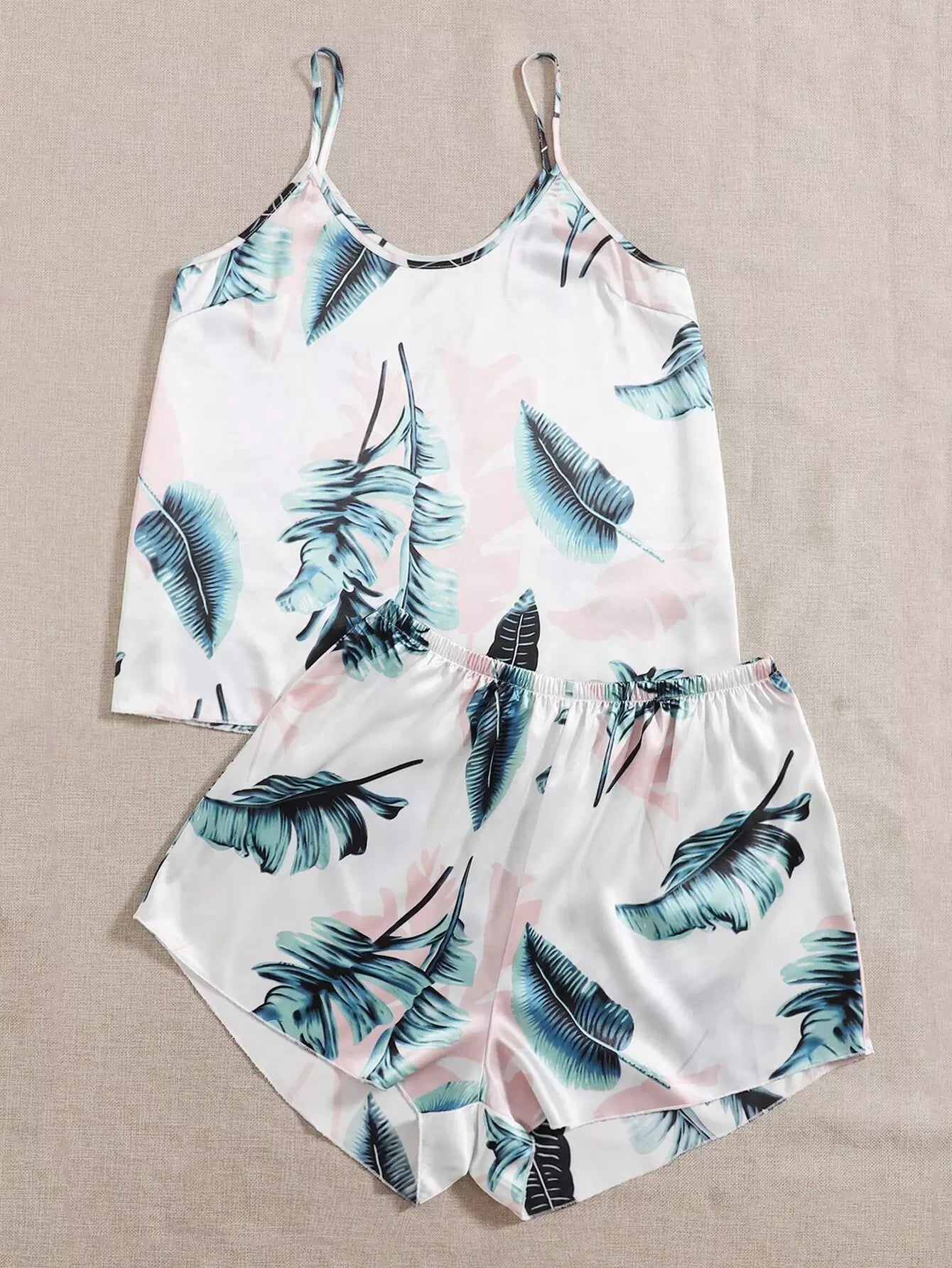 طقم بيجامة بيجامة بنقشة ساتان استوائية بلس