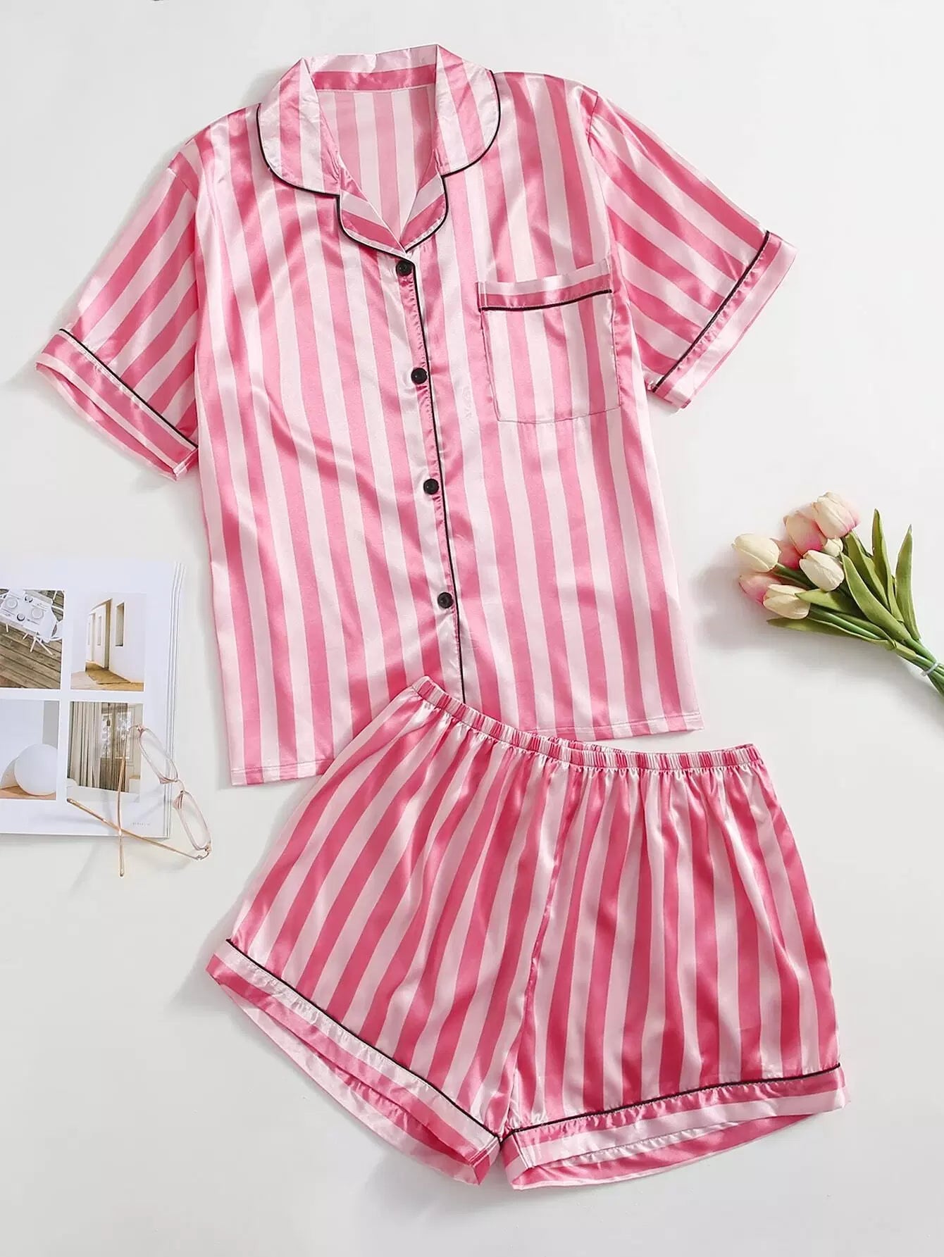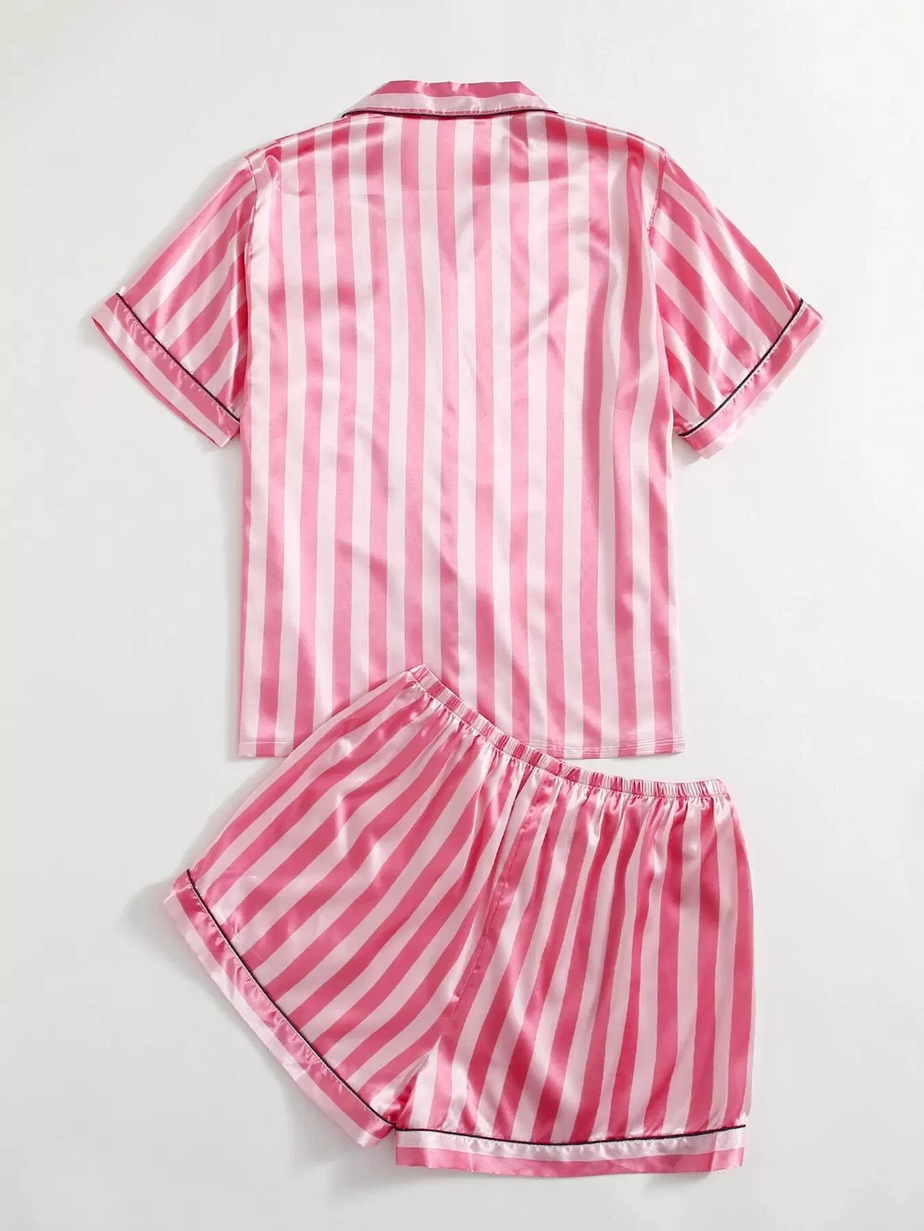 طقم بيجامة مخطط بلون مغاير بلون مغاير زائد