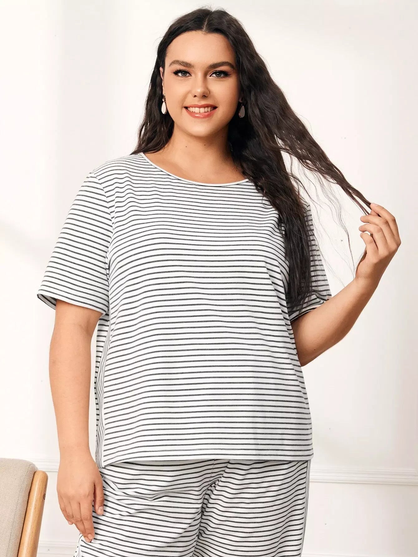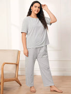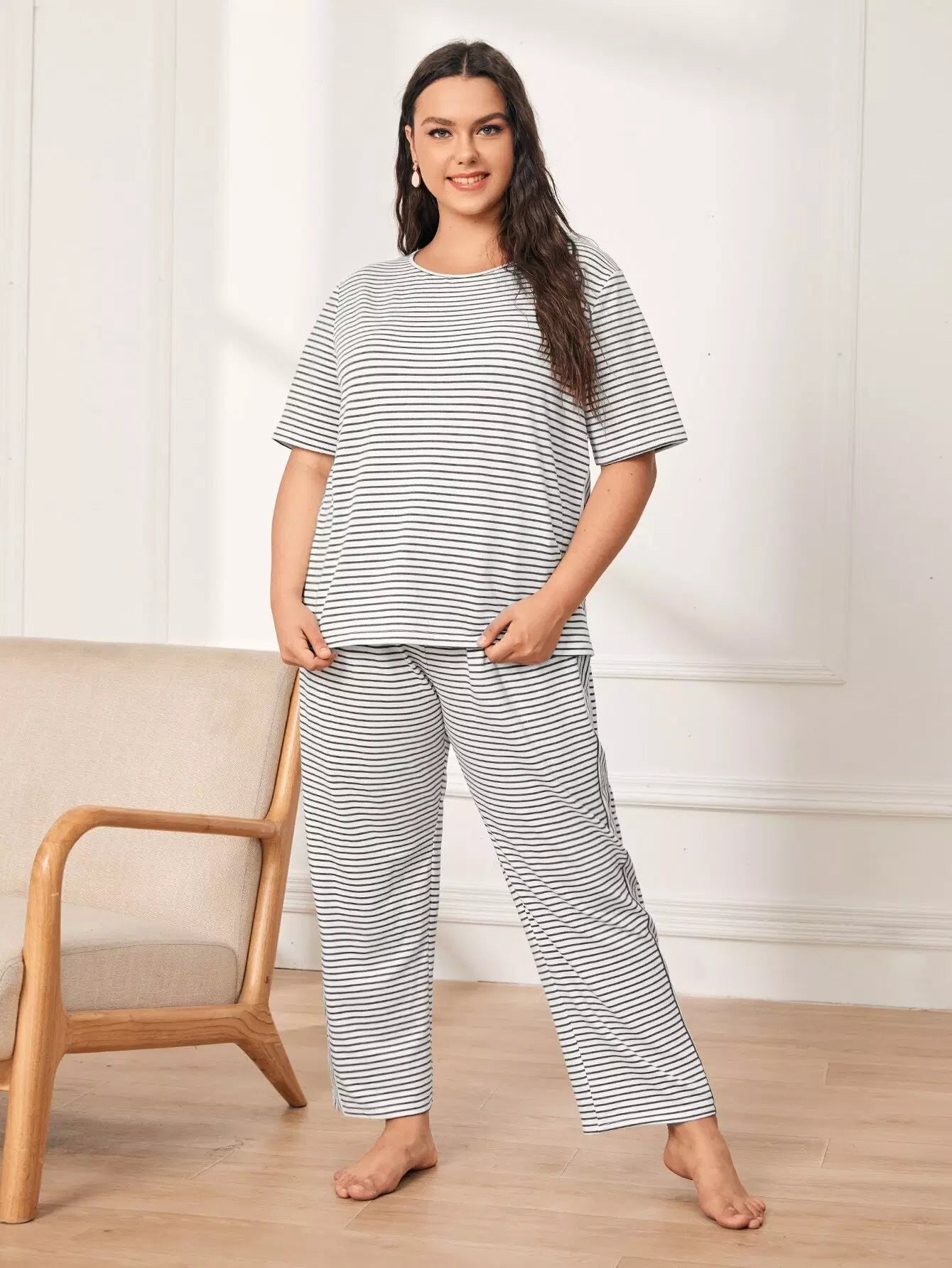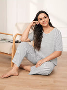 طقم تي شيرت وبنطال بيجامة مخططين زائد