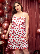 Plus All Over Heart Print Ruffle Hem Satin Cami Night Dress