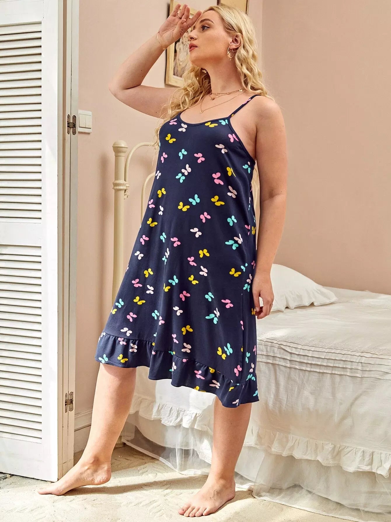 فستان سهرة كامي بطبعة كشكش مطبوع بالكامل مع غطاء للعينين