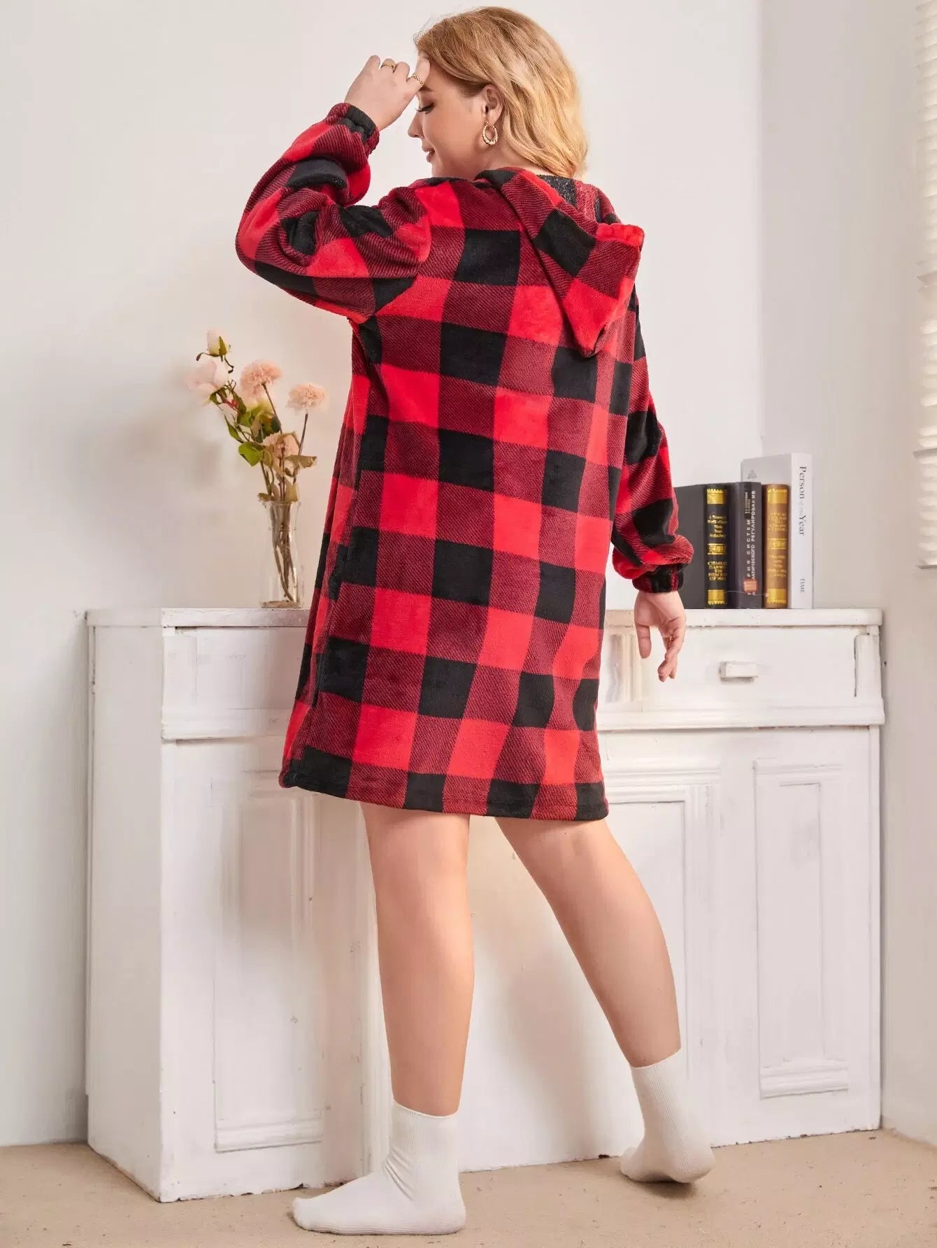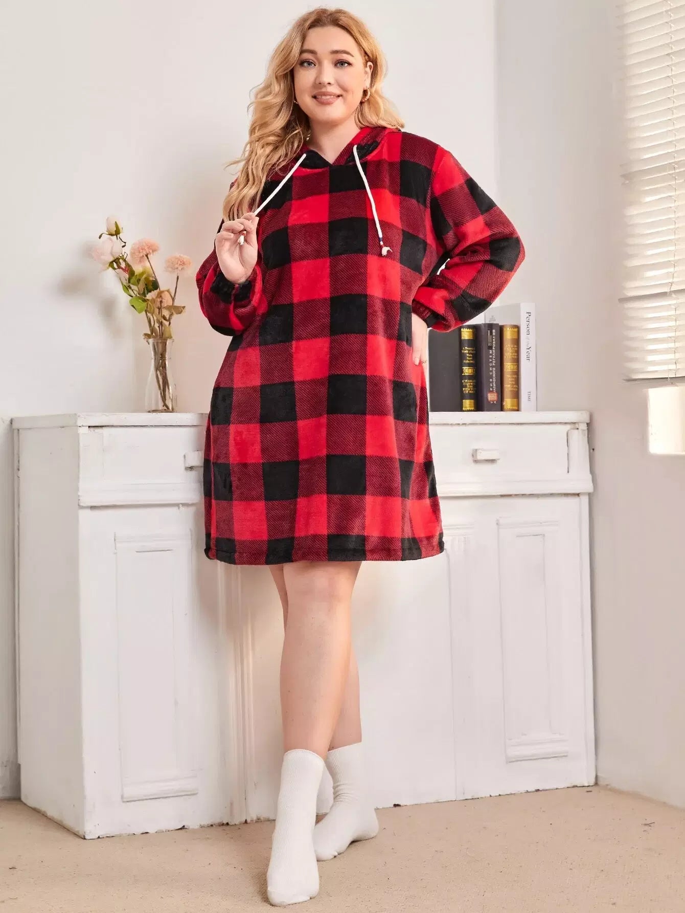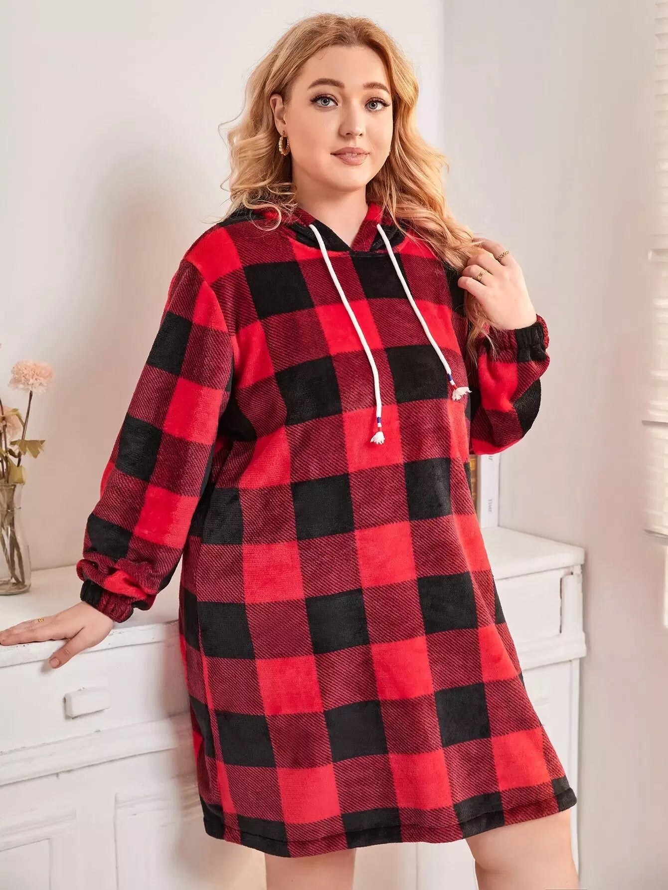 فستان نوم منقوش بأربطة منقوشة برباط رباط منقوش زائد