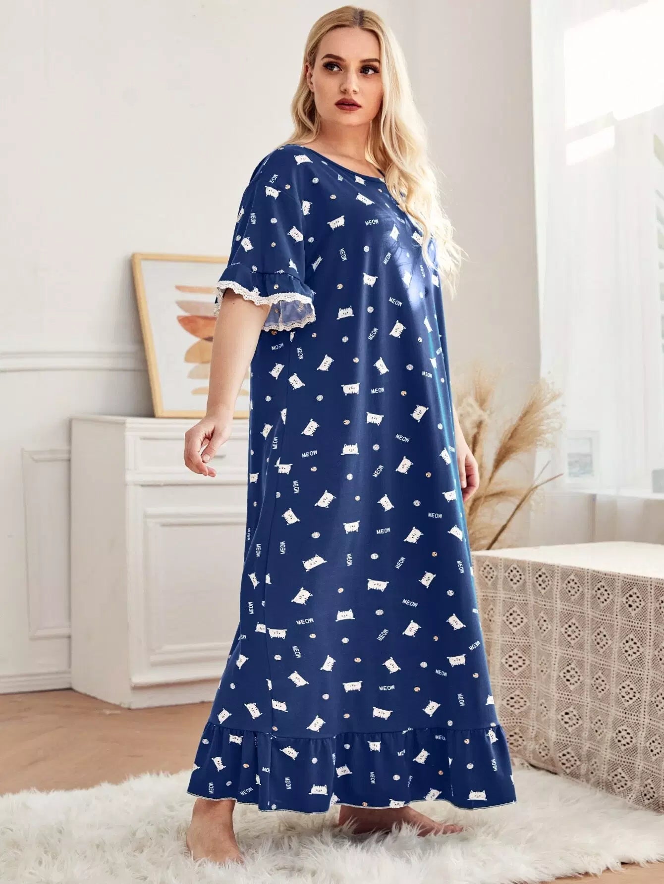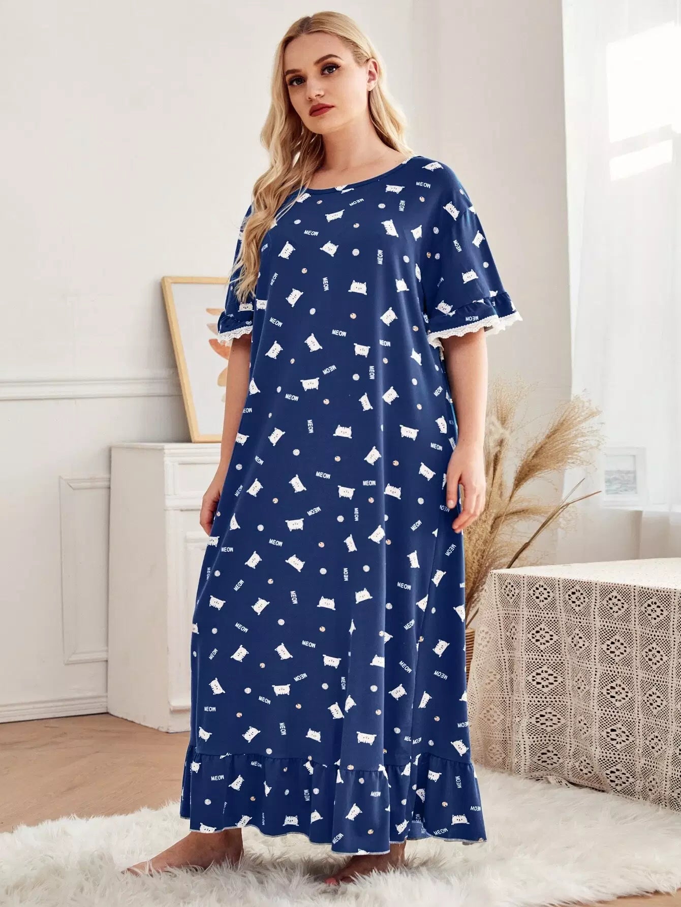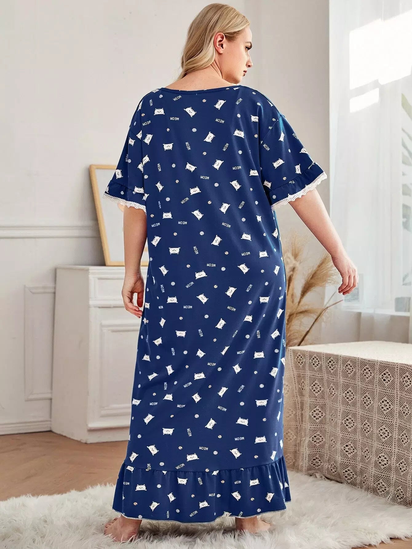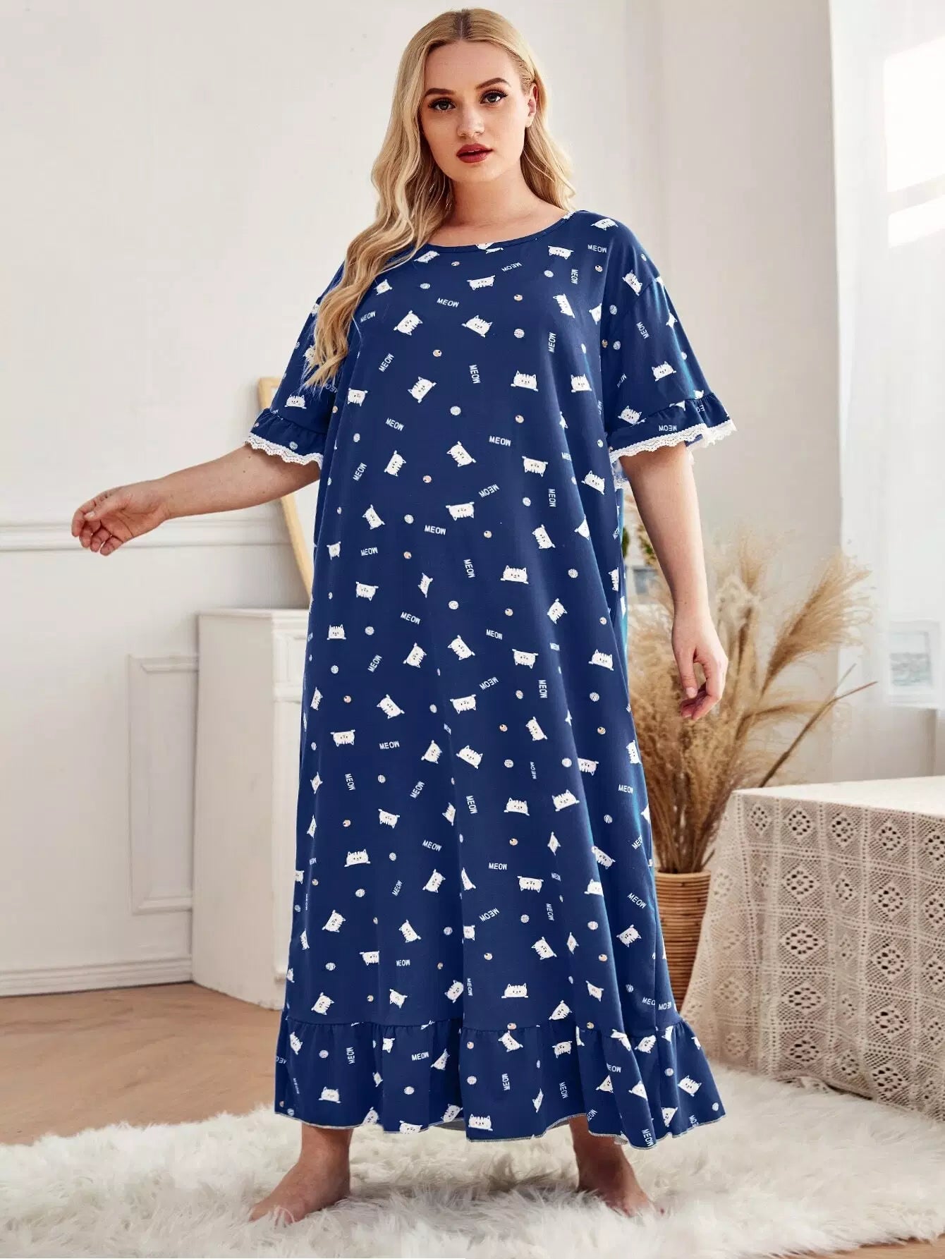 فستان نوم بحواف كشكش كرتوني مكشكش زائد