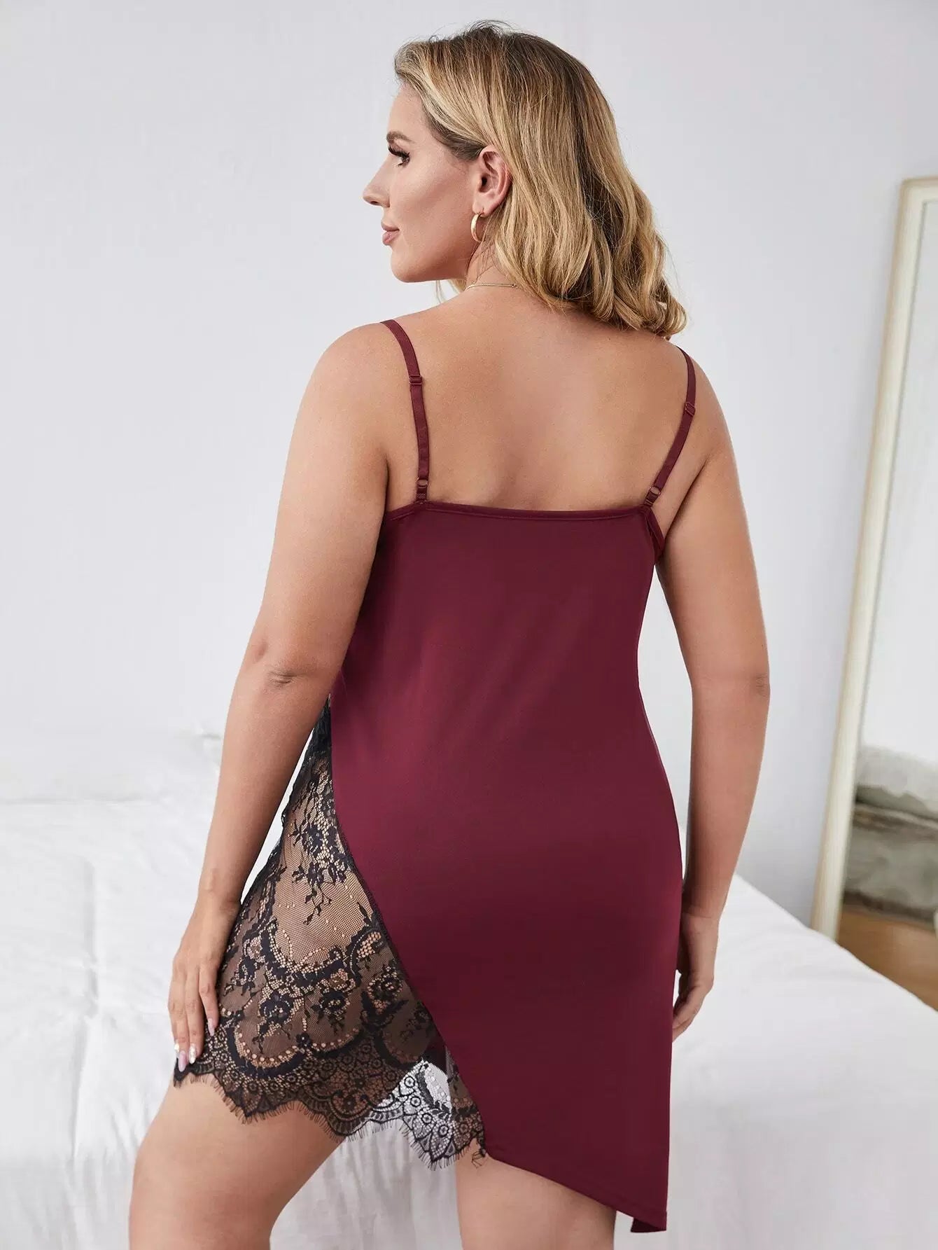 فستان سهرة كامي بحواف غير متناسقة من الدانتيل بلون مغاير