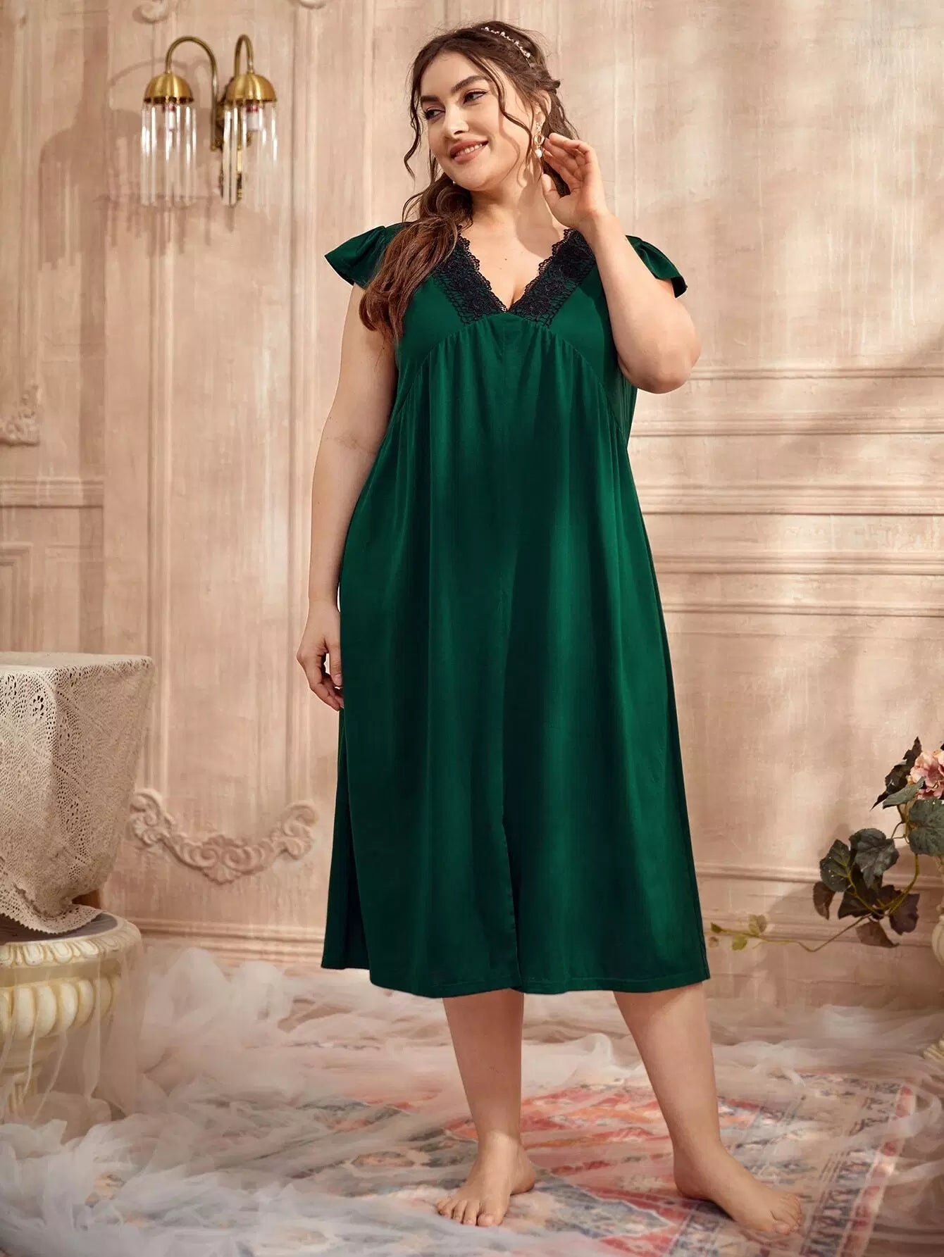 فستان نوم بأكمام دانتيل بلون مغاير بأكمام من الدانتيل