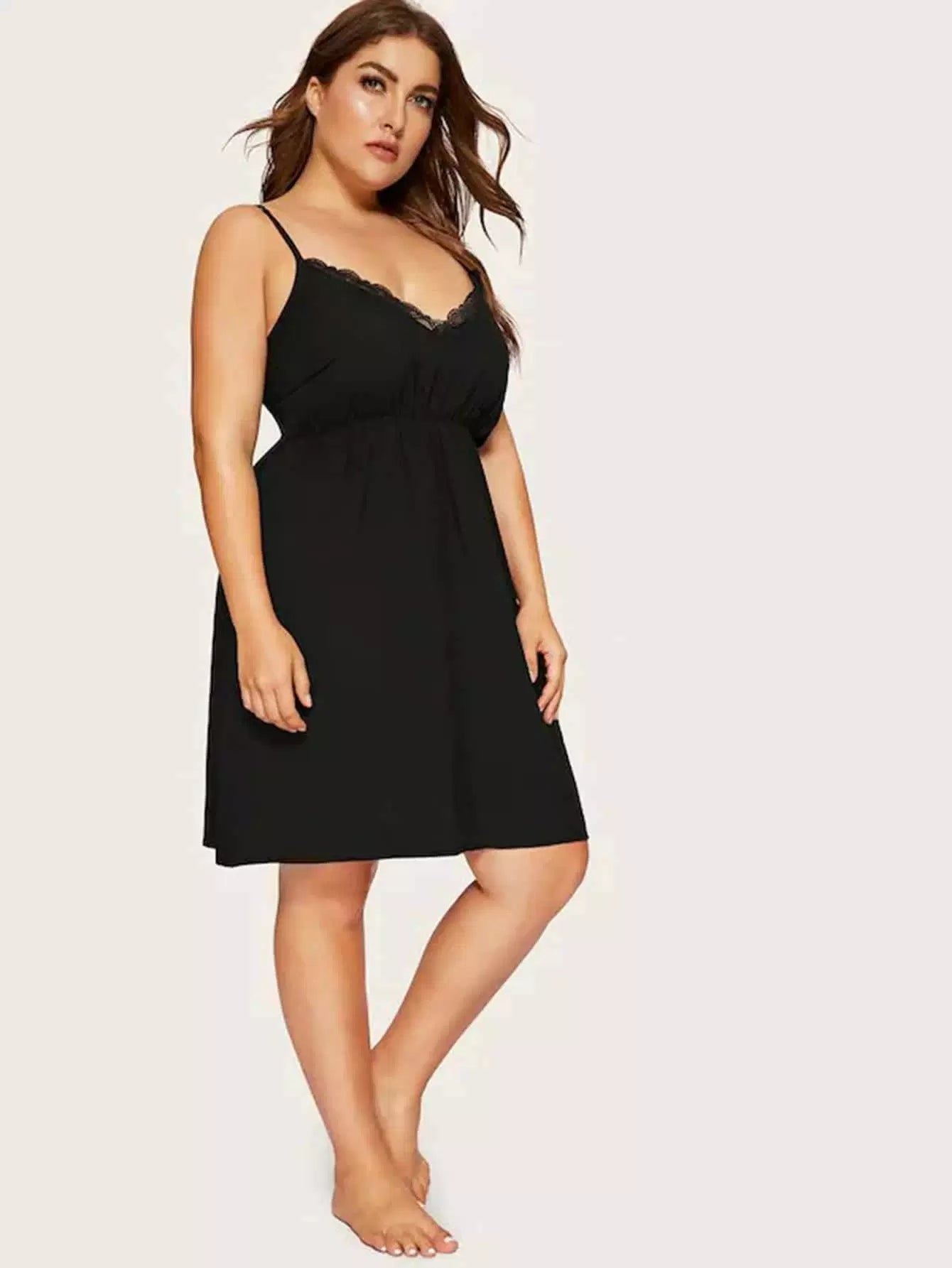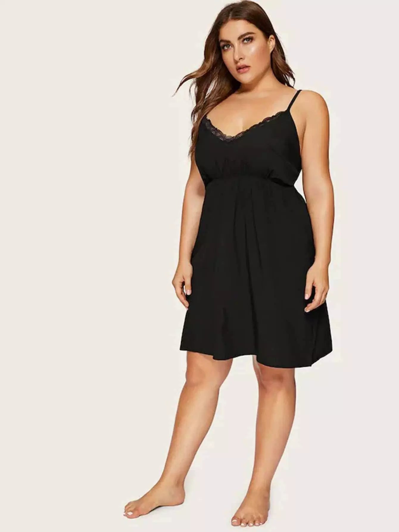 نحيف - مقاس كبير فستان نوم دانتيل متباين