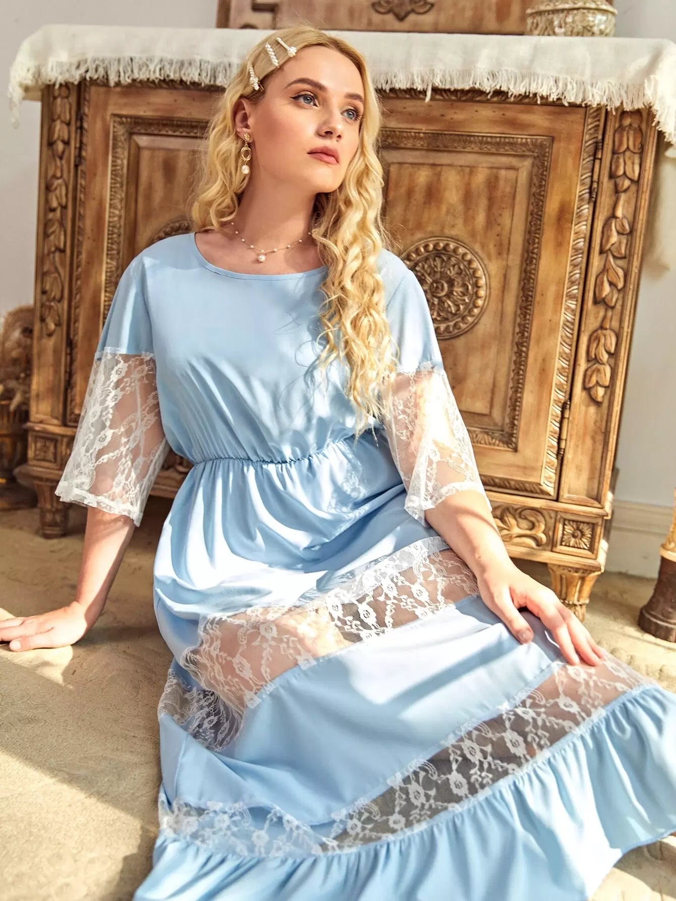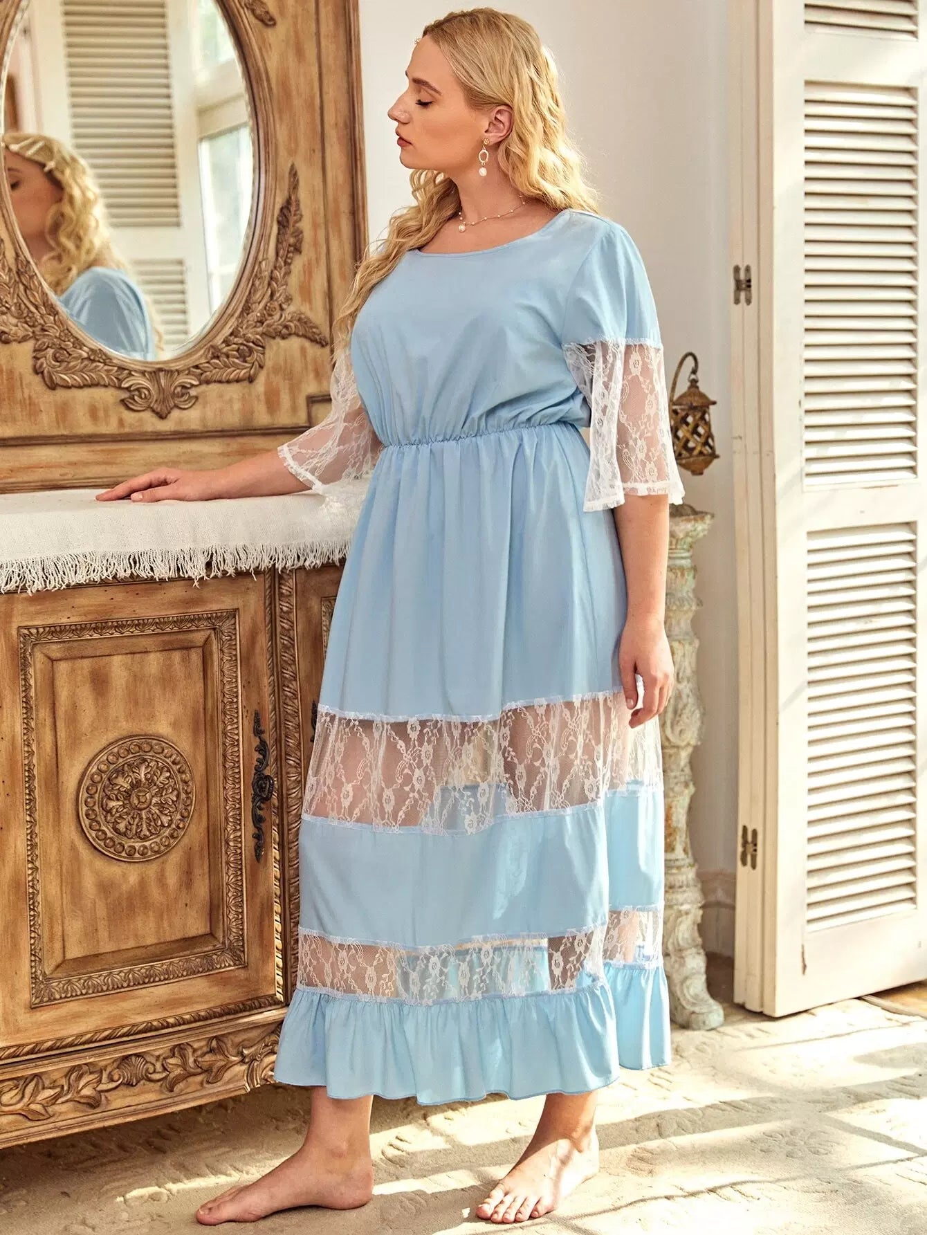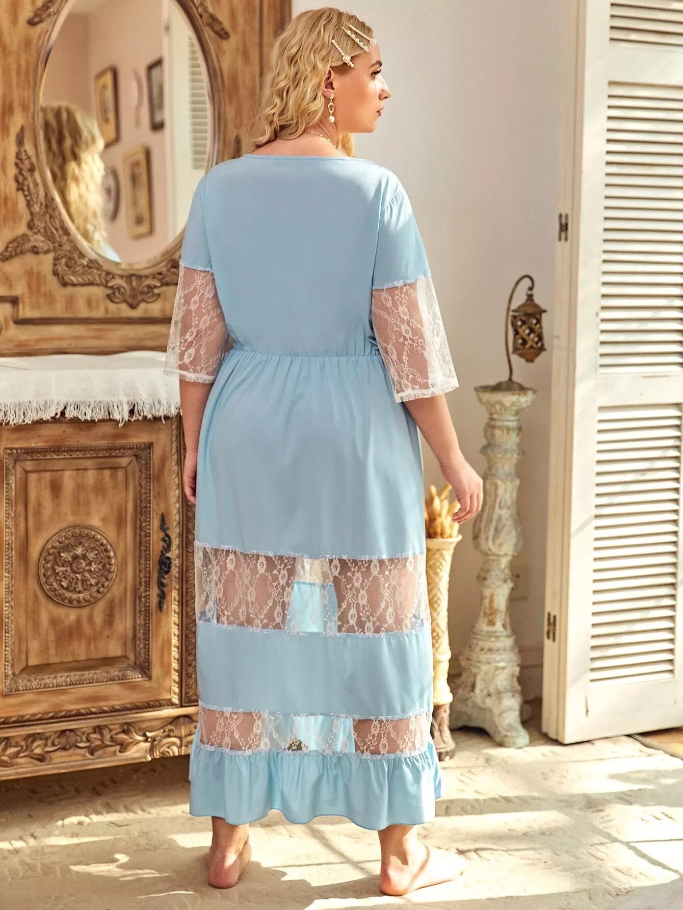 نحيف - مقاس كبير فستان نوم بحاشية مكشكشة من الدانتيل بلون مغاير