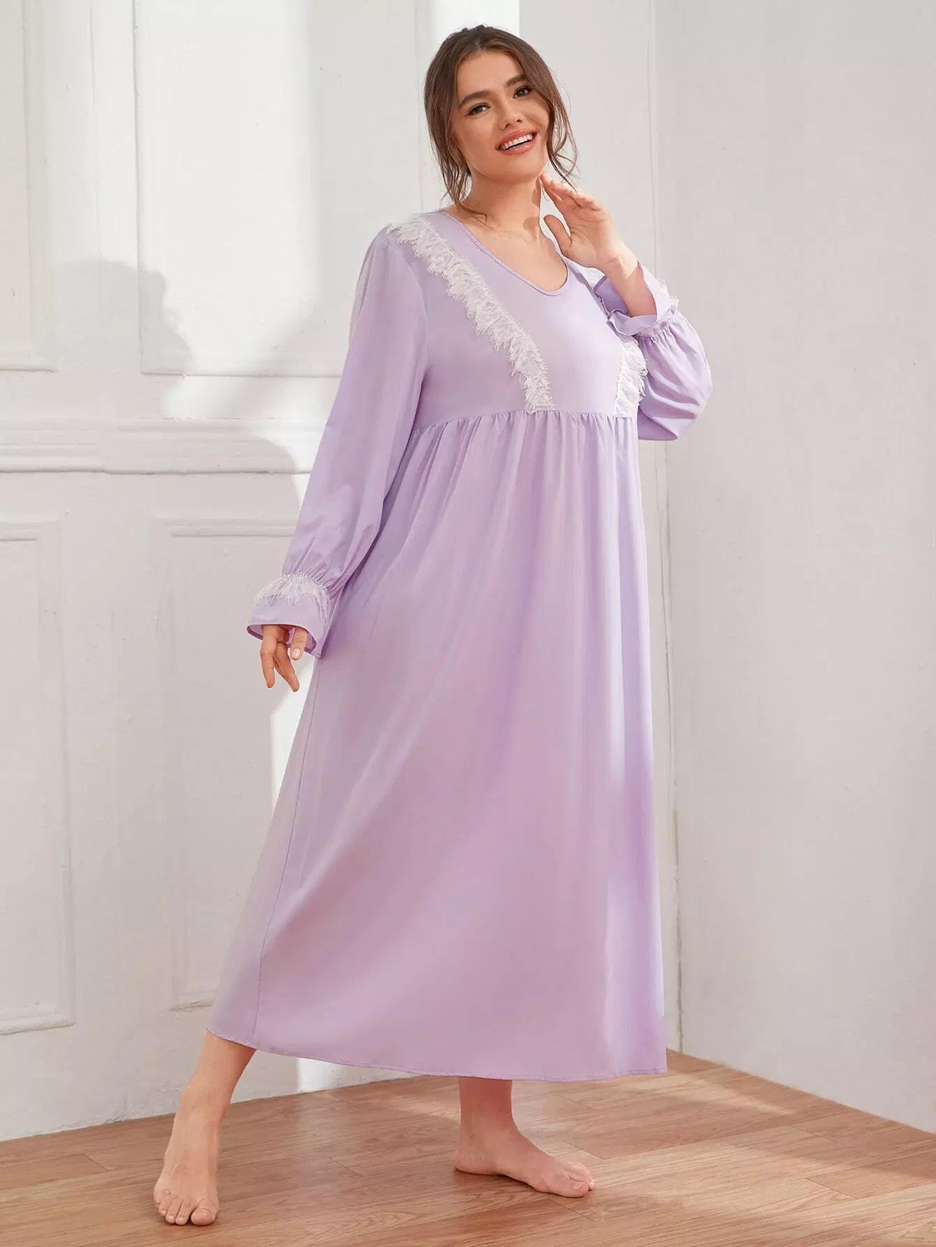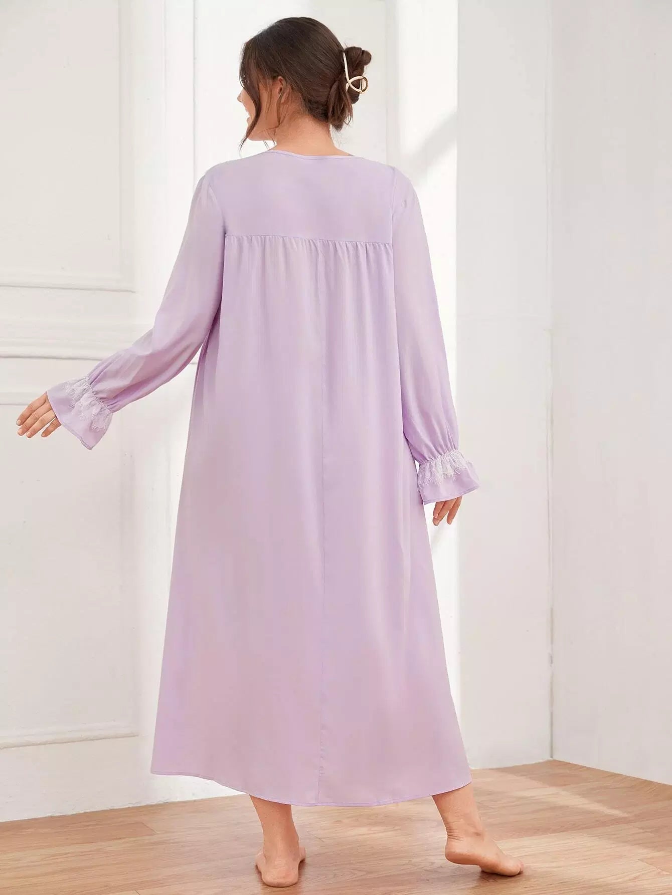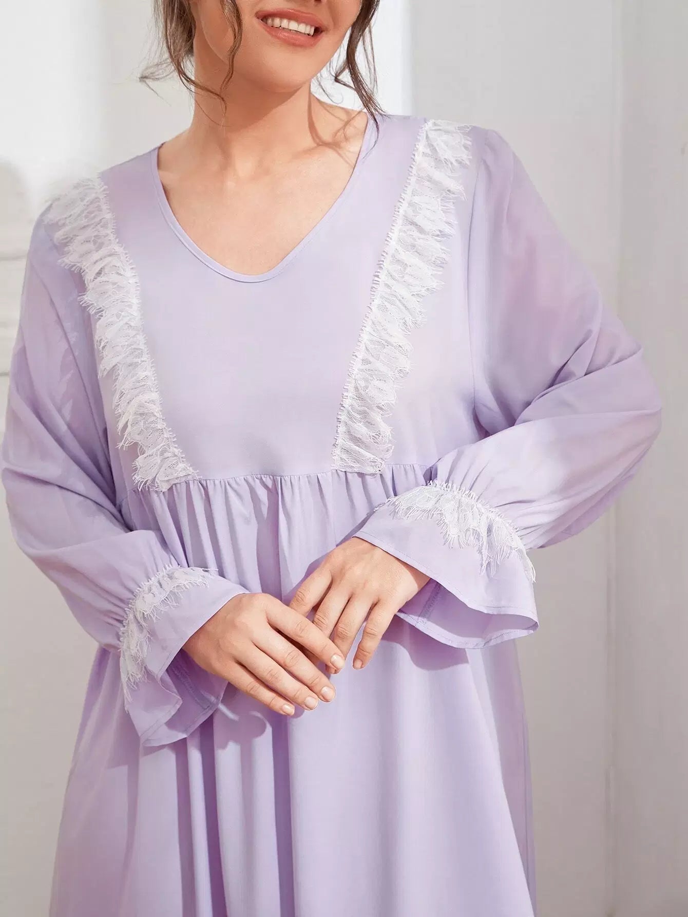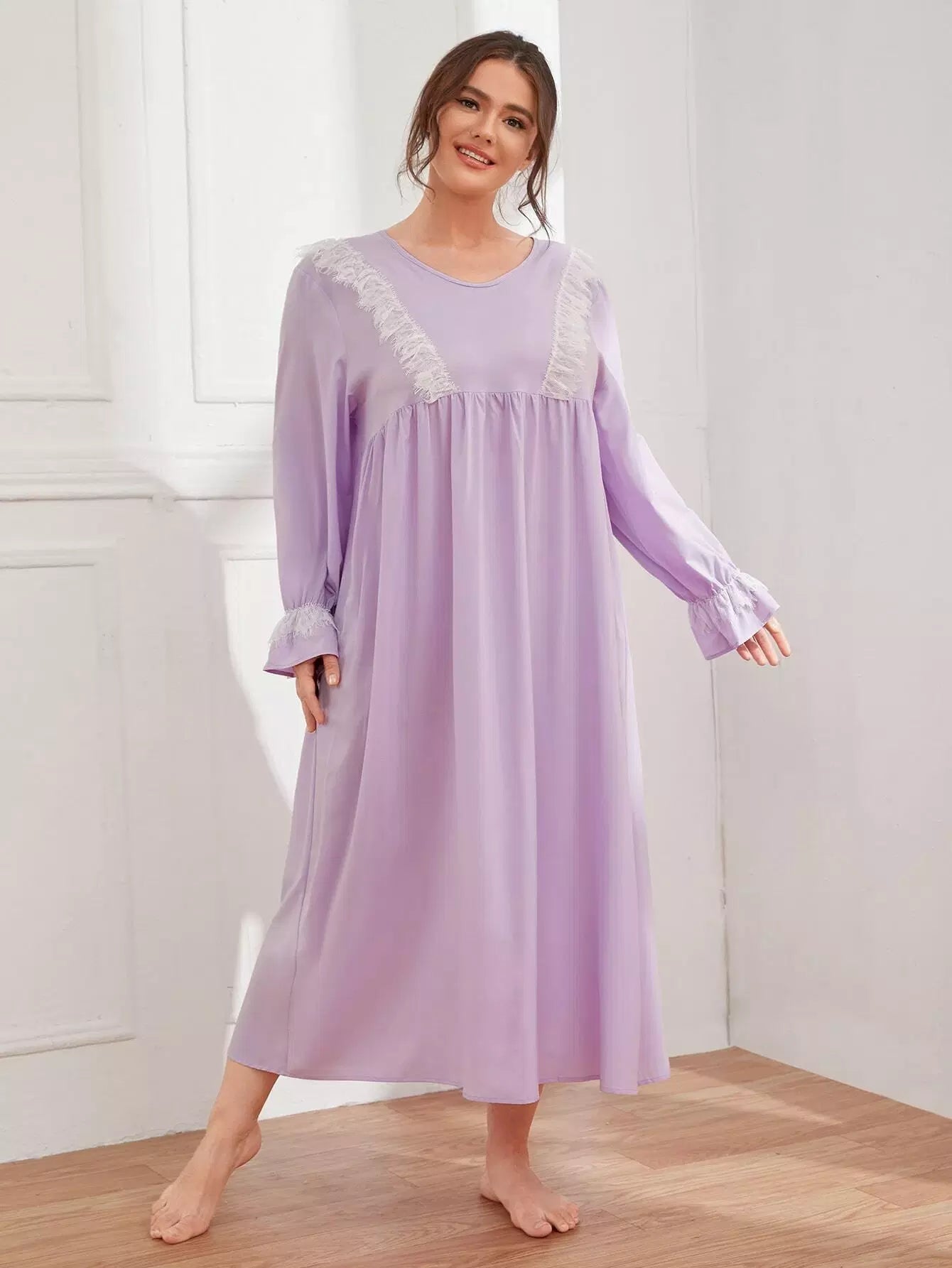 قميص نوم بأكمام من الدانتيل بلون مغاير بلون مغاير